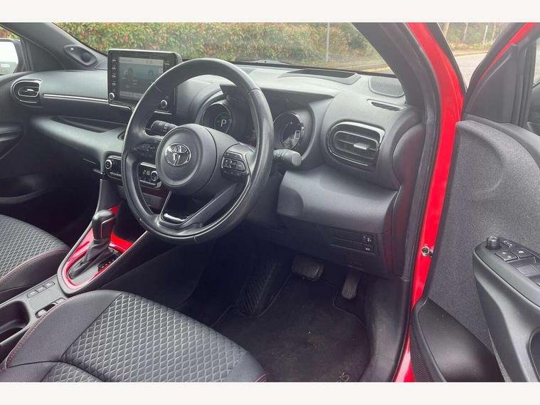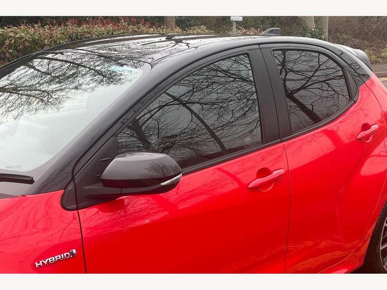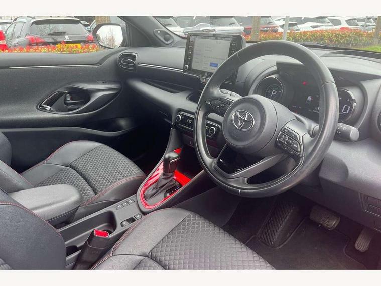 10" full colour head up display, Adaptive cruise control, Adjustable speed limit with speed warning, Blind spot monitoring, Bluetooth connectivity, Colour binocular inspired displays with digital speedometer, E-call, Electric power steering, Hybrid energy display, Multi information display switches on steering wheel, Reversing camera, Smartphone integration with Apple CarPlay and Android auto, Vehicle Stability Control (VSC), 8" Multimedia display touch screen, JBL Premium sound system with 8 speakers, Toyota Touch 2 with DAB, USB connection, Acoustic windscreen glass, Auto dimming rear view mirror, Auto windscreen wipers, Automatic headlights, Automatically retractable door mirrors, Black contrasting colour door mirrors, Electric adjustable heated door mirrors, Follow me home headlights, Front auto power windows with anti jam protection, Full LED rear lights, LED daytime running lights, LED front fog lights, LED Headlights, LED High mounted stop lamp, Painted front grille, Pearlescent bi-tone paint, Rear auto power windows with anti jam protection, Rear privacy glass, Rear spoiler, Shark fin antenna, Turning signal integrated indicators in door mirrors, 3 adjustable rear headrests, 3 spoke leather steering wheel, 60/40 split folding rear seat, Active headrests, Adjustable boot height, Ambient lighting, Coat hooks in rear grab handles, Cup holders (2 front & door), Data Communication Module (DCM) connected services, Dual zone automatic air conditioning, Fabric seat with partial synthetic leather upholstery, Front armrest, Front sport seats, Glovebox, Height adjustable driver's seat, Height adjustable passenger seat, Isofix seat fixing, Leather gearshift, Map pockets on the backs of the front seats, Pollen filter, Shopping bag hooks, Tilt/telescopic steering column, 3 point seatbelts on all rear seats, ABS+EBD+Brake assist, Electronic parking brake, Emergency brake light system (EBS), Front passenger airbag on/off switch, Front seatbelt reminder, Hill start assist control (HAC), Rear child proof door locks, Rear seat belt reminder, Supplemental Restraint System (SRS) 8 airbags: Driver & passenger's airbags, dual side curtain airbags, side impact airbags, front centre airbag, Toyota Safety Sense 2, Precollison + Night time Pedestrian & Cyclist Detection, Lane Trace Assist, Auto High Beam, Intelligent ACC & Road Sign Assist, Tyre pressure warning system, Alarm/immobiliser, Keyless smart entry with push button start, Remote powered central double locking doors, Piano black interior trim, Soft touch instrument panel, Space saver spare wheel,