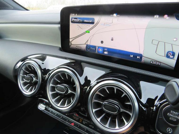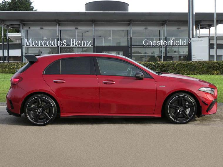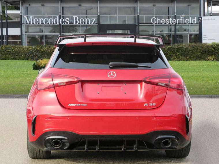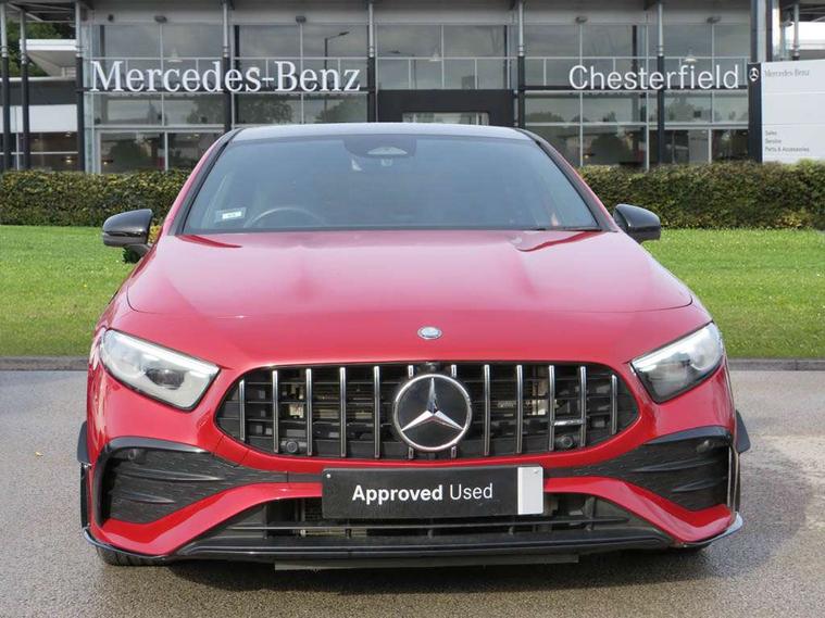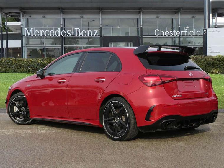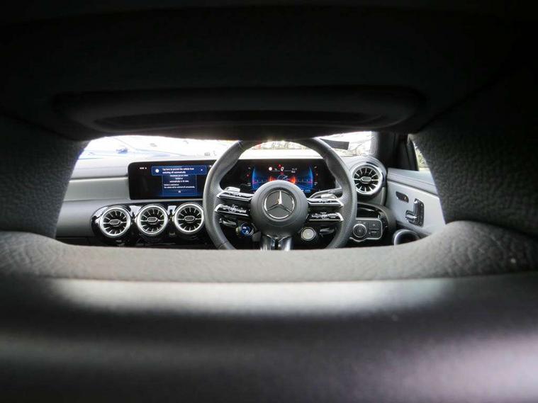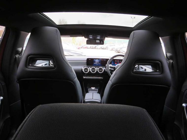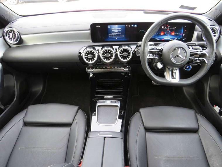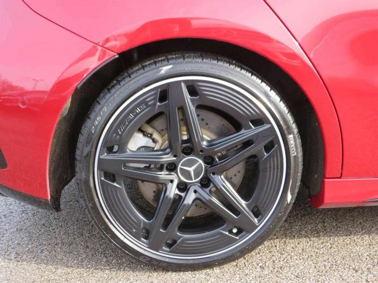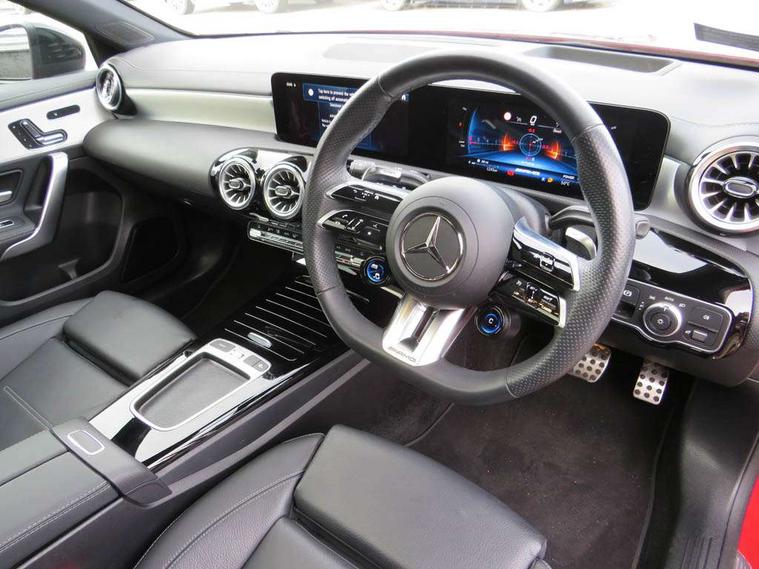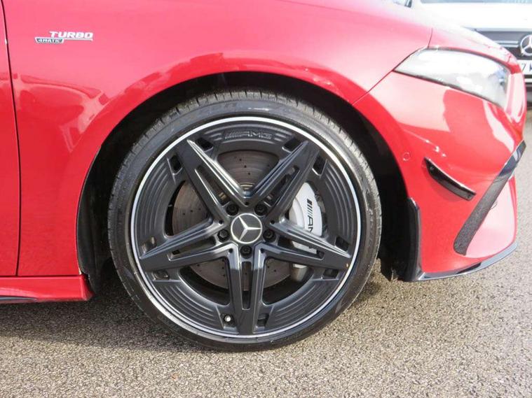 10.25 inch touchscreen central media display, 10.25" Digital instrument cluster display screen, Attention assist, Brake pad wear indicator warning light, Car wash mode, Direct steering, Direction indicators with lane change function, Dual bluetooth interfaces, DYNAMIC SELECT with driving programs (Slippery, Comfort, Sport, Sport+ and Individual), Easy pack tailgate hands-free access, ECO start/stop function, Engine start/stop button, Fluid level warning indicator for fuel, oil, coolant and washer fluid, Fluorescent jacket for driver, Hard-disk navigation, Head up Display, Hey Mercedes Voice activation, Lamp failure indicator, MBUX augmented reality for navigation, MBUX Interior assistant, Mercedes me connect including emergency call system, accident recovery, breakdown and maintenance management, Mercedes me remote services, Outside temperature gauge, Owners manual in English, Pre-installation of private car share, Preinstallation for Mercedes Benz link, Remote boot closing, Service indicator (ASSYST), Smartphone integration with Apple CarPlay and Android auto, Speed sensitive power steering, Tailgate, Traffic sign assist, Trip computer in multifunction display with current consumption indicator, Wireless charging, AMG suspension, Suspension with adaptive damping system, DAB Digital radio, MBUX multimedia system, Mercedes Benz advanced sound system (225 W) with 10 speakers, 1 central speaker, speakers on doors, a tweeter on door, one sub woofer + boost amplifier, 4 Electric Front and Rear windows, Adaptive brake lights, AMG body styling - AMG front apron with front splitter and AMG rear apron and visible exhaust tailpipe trim elements, AMG Front apron with flics as air deflector elements on the outer air intakes, AMG radiator grille with twin blade lamella and AMG Lettering, AMG Rear apron with specific diffuser look with four vertical fins and two round chrome plated tailpipe trim elements with a diameter of 90 mm, AMG spoiler lip on roof, Beltline strips in High gloss Black, Body colour bumpers, Body colour door handles with chrome inserts, Body colour side skirt, Electric adjustable and heated door mirrors with integrated LED side indicators, Front splitter and trim elements on the louvres in the outer air inlets, Front wings wheel arches with TURBO 4MATIC lettering, Headlamp assist automatic headlamp activation, Heat insulating dark tinted rear and rear side windows, Heated glass rear windscreen + timer control, LED daytime running lights, LED High level third brake light, LED tail lamp, Multibeam LED headlamps with adaptive highbeam assist and cornering function, Panoramic sliding sunroof, Privacy glass, Radio aerial, Rain sensing windscreen wipers with two sensitivity settings, Rear fog lights, Rear side wing doors, Rear windscreen wiper, Surround lighting with logo projection, Wider wheel arches for AMG wheels, Window line trim strip in black, 3 seat bench in 2nd row, 40:20:40 split folding rear seats, Air conditioning - Two zone thermotronic luxury automatic climate control with display, AMG floor mats, AMG Performance steering wheel in nappa leather, Automatic child seat recognition sensor, Black air vents with surround in silver chrome, Black roof lining, Brushed stainless steel sports pedals with rubber studs, Electrically adjustable front memory seats including lumbar support and backrest inclination, Front centre armrest with stowage, Front seat backs luggage nets, Heated front seats, Height/reach adjustable steering column, Illuminated AMG front door sills with changeable cover, Interior lighting - 64 colour Ambient lighting, Interior mirror with reading lamps in black and frameless, Rear armrest with 2 cupholders, Seat occupancy sensor for front passenger seat, Silver coloured aluminium gear shift paddles on steering wheel, Single front passenger seat, Sports seats with integrated headrests, Stowage compartment in centre console with retractable cover, Sunvisors with illuminated vanity mirrors, Twin front cupholders, Aerodynamic pack - A Class, AMG night pack - A Class, Light and sight pack - A Class, Mirror package - A Class, Parking pack with 360 degree camera - A Class, Seat comfort pack - A Class, USB pack plus - A Class, 3 rear 3 point seatbelts, ABS with Brake Assist, Active bonnet, Adaptive brake assist with hold function and hill start assist, Black seatbelts, Bonnet with power domes, Childproof locks manually operated for rear doors and electrically operated for rear power windows, Crash responsive emergency lighting, Driver and passenger head and side airbags, Drivers knee airbag, Dual stage driver/passenger airbags, Electronic parking brake, ESP curve dynamic assist, ESP with ASR, Exit warning, Front and rear seatbelt reminder, Front brake calipers with AMG lettering, ISOFIX and top tether child seat fixing points in two outer rear seats, Tyre pressure monitoring system, Warning triangle and first aid kit, Window airbags, Alarm system/interior protection/immobiliser, Guard 360 degree vehicle protection, Keyless entry lock/unlock, Keyless Go, Remote central locking and crash sensor with emergency opening function, Light longitudinal grain aluminium trim, 19" AMG 5 twin spoke light alloy wheels aerodynamically optimised painted in matt black with high sheen rim flange, Summer tyres, Tirefit sealant kit,
