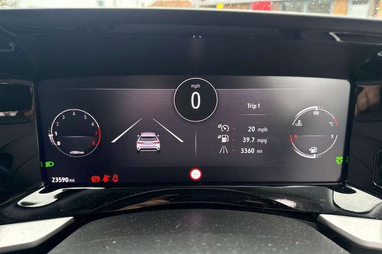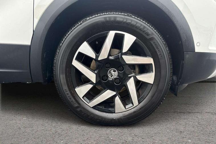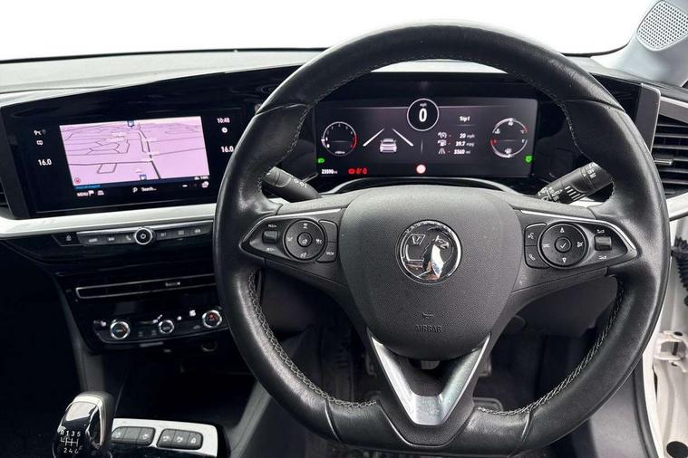 Automatic adaptive cruise control, Engine start/stop button, Front and rear parking distance sensors, Front camera system, Lane keep assist system (LAS) with Lane departure warning system (LDWS), Lights on audible warning, Multi function trip computer, Panoramic rear view camera, Power assisted speed sensitive steering, Side blind spot alert and flank guard, Smartphone integration compatible with Apple CarPlay and Android Auto, Speed sign recognition, Start/stop system, Vauxhall connect, 6 speed manual transmission, Chassis drive line front wheel drive, Electronic fuel system, Front chassis equipment, Rear chassis equipment, Standard chassis suspension system ride handling, Bluetooth A2DP audio streaming, Flexible Roof Mounted Radio Aerial, Front USB connection, Mobile phone portal - bluetooth connect, vehicle microphone, handsfree calls, SMS read out and reply, phone book access, Multimedia Navi pro infotainment with satellite nav, 10" colour touchscreen, 6 speakers, DAB radio, 12" instrument panel, Apple carplay/Android auto, Steering wheel mounted controls, Two rear USB sockets, Adaptive brake lights, Automatic lighting control with tunnel detection, Automatically dimming anti dazzle rear view mirror, Black door mirror housings, Black rear spoiler, Body colour door handles, Body colour front and rear bumpers, Chrome effect skid plates, Chrome effect upper window moulding, Electrically adjustable, heated and folding door mirrors, Electrically operated front and rear windows with safety auto reverse and one touch up/down facility, Hazard warning lights, Heated rear window+rear wash/wipe, High beam assist, LED daytime running lights, LED front fog lamps, LED side repeat indicators, LED tail lights, Manual headlamp level control, Rear foglight, Rear wiper, Reversing light, Solar heat absorbing windscreen and windows, Two speed rain-sensitive windscreen wipers with variable intermittent wipe, Windscreen and side window demist vents, 12V Accessory socket, 3 spoke flat bottomed leather steering wheel with satin chrome bezel, 3 stages driver and co driver heated seats, 4 speed fan with illuminated controls, 6 way manual adjustable driver fore/aft, up/down with reclining seatback, 6 way manual adjustable front passenger fore/aft, up/down with reclining seatback, Air recirculation system, Cabin particulate filter - removes dust, airborne particles and pollen, Centre console with two cup holders at front and one in rear, Chrome effect interior door handles, Cloth / Artificial leather upholstery, Door pockets with two litre capacity, Driver and passenger seat pocket, Driver and passenger sun visors with vanity mirror, Electronic climate control (ECC), Four adjustable facia vents, Four load restraint lashing eyes, Front centre armrest with storage, Front map reading lights, Fully carpeted load area, Heated steering wheel, Height adjustable front/rear head restraints, Illuminated load area, Interior courtesy light, Interior tailgate handle, Luggage compartment cover, Luggage compartment lighting, Reach + rake adjustable steering column, Twin gas assisted tailgate struts, 2x Isofix child seat fitting on outer rear seats, 3x3 point rear seat belts, Anti-lock braking system (ABS), Automatic emergency city braking, Child proof locks on rear doors, Cornering brake control, Deactivation switch for front passenger front and side impact airbags, Drag torque control, Driver and front passenger airbags, front seat side impact airbags, full size curtain airbags, Driver drowsiness alert system, Electronic brake force distribution, Electronic Stability Programme (ESP), Emergency brake assist, Forward collision alert at all speed, Hill start assist, Inertia reel lap and diagonal seatbelts for all seats, Seatbelt unfastened audible warning and warning light, Straight line stability control, Traction control, Tyre pressure monitoring system, Electronically protected audio equipment, Freewheeling door locks, Immobiliser, Key left in ignition audible warning, Keyless entry and start, Locking wheel nuts, Remote control ultrasonic security alarm system, Visible vehicle identification number, Atlantis black trim inserts of front doors, Black facia with silver trim insert, Instrument panel bar in Light Gravel, 17" bi colour diamond cut alloy wheels,