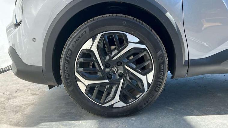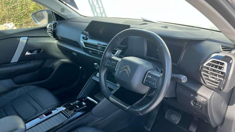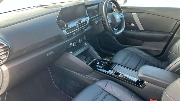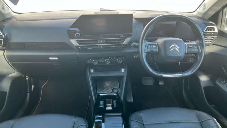 10" high resolution touchscreen user interface, controlling media, connectivity and vehicle settings, 5.5 inch backlit full TFT driver's instrument cluster with LED ambient lighting, Active blind spot detection, Apple car play and Android auto, Citroen connect box emergency and assistance system, Citroen connect nav with real time traffic and speedcam, Driver's head-up display, Electronic Power Steering (EPS), In-crash braking, Speed limiter, Tailgate, Voice commands, Wireless smartphone charging, Advanced comfort suspension - double hydraulic stops on front suspension and single on rear suspension, Auxiliary input socket, Bluetooth telephone and audio streaming, Citroen Hifi system with 1 speaker in dashboard centre, 4 woofers in doors, 2 tweeters in pillars and 1 subwoofer, DAB Digital radio, 3rd brake light, Body colour bumpers, Body colour door handles, Body colour painted external rear view mirrors, Body coloured door mirrors, Boot spoiler, Dark tinted rear windows and side windows with chrome detail, Electrically heated, folding and adjustable external rear view mirrors with courtesy lighting, Electrochrome interior rear-view mirror with automatic day-night switching, Front and rear electric windows, Gloss black rear skirt, Intelligent beam headlights, LED daytime running lights in V signature, LED front fog lamps with static cornering function, LED front headlamps, Rain sensing automatic front windscreen wipers, Rear side wing doors, Rear wiper, Roof aerial, Welcome and goodbye lighting, 12V power outlet, 1x USB Type-C socket & data connection, 1x USB Type-A socket at 1st row + 1x USB Type-A socket , 1x USB Type-C socket in 2nd row, 3 rear headrests, 3 seat bench in 2nd row, Boot light, Dashboard tray in front cabin, Deluxe leather steering wheel with two command blocks, Driver and passenger sunvisors with illuminated vanity mirrors, Dual zone automatic air conditioning, Electrically heated front seats, Fitted carpet mats, Front and rear LED interior lighting, Front head restraints, Height adjustable front passenger seat, Height and reach adjustable steering wheel, Map pockets in rear of front seats, Raised centre console with armrest and two cup holders, Rear central folding armrest with cupholders and ski hatch, Single front passenger seat, Split folding rear seats, Two position boot floor, High level acoustic insulation pack - C4/C4 X/e-C4 X, Hype black interior ambience with Siena leather and leather effect textile seats pack - C4 Shine plus/e-series, Safety plus pack with highway driver assist - C4/C4 X/e-C4 X, 3x3 point rear seatbelts, ABS, Driver and front passenger airbags, Electric parking brake, ESP, Front seatbelt pretensioners, Hill start assist, Manual child lock in second row, Manual deactivation of front passenger airbag, Post collision safety brake, Row 1 and 2 curtain airbags, Row 1 side thorax airbags, Seatbelt unfastened on the move warning, Tyre underinflation detection, Anti-theft alarm (volumetric protection), Immobiliser, Keyless entry and start, Remote locking with deadlocks, 18" Bi-tone diamond-cut aeroblade alloy wheels with anti-theft locking wheel nuts, Puncture repair kit with compressor,