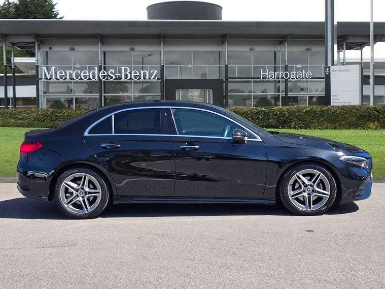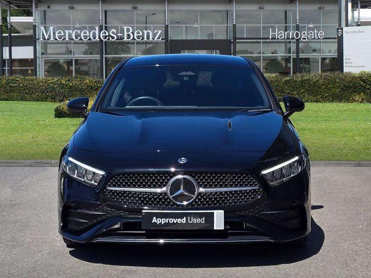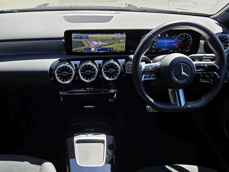 10.25 inch touchscreen central media display, 10.25" Digital instrument cluster display screen, Attention assist, Blind spot assist, Brake pad wear indicator warning light, Car wash mode, Cruise control + speed limiter, Direct steering, Direction indicators with lane change function, Dual bluetooth interfaces, DYNAMIC SELECT with a choice of driving modes (ECO, Comfort, Sport and Individual), ECO start/stop function, Engine start/stop button, Fingerprint scanner, Fluid level warning indicator for fuel, oil, coolant and washer fluid, Fluorescent jacket for driver, Hard-disk navigation, Hey Mercedes Voice activation, Lamp failure indicator, Lane keeping system, Mercedes me connect including emergency call system, accident recovery, breakdown and maintenance management, Mercedes me remote services, Outside temperature gauge, Owners manual in English, Pre-installation of private car share, Preinstallation for Mercedes Benz link, Remote boot closing, Service indicator (ASSYST), Smartphone integration with Apple CarPlay and Android auto, Speed limit assist, Speed sensitive power steering, Trip computer in multifunction display with current consumption indicator, Wireless charging, Lowered comfort suspension, DAB Digital radio, MBUX multimedia system, Mercedes Benz sound system (100 W) with 6 speakers, 4 Electric Front and Rear windows, Adaptive brake lights, AMG body styling - AMG front apron with front splitter and AMG rear apron and visible exhaust tailpipe trim elements, Body colour bumpers, Body colour door handles with chrome inserts, Body colour side skirt, Body coloured door mirrors, Chrome beltline strips, Diamond radiator grille with pins in fine star pattern, Electric adjustable and heated door mirrors with integrated LED side indicators, Exhaust system with 2 visible tailpipe trim elements and rear apron, Headlamp assist automatic headlamp activation, Heat insulating dark tinted rear and rear side windows, Heated glass rear windscreen + timer control, LED High Performance headlamps including integral LED daytime running lamps and adaptive highbeam assist, LED tail lamp, Privacy glass, Radio aerial, Rain sensing windscreen wipers with two sensitivity settings, Rear boot, Rear fog lights, Rear side wing doors, Third brake light featuring LED technology, Window line trim strip in chrome, 3 seat bench in 2nd row, 3 Spoke flat bottom leather multi function steering wheel with perforated leather in grip area, 4 way lumbar support, 40:20:40 split folding rear seats, Air conditioning - One zone thermatic automatic climate control with automatically controlled air distribution, AMG floor mats, Automatic child seat recognition sensor, Black air vents with surround in silver chrome, Black roof lining, Brushed stainless steel sports pedals with rubber studs, Front centre armrest with stowage, Front door sills with Mercedes Benz lettering, Front seat backs luggage nets, Galvanished gear shift paddles on steering wheel, Heated front seats, Height/reach adjustable steering column, Interior lighting - 64 colour Ambient lighting, Interior mirror with reading lamps in black and frameless, Rear armrest with 2 cupholders, Seat occupancy sensor for front passenger seat, Single front passenger seat, Sports seats with adjustable head restraints, Stowage compartment in centre console with retractable cover, Sunvisors with illuminated vanity mirrors, Twin front cupholders, Keyless go comfort pack - A Class, Light and sight package - A Class, Mirror package - A Class, Parking pack with 180 degree view - A Class, Seat comfort pack - A Class, USB pack plus - A Class, 3 rear 3 point seatbelts, ABS with Brake Assist, Active bonnet, Active brake assist includes forward collision warning system with autonomous braking, Adaptive brake assist with hold function and hill start assist, Black seatbelts, Bonnet with power domes, Childproof locks manually operated for rear doors and electrically operated for rear power windows, Crash responsive emergency lighting, Driver and passenger head and side airbags, Drivers knee airbag, Dual stage driver/passenger airbags, Electronic parking brake, ESP curve dynamic assist, ESP with ASR, Front and rear seatbelt reminder, ISOFIX and top tether child seat fixing points in two outer rear seats, Tyre pressure monitoring system, Warning triangle and first aid kit, Window airbags, Alarm system/interior protection/immobiliser, Guard 360 degree vehicle protection, Remote central locking and crash sensor with emergency opening function, Light longitudinal grain aluminium trim, 18" AMG 5 twin spoke light alloy wheels, aerodynamically optimised, painted in black with high sheen finish, Summer tyres, Tirefit sealant kit,