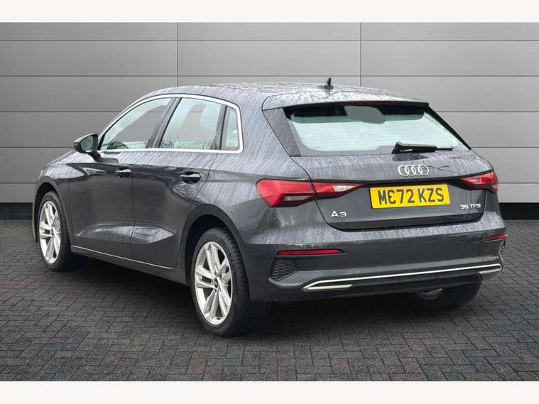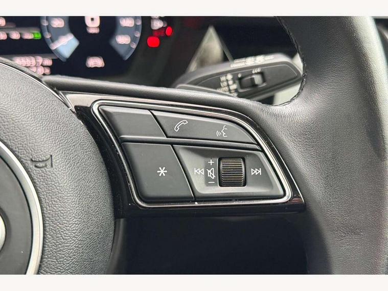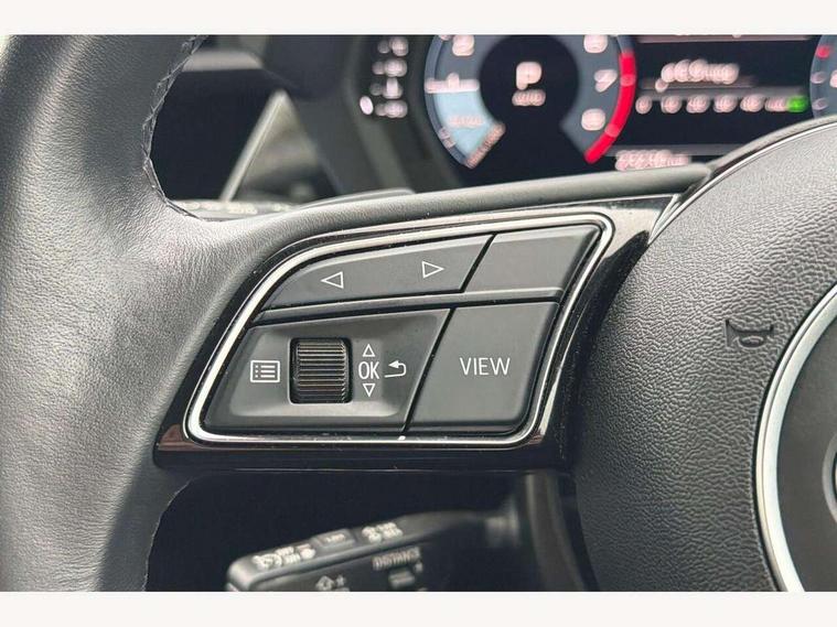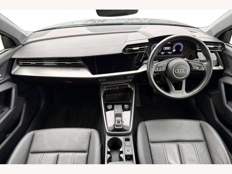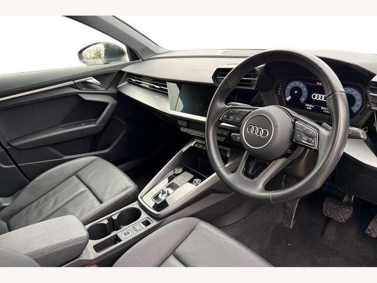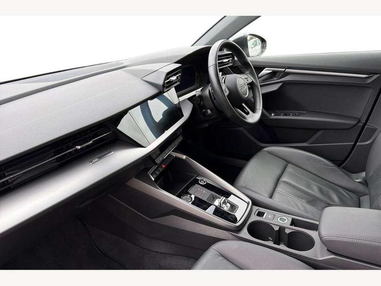 Audi drive select (Auto, Comfort, Dynamic, Efficiency and Individual), Audi smartphone interface, Audi Virtual Cockpit - 10.25" digital and colour instrument cluster, Automatic start/stop system with recuperation, Bluetooth interface, Collision avoidance assistant, e-Call (emergency call), Electromechanical power speed sensitive steering, Lane departure warning system, MMI Navigation Plus with high resolution 10.1" colour touch screen display, Service indicator, Trip computer, Voice control system with natural language interaction, Standard suspension, 2xUSB-C connection with data and charging functions, 6 passive loudspeakers, DAB Digital radio, 3rd brake light, Acoustic glass windscreen, Aluminium window trim, Auto dimming frameless rear view mirror, Body colour exterior mirrors, Body colour roof spoiler, Electrically adjustable/heated/folding/auto dimming door mirrors with integrated LED indications + kerb view function for passenger side, Front electric windows, LED daytime running lights, LED headlights and halogen rear lights, Light and rain sensors, Rear electric windows, Rear side wing doors, Rear window, rear door windows and rear side windows in clear glass, Rear wiper, 12V socket and storage compartment in front centre console, 3 seat bench in 2nd row, 40/20/40 split folding rear seat bench with cupholder, Dual zone electronic climate control, Front and rear centre armrest, Front and rear headrests, Front door sill trims with aluminium inlay, Front/rear floor mats, Height and reach adjustable steering wheel, Interior lighting - Front and rear roof module including reading lights, glove compartment light and right hand side, Luggage compartment floor covering, Manual boot compartment lid, Manually adjustable front seats, Seat side bolsters, Single front passenger seat, Steel grey cloth headlining, Twin leather upholstery, Aluminium interior elements pack - A3 Sportback, Sport styling pack - A3 Sportback, 3x3 point rear seat belts, Audi pre sense front, Driver and front passenger airbag with passenger airbag deactivation, Electronic Stabilisation Control (ESC) including ABS, ASR and EDL, First aid kit with warning triangle and 2 safety vests, Front side airbags with head airbags and interaction airbag, Pre-sense front with pedestrian and cyclist detection, Seatbelt monitoring, Tyre pressure loss indicator, Anti theft alarm, Anti-theft wheel bolts, Electronically operated child lock, Immobiliser, Remote control central locking, Inlays with silk effect paint in platinum grey,