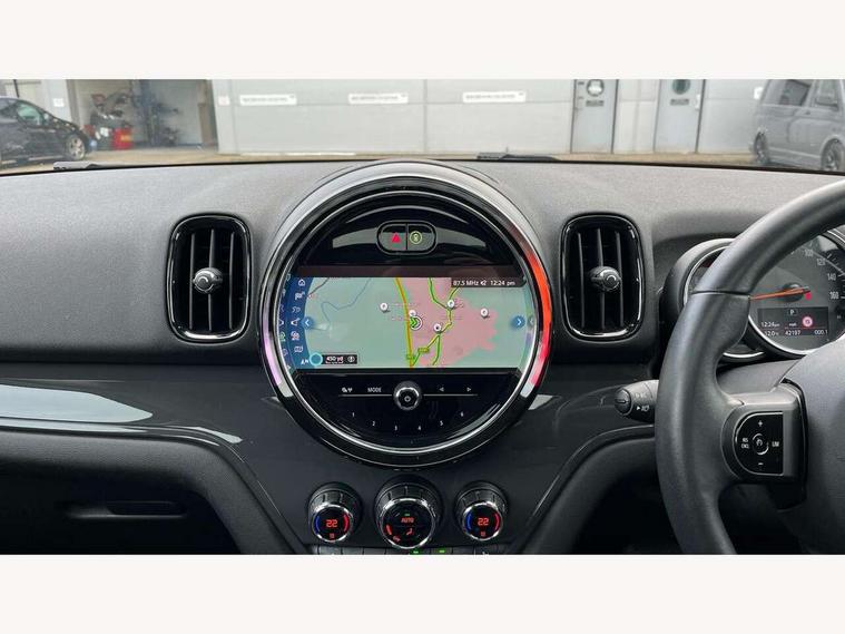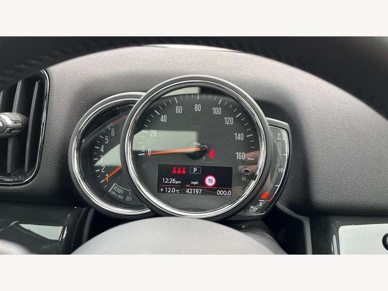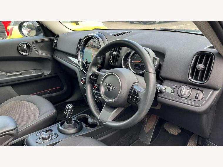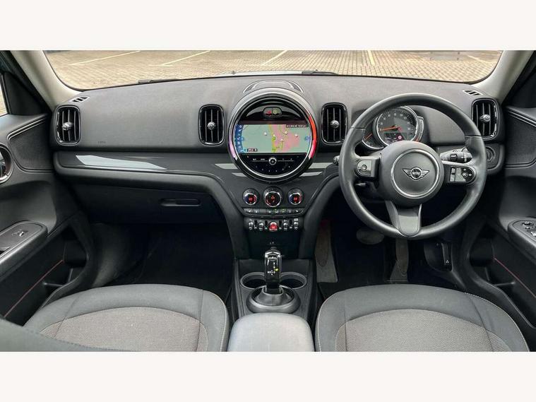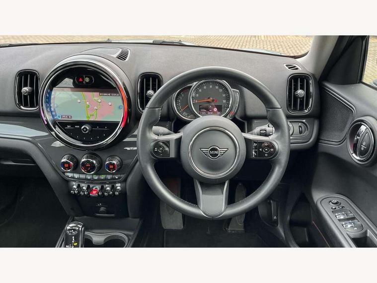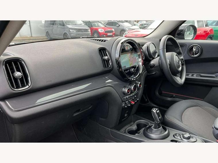 Active Guard incl speed limiting and lane departure functions with auto steering, and front collision warning with brake intervention, Automatic start/stop function with brake energy recuperation, Compatible mobile phone bluetooth with audio streaming, Cruise control with brake assist, Electro-mechanical speed dependant steering assistance, Instrument cluster, Mini E-call, On board computer, Rear parking distance control, 51 Litre fuel tank, Double Vanos system, Fully variable valve control, High precision injection, Performance Control, Steptronic transmission with double clutch, FM tuner and DAB digital radio, 3rd brake light, Body colour fuel filler cap, Day time driving lights, Door sill strips, Dynamic brake lights, Electric windows, Heated rear window, Heated windscreen washer jets, LED fog lights, LED Headlights, Left exhaust tailpipe with chrome finisher, Model logo, Model logo on Tailgate, Radiator grille, Rain sensor with auto headlights, Rear fog lights, Rear side wing doors, Rear window wiper, Side scuttle panel with integrated indicator, Split rear doors, Sun/heat protection glass, White indicator lenses, 12V socket in centre console, 3 seat bench in 2nd row, 3 spoke sport leather steering wheel + limiter function and audio controls, 360L luggage compartment capacity, 4 lashing eyes in luggage compartment, 40:20:40 split folding rear seats, Chrome interior highlights, Colour line - Carbon black, Cupholders, English handbook, Floor mats, Front headrests, Glove compartment, Headliner with grab handles and clothes hooks, Height and length steering column adjustment, Interior lighting with 12 basic colours selectable via toggle switch in roof, Isofix rear child seat preparation, Leather gearshift lever and handbrake gaiters, LED reading lights, vanity mirror lights, front foot well light and spotlight on front seats, Manual air conditioning, Mechanical seat adjustment, driver seat height adjust, forward/back and front seats backrest, Multifunction steering wheel, Passenger seat height adjuster, Rear headrests, Single front passenger seat, Storage compartments in doors, Sunvisors with vanity mirrors, Excitement pack - Countryman, Navigation pack - Countryman, 2 tone horn, 3 point seatbelts on all seats, 6 Airbags - front, side, head and seat belt tensioners, Anti-lock braking system (ABS), DSC - Dynamic Stability Control, Electronic handbrake, Front and rear disc brakes, Hill start assist, Manual rear child locks, Tyre pressure monitoring system, Alarm system with tilt sensor, monitoring doors, bonnet interior and tailgate, Auto drive away locking, Deadlocking function, Electronic vehicle immobiliser, Locking wheel bolts, Start/stop toggle with keyless go, Tool kit,