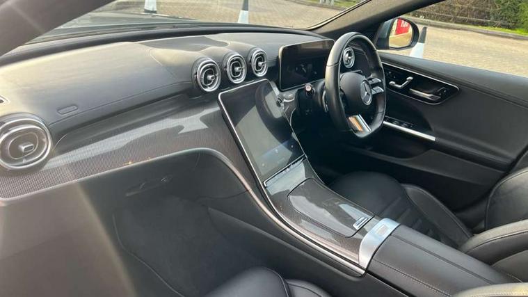 11.9" high resolution multimedia colour display, 12.3" digital instrument cluster display, Active blind spot assist, Active brake assist plus, Active lane keeping assist, Attention assist, Cruise control with speedtronic variable speed limiter, DYNAMIC SELECT with a choice of driving modes (ECO, Comfort, Sport, Sport+ and Individual), E-call, Easy pack automatic powered tailgate, Extended MBUX functions, Finger print sensor, Fluorescent jacket for driver, MBUX augmented reality for navigation, MBUX navigation premium, MBUX voice control activated by keywords ''Hey Mercedes'', Mercedes connect me, Mercedes me remote services, Outside temperature gauge, Pre-installation for digital key transfer, Remote boot release, Service indicator (ASSYST), Smartphone integration, Sports direct steer speed sensitive steering, Status display for rear seat belts in instrument cluster, Wireless charging system for mobile devices, 66l fuel tank with increased capacity, 9G TRONIC 9 speed automatic transmission, Diesel particulate filter, Sports suspension with selective damping system and lowered by 15 mm, DAB Digital radio, MBUX multimedia system, Steering wheel mounted audio controls, Adaptive brake lights, Adaptive high beam assist plus, AMG body styling front apron, rear apron and side skirts, AMG front bumper with sporty air intakes and chrome elements, AMG rear bumper with high gloss chrome elements, AMG side skirts in vehicle colour, B-pillar trim in glossy black, Body coloured bumpers, Body coloured door mirrors, Chrome beltline trim, Chrome roof rails, Daytime running lights, Digital light LED headlamps, Electric windows with one touch opening/closing and obstruction sensors, Electrically adjustable and heated door mirrors, Green tinted glass, LED Indicators, LED tail lights, LED third brake light, Powerdomes on bonnet, Privacy glass, Radiator diamond grille with integrated Mercedes Benz star and louvre silver with chrome pins, Radio aerial integrated into rear window, Rain sensor with automatic windscreen wiper activation, Rear side wing doors, Rear wiper, Two visible exhaust pipes integrated into rear bumper, 3 spoke flattened bottom AMG multifunction steering wheel in black nappa leather with chrome inserts and perforated leather in grip area, AMG sports seats, Auto Mercedes-Benz child seat recognition sensor, Black air vents with silver chrome elements, Black floor mats with AMG lettering, Black roof liner, Door trim elements high gloss black with silver chrome surroundings and switches, Double cupholder in centre console, Electrically height/reach adjustable steering column, Folding rear seat backrest, Front and rear head restraints, Front centre armrest with storage compartment, Gearshift paddles on steering wheel, Heated front seats, Illuminated door sills with Mercedes Benz lettering, Illuminated glove compartment stowage, Interior lighting - 64 colour Ambient lighting, Leather upholstery, Load compartment cover, Overhead control unit in high gloss black, Rear top tether child seat ISOFIX attachment, Single front passenger seat, Sports pedals with stainless steel surfaces and rubber studs, Sunvisors with illuminated vanity mirrors, THERMATIC 2 zone automatic climate control, Interior lighting package - C Class, Memory package - C Class, Mirror pack - C Class, Parking package with 360 degree camera - C Class, Seat comfort pack - C Class, Stowage space pack - C Class, USB package - C Class, 3 rear 3 point seatbelts, Active bonnet pedestrian safety measure which detects an impact and raises bonnet, Adaptive brake system with HOLD function and brake drying in the wet, Anti-lock braking system (ABS), Black seat belts, Brake calipers with Mercedes-Benz lettering + perforated front brake discs, Child proof door locks, Drivers knee airbag, Drivers pelvis airbag, Dual stage driver/passenger airbags, Electric parking brake, Electronic Stability Programme (ESP), Front centre airbag between driver and front passenger seats, Front side airbags, Larger brake discs on front axle, Rear passenger airbag, Rear seatbelt warning indicator, Sports braking system with perforated front disc brakes, Tyre pressure monitoring system, Warning triangle and first aid kit, Window airbags, Central locking with interior switch, automatic locking and crash sensor with emergency opening function, Chrome surround electric key, Keyless Go comfort access, Urban guard vehicle protection - Thatcham Category 1 consisting of breakin, anti-theft alarm system (ATA), interior monitoring and tow away protection, Artico man-made leather dashboard with contrast stitching, Centre console trim in metal weave, 19" AMG multi spoke design alloy wheels painted in black with high sheen finish, Summer tyres, TIREFIT with tyre inflation compressor,