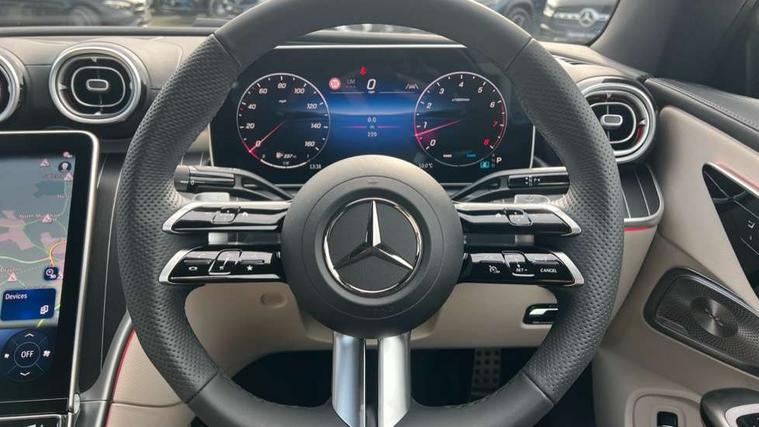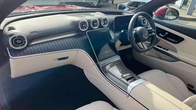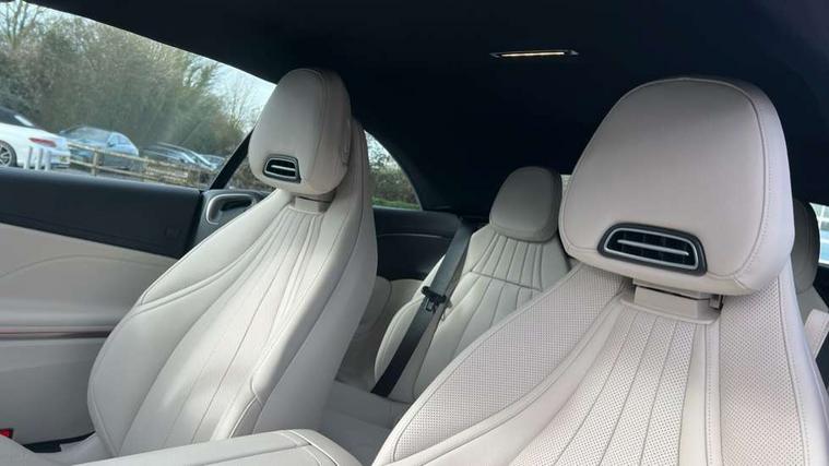 5G Communications module, Active lane keeping assist, Bluetooth connection, Car wash mode, DYNAMIC SELECT with a choice of driving modes (ECO, Comfort, Sport, Sport+ and Individual), eCall emergency call system, Fingerprint scanner, Fluorescent jacket for driver, Fully digital 12.3" driver display screen, Hard-disk navigation, Head up Display, Hey Mercedes Voice activation, MBUX navigation premium, PAS, Passive person presence reminder, Portrait format 11.9" touchscreen central display with driver orientation, Smartphone integration with Apple CarPlay and Android auto, Traffic sign assist, Wireless charging system for mobile devices in the front, 66 litre fuel tank, 9G TRONIC plus automatic transmission, Agility control sports suspension lowered by 15 mm, Integrated starter generator Gen 2, Sporty engine sound system, Burmester 3D surround sound system with sound personalisation, Digital radio, MBUX extended functions, MBUX multimedia system, AMG bodystyling, AMG Line exterior, Auto headlights, Electric windows, LED 3rd brake light, LED Day time running light, LED digital light with adaptive highbeam assist plus, Rain sensor windscreen wipers, Rear boot, Variable front intermittent wipers, 2 individual rear seats, 2 rear head restraints, Ambient lighting premium, Ambient lighting with projection of brand logo, AMG floor mats, AMG line interior, Belt feeder, Climatised massage multicontour front seats, Folding rear seat backrests, Front headrests, Heated front seats, Illuminated door sill panels with Mercedes Benz lettering, Instrument panel and beltlines in ARTICO manmade leather in nappa look, Leather upholstery, Multifunction sports steering wheel in nappa leather, Power height and reach adjustable steering column, Single front passenger seat, THERMATIC automatic climate control, Comfort package - CLE, Energizing plus package with air balance pack - CLE, Interior light pack - CLE, Memory seat pack - CLE, Mirror pack - CLE, Parking package with 360 degree camera - CLE, Stowage space package - CLE, USB package plus - CLE, Anti-lock braking system (ABS), Braking system with larger brake discs on the front axle, Centre airbag, Dual front airbags, Electric parking brake, Electronic Stability Programme (ESP), Front and rear seatbelt reminder, Hill start assist, Pedestrian protection, Tyre pressure monitoring system, Anti theft alarm system, Guard 360 degree vehicle protection plus, Increased anti-theft protection, Interior monitoring system, Keyless Go, Keyless Go starting function, Black open-pore aluminium lines wood trim with mixed fabric look metal finish centre console, 20" AMG multi spoke light alloy wheels painted in black with high sheen finish - RVM, Tirefit,
