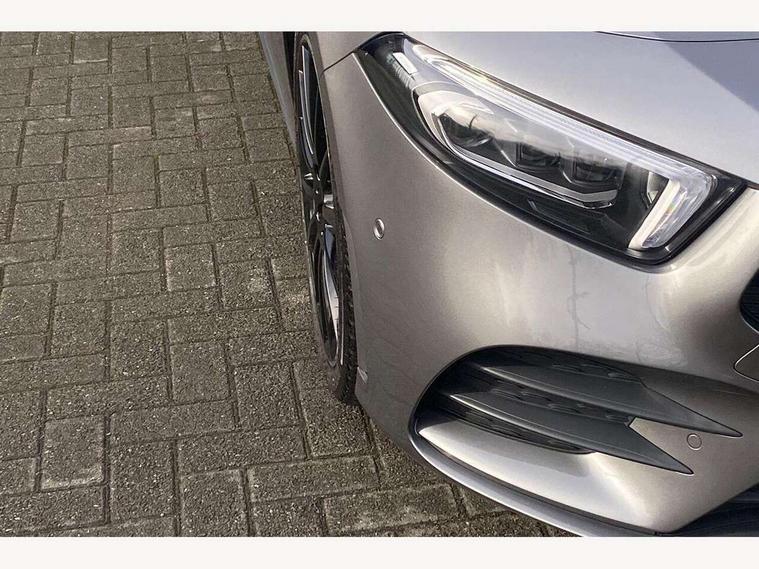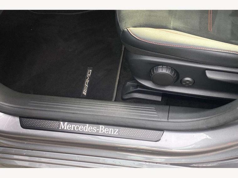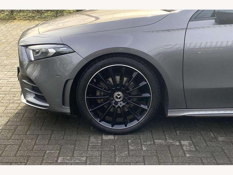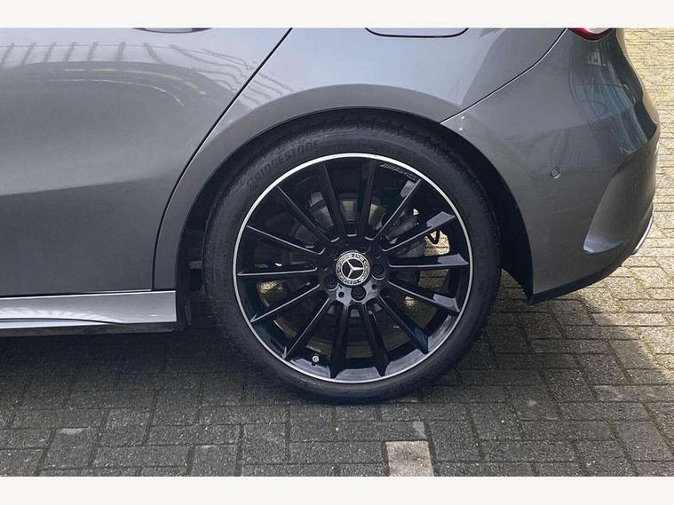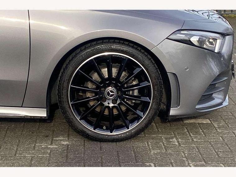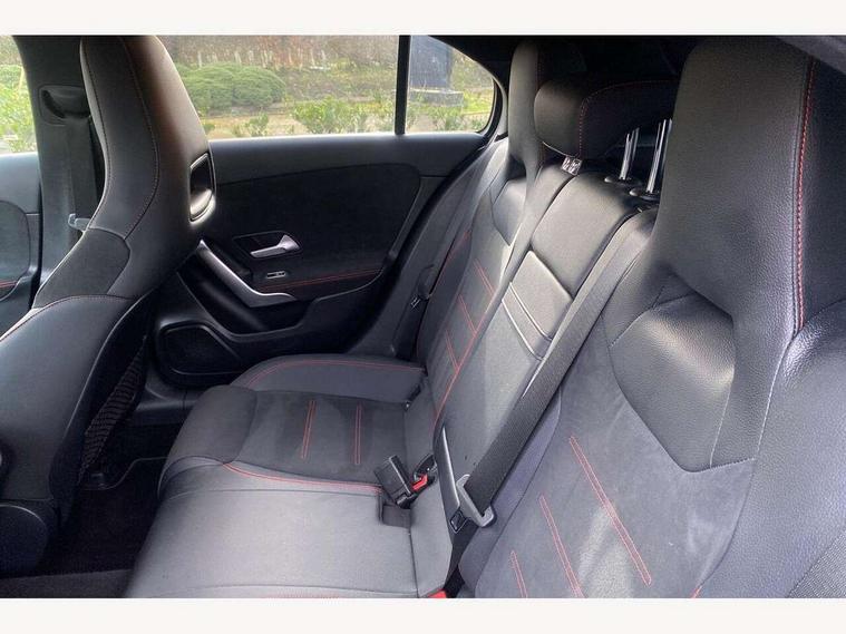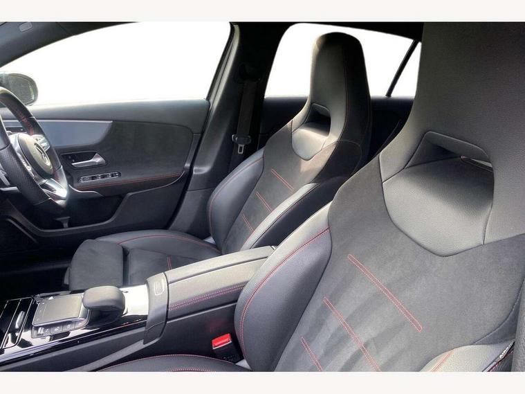 10.25" Digital instrument cluster display screen, 10.25" media display, 180 degree rear view camera with parking guidelines, Active parking assist with visual and audible warning of detected obstacles, Attention assist, Brake pad wear indicator warning light, Car wash mode, Cruise control + speed limiter, Direct steering, Dual bluetooth interfaces, DYNAMIC SELECT with a choice of driving modes (ECO, Comfort, Sport and Individual), ECO start/stop function, Fluid level warning indicator for fuel, oil, coolant and washer fluid, Hard-disk navigation, Hey Mercedes Voice activation, Lamp failure indicator, Lane keeping system, Mercedes me connect including emergency call system, accident recovery, breakdown and maintenance management, Mercedes me remote services, Outside temperature gauge, Owners manual in English, Pre-installation for private car sharing, Preinstallation for Mercedes Benz link, Service indicator (ASSYST), Smartphone integration with Apple CarPlay and Android auto, Speed limit assist, Speed sensitive power steering, Traffic sign assist, Trip computer, Ultrasonic sensors positioned in the front and rear bumpers, Lowered comfort suspension, Rear axle torsion beam, 2 USB ports (type C) in rear stowage compartment and one in front of center console, 6 speakers, DAB Digital radio, MBUX multimedia system with DAB digital radio and touchpad including satellite navigation, Mercedes-Benz sound system - 100W, 4 Electric Front and Rear windows, Adaptive brake lights, AMG bodystyling - Front apron with splitter in chrome, rear apron with chrome trim and chrome visible trim elements in tailpipe, Automatic headlights, Black weather strip, Body colour bumpers, Body colour door handles with chrome inserts, Body colour side skirt, Electric adjustable and heated door mirrors with integrated LED side indicators, Exclusive diamond radiator grille, Exhaust system - Twin visible tailpipes in polished stainless steel, Headlamp assist automatic headlamp activation, Heated glass rear windscreen + timer control, LED daytime running lights, LED High level third brake light, LED tail lamp, Multibeam LED headlights with adaptive highbeam assist plus, Panoramic sliding sunroof, Privacy glass, Radio aerial, Rain sensing windscreen wipers with two sensitivity settings, Rear fog lights, Rear side wing doors, Rear wiper, 3 seat bench in 2nd row, 3 Spoke flat bottom leather multi function steering wheel with perforated leather in grip area, 40:20:40 split folding rear seats, Artico man-made leather/Microfibre Dinamica upholstery with red contrast stitching, Auto Mercedes-Benz child seat recognition sensor, Black air vents with surround in silver chrome, Black roof lining, Brushed stainless steel sports pedals with rubber studs, Controller on centre console with chrome surround, Floor mats with AMG lettering, Front centre armrest with storage compartment, Front seat backs luggage nets, Galvanished gear shift paddles on steering wheel, Heated front seats, Height/reach adjustable steering column, Illuminated Mercedes Benz lettering front door sills with changeable cover, Interior lighting - 64 colour Ambient lighting, Interior mirror with reading lamps in black and frameless, Rear armrest with 2 cupholders, Rear head restraints, Seat occupancy sensor for front passenger seat, Single front passenger seat, Sports seats with integrated headrests, Stowage compartment in centre console with retractable cover, Sunvisors with illuminated vanity mirrors, Touchpad on center console, Twin front cupholders, Two zone thermotronic luxury automatic climate control, Light and sight pack - A Class, Mirror package - A Class, Night pack - A Class Saloon/Hatchback, Seat comfort pack - A Class, 3 rear 3 point seatbelts, ABS with Brake Assist, Active bonnet, Active brake assist includes forward collision warning system with autonomous braking, Adaptive brake assist with hold function and hill start assist, Black seatbelts, Childproof locks manually operated for rear doors and electrically operated for rear power windows, Crash responsive emergency lighting, Driver and passenger head and side airbags, Drivers knee airbag, Dual stage driver/passenger airbags, Electronic parking brake, ESP curve dynamic assist, ESP with ASR, Front and rear seatbelt reminder, Front brake callipers with Mercedes Benz lettering, ISOFIX and top tether child seat fixing points in two outer rear seats, Tyre pressure monitoring system, Warning triangle and first aid kit, Window airbags, Alarm system/interior protection/immobiliser, Keyless entry lock/unlock, Keyless Go, Remote central locking and crash sensor with emergency opening function, Urban guard vehicle protection system with immobiliser and interior protection, Matrix look light longitudinal grain aluminium trim element, 19" multi spoke light alloy wheels painted in black with a high sheen rim flange, Summer tyres, Tirefit sealant kit,