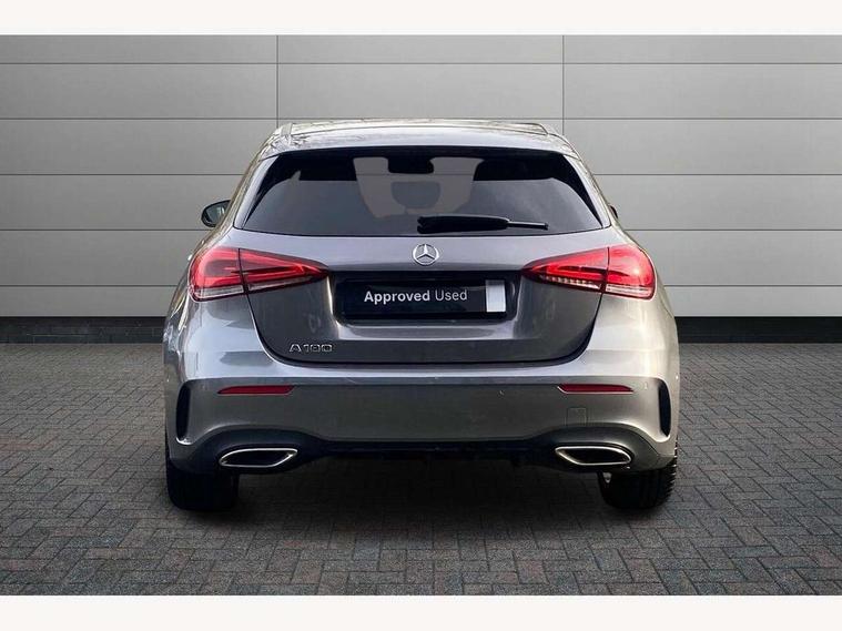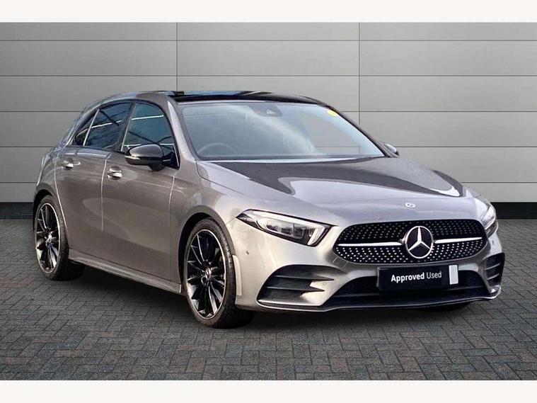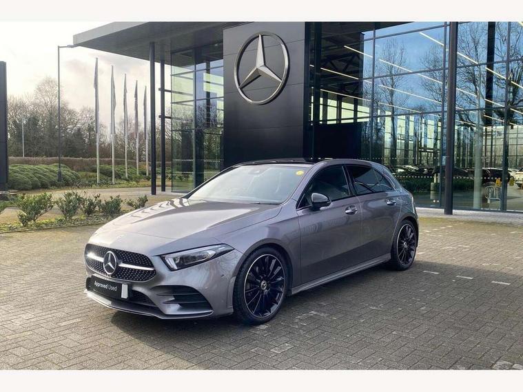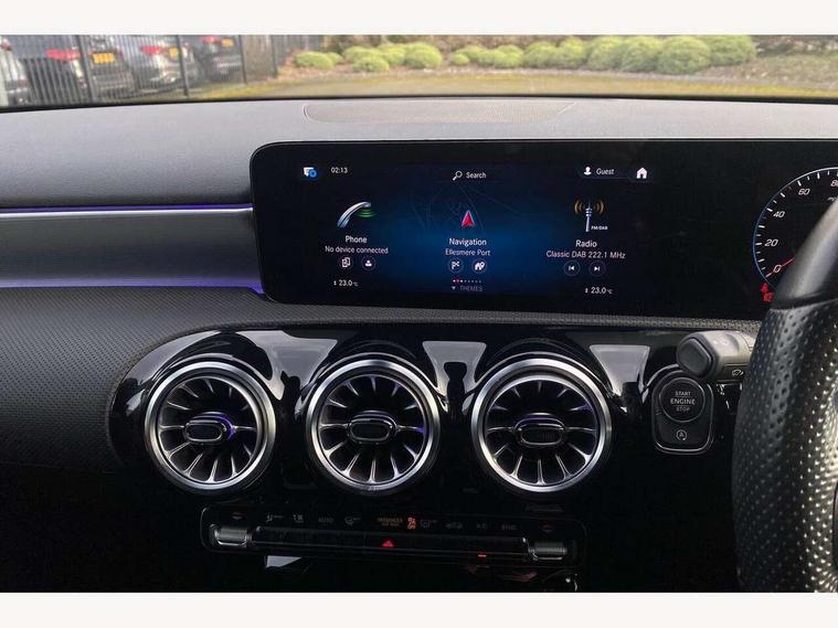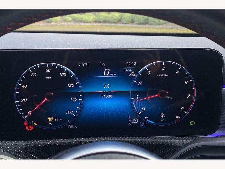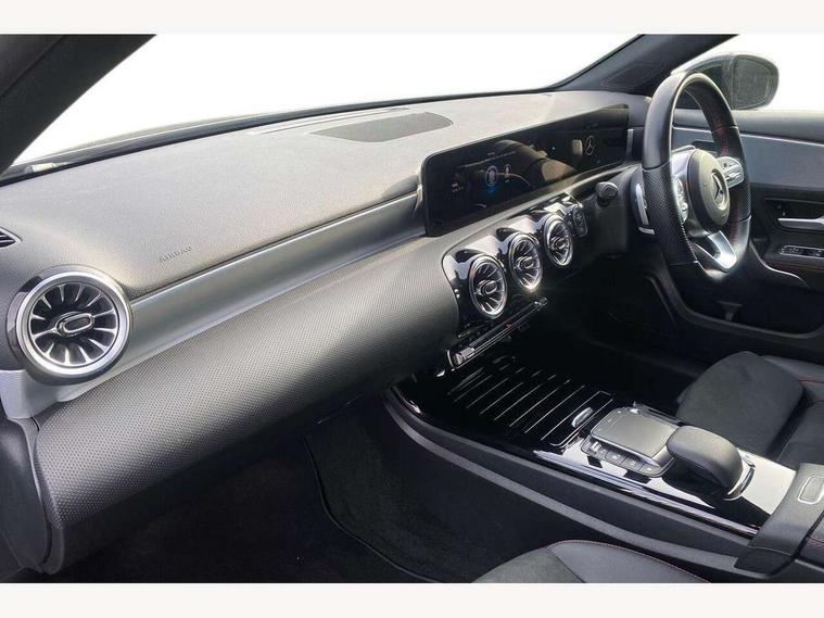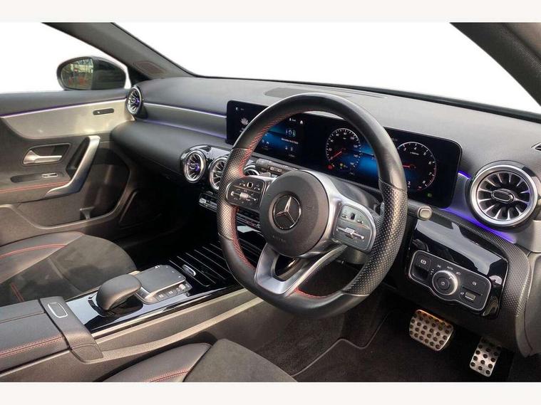 10.25" Digital instrument cluster display screen, 10.25" media display, 180 degree rear view camera with parking guidelines, Active parking assist with visual and audible warning of detected obstacles, Attention assist, Brake pad wear indicator warning light, Car wash mode, Cruise control + speed limiter, Direct steering, Dual bluetooth interfaces, DYNAMIC SELECT with a choice of driving modes (ECO, Comfort, Sport and Individual), ECO start/stop function, Fluid level warning indicator for fuel, oil, coolant and washer fluid, Hard-disk navigation, Hey Mercedes Voice activation, Lamp failure indicator, Lane keeping system, Mercedes me connect including emergency call system, accident recovery, breakdown and maintenance management, Mercedes me remote services, Outside temperature gauge, Owners manual in English, Pre-installation for private car sharing, Preinstallation for Mercedes Benz link, Service indicator (ASSYST), Smartphone integration with Apple CarPlay and Android auto, Speed limit assist, Speed sensitive power steering, Traffic sign assist, Trip computer, Ultrasonic sensors positioned in the front and rear bumpers, Lowered comfort suspension, Rear axle torsion beam, 2 USB ports (type C) in rear stowage compartment and one in front of center console, 6 speakers, DAB Digital radio, MBUX multimedia system with DAB digital radio and touchpad including satellite navigation, Mercedes-Benz sound system - 100W, 4 Electric Front and Rear windows, Adaptive brake lights, AMG bodystyling - Front apron with splitter in chrome, rear apron with chrome trim and chrome visible trim elements in tailpipe, Automatic headlights, Black weather strip, Body colour bumpers, Body colour door handles with chrome inserts, Body colour side skirt, Electric adjustable and heated door mirrors with integrated LED side indicators, Exclusive diamond radiator grille, Exhaust system - Twin visible tailpipes in polished stainless steel, Headlamp assist automatic headlamp activation, Heated glass rear windscreen + timer control, LED daytime running lights, LED High level third brake light, LED tail lamp, Multibeam LED headlights with adaptive highbeam assist plus, Panoramic sliding sunroof, Privacy glass, Radio aerial, Rain sensing windscreen wipers with two sensitivity settings, Rear fog lights, Rear side wing doors, Rear wiper, 3 seat bench in 2nd row, 3 Spoke flat bottom leather multi function steering wheel with perforated leather in grip area, 40:20:40 split folding rear seats, Artico man-made leather/Microfibre Dinamica upholstery with red contrast stitching, Auto Mercedes-Benz child seat recognition sensor, Black air vents with surround in silver chrome, Black roof lining, Brushed stainless steel sports pedals with rubber studs, Controller on centre console with chrome surround, Floor mats with AMG lettering, Front centre armrest with storage compartment, Front seat backs luggage nets, Galvanished gear shift paddles on steering wheel, Heated front seats, Height/reach adjustable steering column, Illuminated Mercedes Benz lettering front door sills with changeable cover, Interior lighting - 64 colour Ambient lighting, Interior mirror with reading lamps in black and frameless, Rear armrest with 2 cupholders, Rear head restraints, Seat occupancy sensor for front passenger seat, Single front passenger seat, Sports seats with integrated headrests, Stowage compartment in centre console with retractable cover, Sunvisors with illuminated vanity mirrors, Touchpad on center console, Twin front cupholders, Two zone thermotronic luxury automatic climate control, Light and sight pack - A Class, Mirror package - A Class, Night pack - A Class Saloon/Hatchback, Seat comfort pack - A Class, 3 rear 3 point seatbelts, ABS with Brake Assist, Active bonnet, Active brake assist includes forward collision warning system with autonomous braking, Adaptive brake assist with hold function and hill start assist, Black seatbelts, Childproof locks manually operated for rear doors and electrically operated for rear power windows, Crash responsive emergency lighting, Driver and passenger head and side airbags, Drivers knee airbag, Dual stage driver/passenger airbags, Electronic parking brake, ESP curve dynamic assist, ESP with ASR, Front and rear seatbelt reminder, Front brake callipers with Mercedes Benz lettering, ISOFIX and top tether child seat fixing points in two outer rear seats, Tyre pressure monitoring system, Warning triangle and first aid kit, Window airbags, Alarm system/interior protection/immobiliser, Keyless entry lock/unlock, Keyless Go, Remote central locking and crash sensor with emergency opening function, Urban guard vehicle protection system with immobiliser and interior protection, Matrix look light longitudinal grain aluminium trim element, 19" multi spoke light alloy wheels painted in black with a high sheen rim flange, Summer tyres, Tirefit sealant kit,