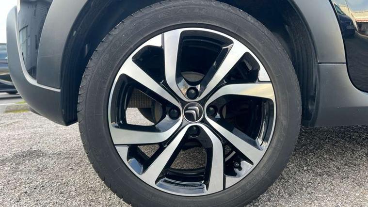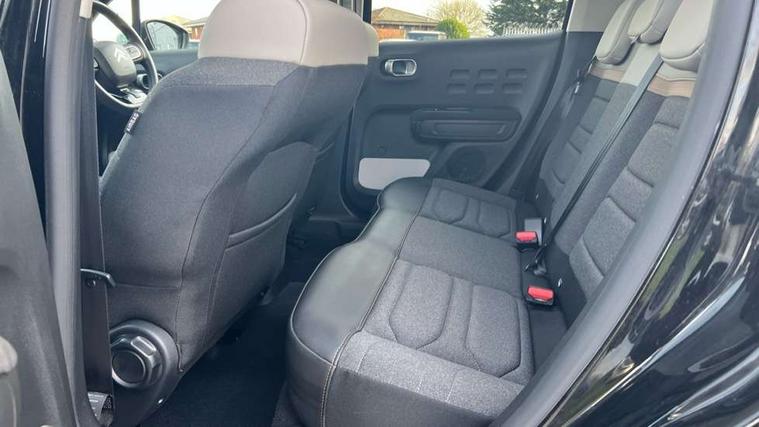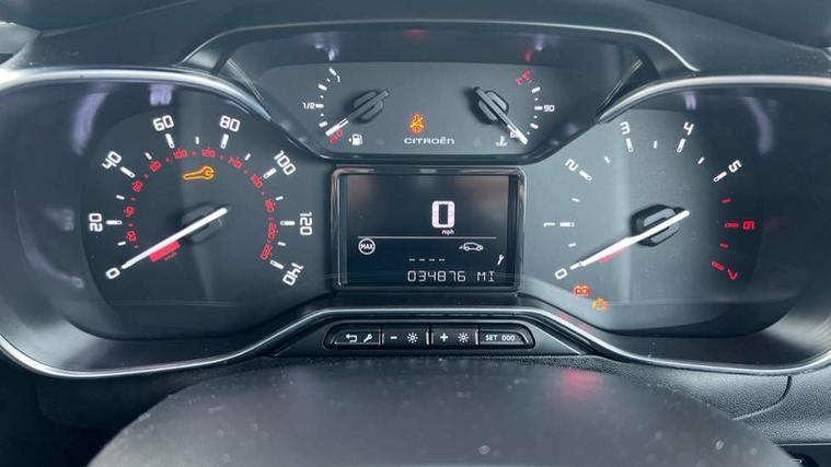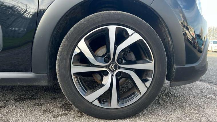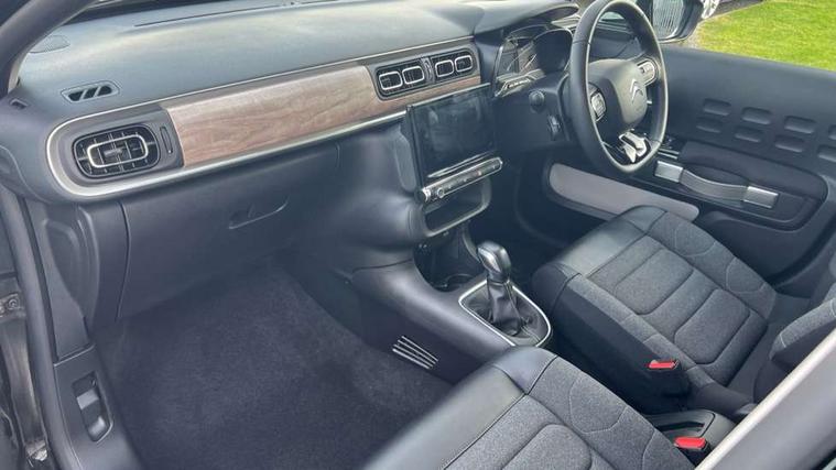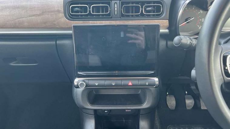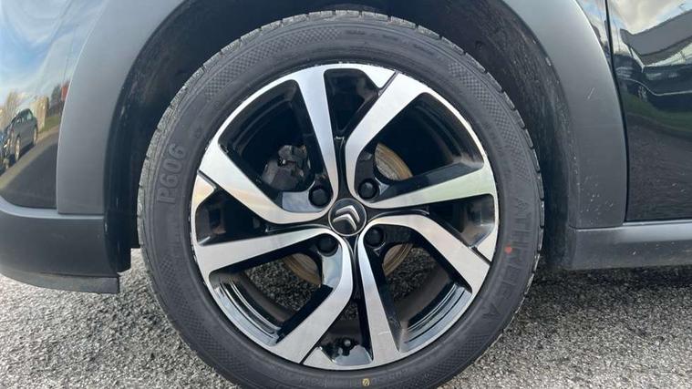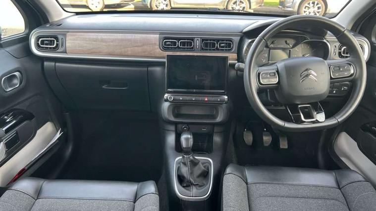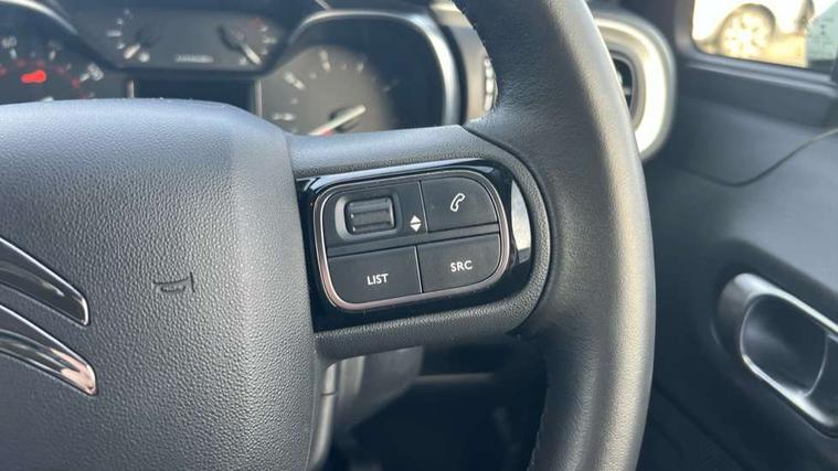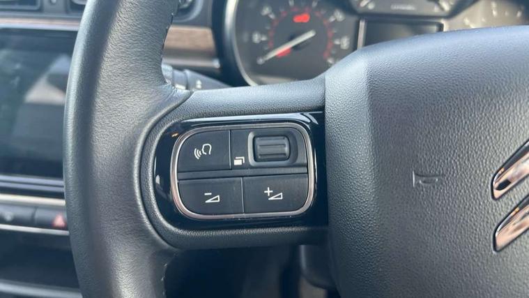 Citroen connect box emergency and assistance system, Citroen connected nav with DAB, 6 speakers, 7" captive touch screen, mirror screen includes apple carplay/android auto and bluetooth, Coffee Break Alert, Cruise control + speed limiter, eCall emergency call system, Exterior temperature display, Multi function trip computer, Reversing camera, Satin chrome surround instrument cluster with white LCD and analogue gauges, Variable assistance power steering, USB connection, 3D rear light signature, Airbump on side door panel, Auto dimming electrochrome rear view mirror, Auto headlights, Automatic activation of hazard warning lights, Body colour bumpers, Body colour door handles, Chrome decoration on front face, under chevrons and around daytime running lights, Citroen illuminated signature in LED headlights and LED daytime running lights, Dark tinted tailgate and rear side windows, Electric folding and heated door mirrors, Fog lights integrated into front bumper, Front sequential electric windows with one-touch open/close and anti-pinch system, Gloss black finish B pillar, LED Headlights, LED third brake light, Rear sequential electric windows with one-touch open/close and anti-pinch system, Rear side wing doors, Rear windscreen wiper with intermittent mode linked to vehicle speed and automatic activation when reverse gear selected, Roof colour rear view mirror caps, Variable front intermittent wipers, 1/3 to 2/3 split folding rear seat, 12V socket, 3 seat bench in 2nd row, Automatic air conditioning, Boot light, Cloth/leather effect upholstery, Driver and passenger's sun visor with courtesy mirror, Driver's central armrest, Driver's seat height adjustment, Front lighting panel with map reading lights, Front seats adjustable with forward back slide and adjustable backrest, Height adjustable front head restraints, Height/reach adjust steering wheel, ISOFIX mounting on outer rear seats with top tether and labels indicating fixing points, Leather steering wheel with gloss black + satin chrome elements and audio/telephone controls, Leather trimmed gear lever with leather effect gaiter and overstitching, Map pockets in back of driver and front passenger seats, Parcel shelf, Seatbelt unfastened on the move audible and visual alert for front and rear seats, Single front passenger seat, Storage space under touchscreen with rubber mat, Three rear headrests, Upholstered armrest in front and rear doors, Safety pack 1 - C3, Safety pack 2 - C3, Visibility pack with automatic lights - C3, ABS with Electronic brakeforce distribution and Emergency braking assistance, Driver and front passenger seatbelts with pyrotechnic pretensioners and force limiters, Driver's airbag, Electric child locks, ESP with anti skid system, Front passenger airbag, Front passenger airbag deactivation, Front side airbags + front/rear curtain airbags, Hill start assist, Manual parking brake with leather handle and chrome finish button, Mono-tone horn, Outer rear seats with pretensioners and force limiters, Three rear 3-point seatbelts, Tyre pressure monitoring system, Anti theft alarm, Automatic door and boot locking when moving off with automatic unlocking in case of impact, Central locking with locked indicator and interior one touch lock button, Immobiliser, Remote control central locking with two plip keys, 17" Vector diamond cut alloy wheels, Tyre puncture repair kit,