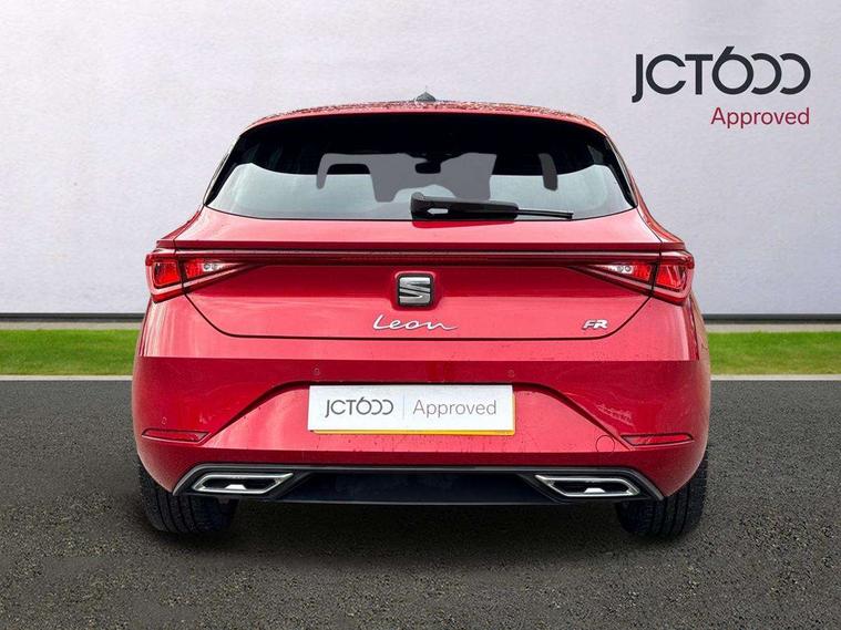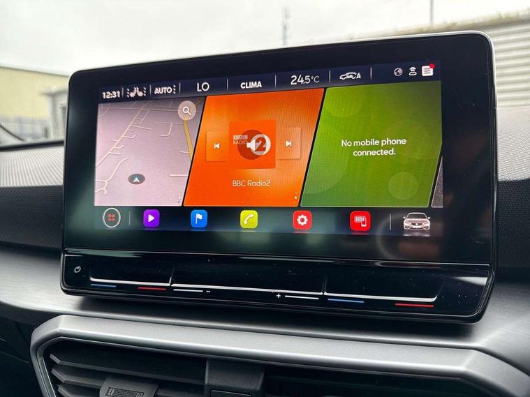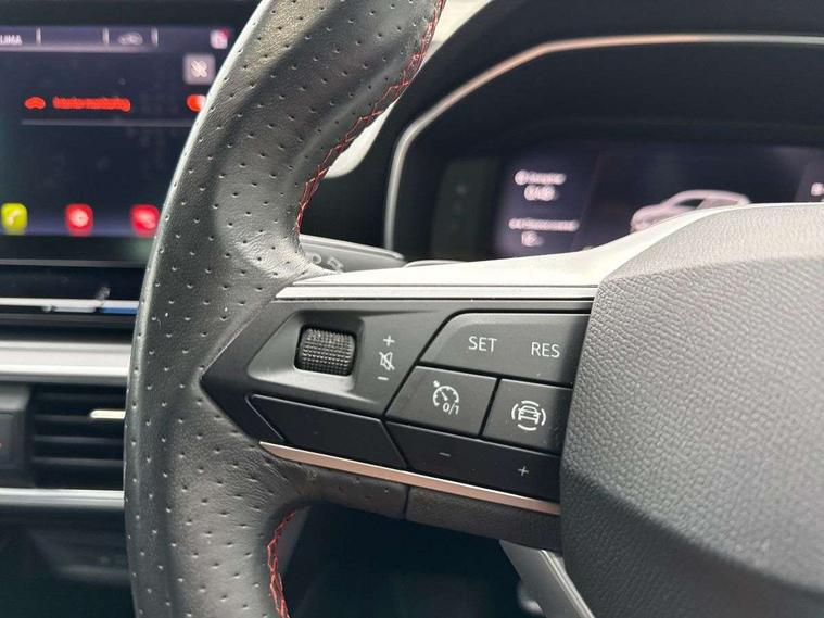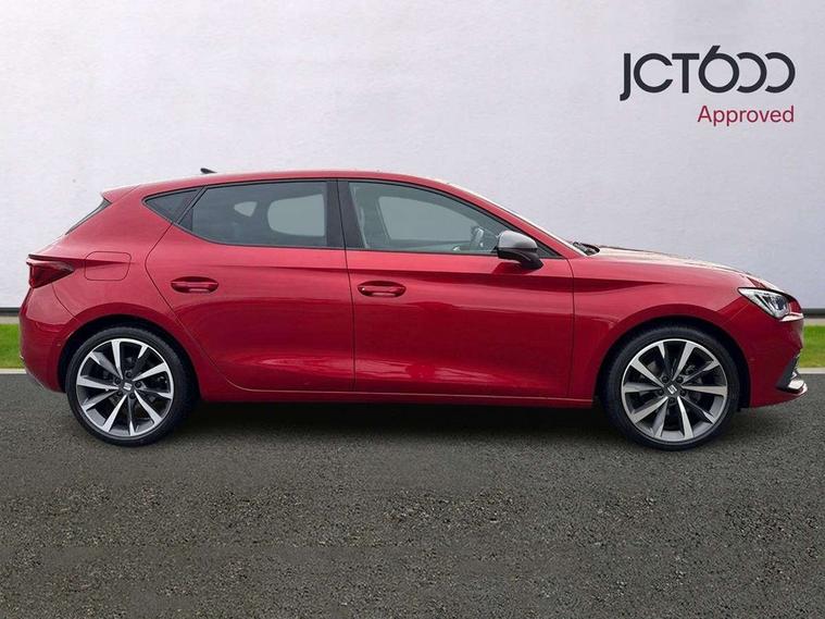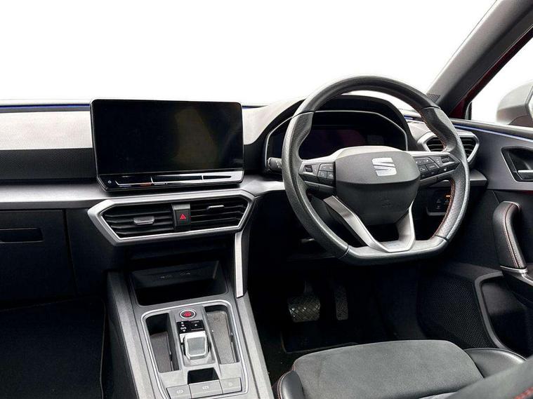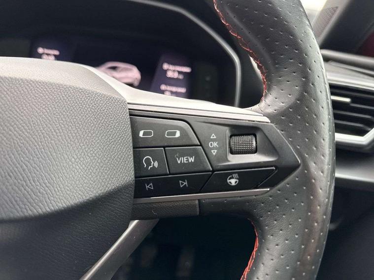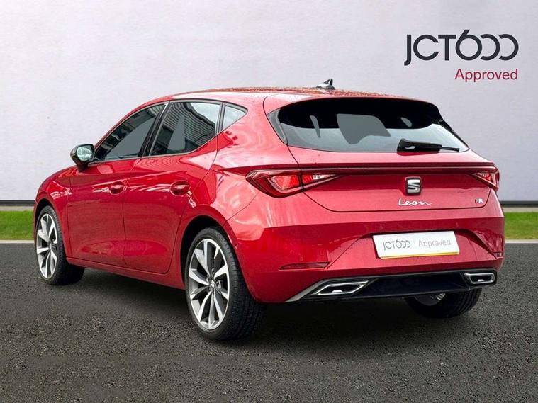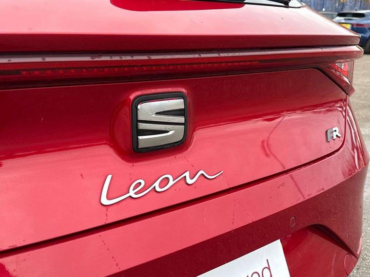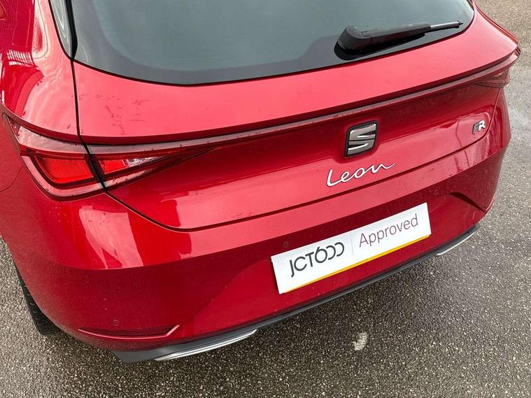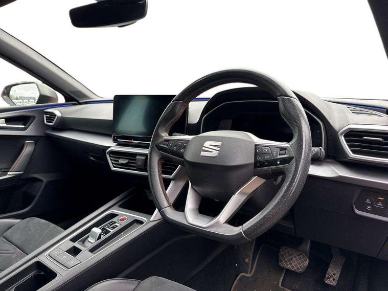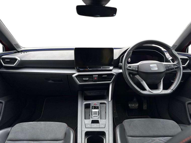 Digital cockpit, Front assist with forward collision warning braking reaction to vehicles, pedestrians and cyclists, Full link smartphone integration with Mirror Link, wireless Apple CarPlay and wired Google Android Auto, Lane keeping system, Park assist (inc front/rear parking sensors), Power assisted speed sensitive electro-mechanical steering, RPM, trip computer, outside temp gauge, instrument light brightness, low fuel warning light, lights on reminder, gearshift indicator, SEAT drive profile with 4 modes (Eco/Normal/Sport/Individual), throttle response and gearshift mode, Service interval indicator, Start/stop system with regenerative braking, Sports suspension, XDS electronic differential lock and dynamic traction support, Auxiliary input socket, Auto dimming rear view mirror, Body colour door handles, Body coloured bumpers, Dark tinted rear windows, Door mirror LED indicator lights, Electric adjustable/heated/folding door mirrors with memory, Electric front/rear windows, FR sports bumper, Illuminated front door sill, LED front fog lamps with cornering function, LED headlights and tail lights with dynamic turn signals, welcome light silhouette from exterior mirrors and dynamic headlight range control, LED rear fog lamp, Rain sensing wipers, Rear wash/wipe, Separate daytime running light with automatic headlight control and coming home feature, 12v power point in centre console, 60/40 split rear bench seat with armrest, Ambient lighting in door trim, Black headlining, Driver/passenger manual seat height adjustment, Dust/pollen filter, Folding boot cover, Front and rear height adjustable headrests, Front and rear reading lights X 4, Front centre armrest, Front seatback storage pockets, Height/reach adjust steering wheel, Interior lighting with LED lighting in sunvisor, glovebox and rear headlining, ISOFIX points in outer rear seats with top tether anchorage points, Luggage tie-down hooks, Lumbar adjustment for front seats, Microsuede cloth upholstery, Sunvisors with covered illuminated mirror, Three zone climate control, Tool kit, Wraparound lighting, Media system plus with navigation - Leon, 3 point seatbelts on all rear seats, ABS, Brake control system - ESC and brake booster, Child proof door locks, Driver and front passenger airbags with front passenger airbag de-activation, front side and curtain airbags, Electronic parking brake, Extended safety system - seat belt tensioner, window closure and hazard lights, Hill hold control, Rear disc brakes, Seat belt reminder for front and rear seats, Tiredness recognition system, driver alert system, Tyre pressure monitoring system, Anti theft alarm system with interior monitoring in cab, backup horn and towing protection, KESSY Go (Keyless start), Lockable tailgate, Locking wheel bolts, Wireless phone charging, Chrome interior detailing, 18" Performance machined alloy wheels with 92Y tyres,