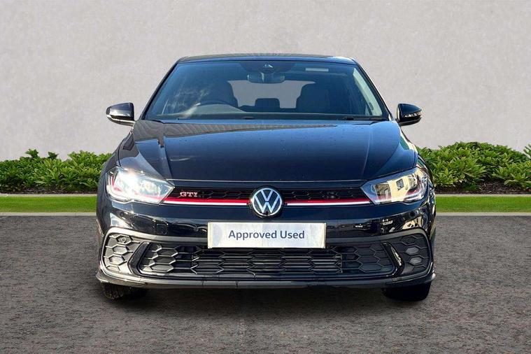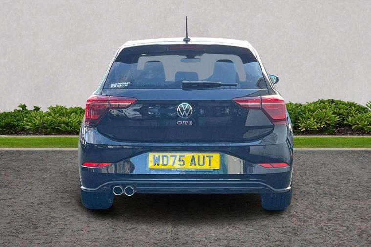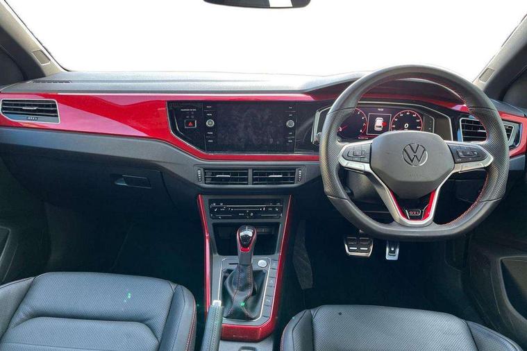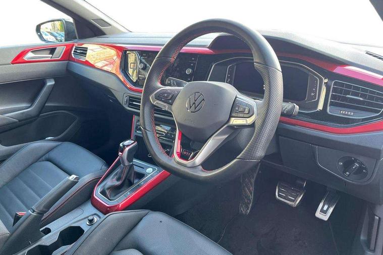 Adaptive cruise control with follow-to-stop and speed limiter, Advanced driver attention and drowsiness monitor, Bluetooth mobile phone interface, Digital Cockpit Pro with 10.25" Display, Dynamic road sign display, Eco mode, Emergency call service, Multifunction camera, Power assisted speed sensitive steering, Preparation for We connect and We connect plus, Speedo and rev counter, electronic odometer, trip, service interval display and fuel gauge, Travel Assist - Lane keeping system and traffic jam assist, Travel assist including emergency assist, Trip computer, Warning signal and warning light for front and rear seatbelts not fastened, Washer fluid level indicator, Wireless app connect, Adaptive chassis control, Front wheel drive, Heavy duty rear axle, Rear shock absorpion sports version, Sports select suspension lowered by 15mm, Start-stop system with battery regeneration (recuperation - energy recovery during braking), DAB Digital radio, Diversity antenna for FM reception, Body colour bumpers, Body colour door handles, Electric front windows, Front scuff plates in aluminium with GTI logo, Heat insulating glass windscreen, Power folding adjustable/heated exterior mirrors and front passenger exterior mirror lowering function, Rain sensor, Rear electric windows, Rear fog light, Rear side wing doors, Rear windscreen washer and wiper with interval delay, Sport bumpers with air intakes with honeycomb structure, Third brake light, Twin chrome exhaust tailpipes, 12V power socket in centre console, 2 USB-C ports in the front, 2 USB-C charging sockets on the center console in the rear, 3 rear head restraints, 60/40 split folding rear seat and rear seat bench not split, Air care climatronic air conditoning system with active combination filter and 2-zone temperature control, Black roof lining, Carpet mats, front and rear, Chrome plated radiator grille inserts, air vent surrounds and light switch surrounds, Door and side trim panel, Driver and front passenger seat height adjustment, Driver/passenger sunvisors with illuminated vanity mirrors, Front centre armrest, Front footwell illumination, Front seat backrest storage pockets, GTI sports gearshift knob in aluminium leather, Handbrake lever handle in leather, Headliner in recycled material, Isofix child seat preparation easy-fit (for two outer rear seats, and front passenger seat) compatible with I-size, LED interior light with switch off delay and dimmer, 2 reading lights front and rear, Luggage compartment cover, Luggage compartment floor, Luggage compartment lighting, Lumbar adjustment for front seats, Single front passenger seat, Stainless steel pedals, Standard pedal cluster, Three spoke leather wrapped multifunction sports steering wheel with shifting paddles, IQ LED matrix headlights pack - Polo, Light and sight pack - Polo GTI, 3 point height adj front seatbelts + pretensioners, 3x3 point rear seatbelts, ABS, Driver and front passenger airbag with front passenger airbag deactivation, Drivers and front passengers safety optimised head restraints, ESC (Electronic stability control) + EDL (Electronic Differntial lock) and ASR (Traction control), Extended and predictive pedestrian/ cyclist protection, Front and rear disc brakes with red brake calipers, Front curtain and side airbags with center airbag, Hill hold control, Manual child lock in rear doors, Two tone horn, Tyre pressure loss indicator, Alarm with interior protection, Anti-theft alarm system with interior monitoring, backup horn, and towing protection, Anti-theft wheel bolts, Electronic engine immobiliser, Chrome applications on rotary light, mirror adjustment, window regulator switches, outlet with frame in black, Low rolling resistance tyres,