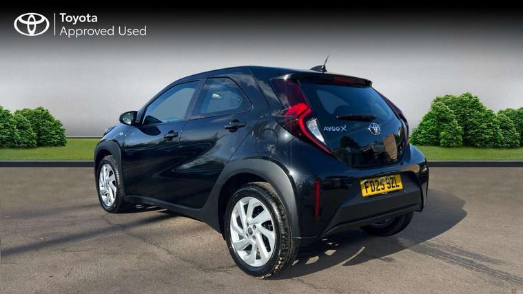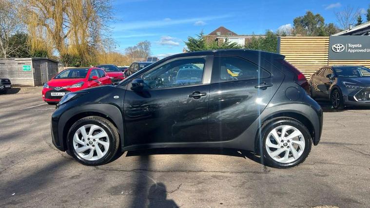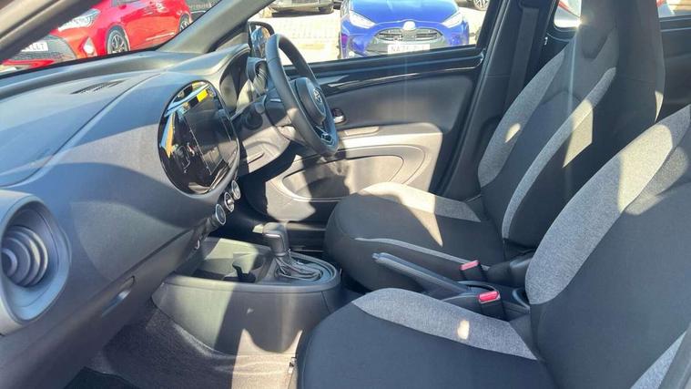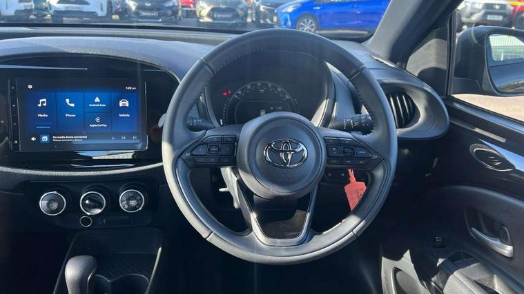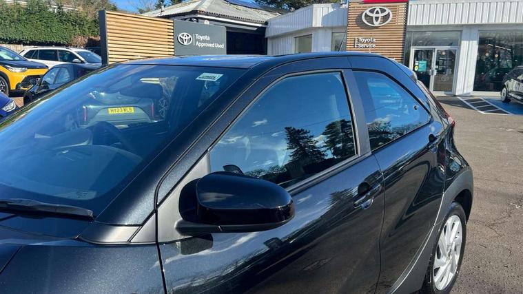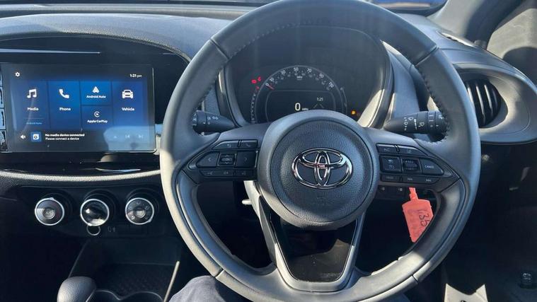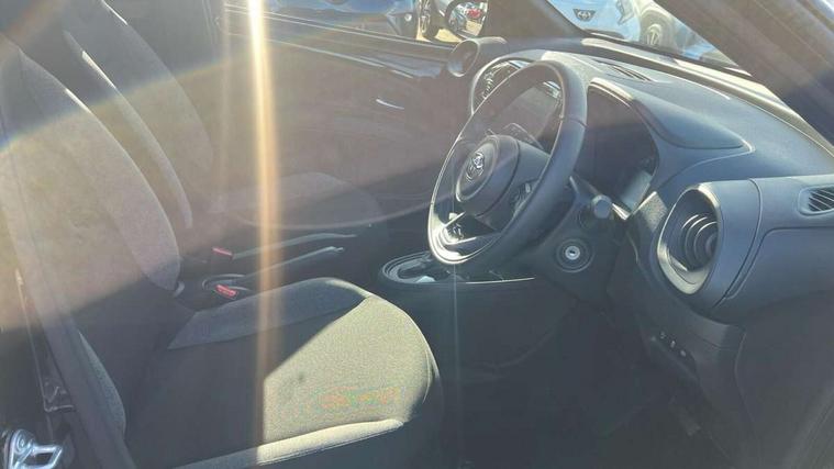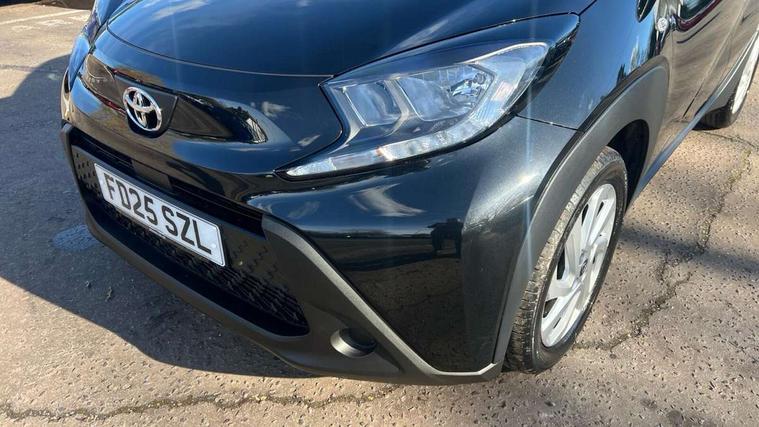 4.2" TFT colour screen, Adjustable speed limiter, Analogue speedometer, Bluetooth connectivity, Digital tachograph, Driver attention alert system, eCall emergency call system, ECO-driving indicator, Electric power steering, Intersection turn assist, Key reminder warning, Noise reduction kit, Pre collision system with emergency steering assist, Reversing camera with static guide lines, Smart phone integration with Apple car play/Android Auto, Speed limit display, Start and stop, Vehicle Stability Control (VSC), 4 speakers, 9" HD multimedia display touch screen with Toyota smart connect, DAB digital audio broadcast, USB connector, Auto headlights, Automatic headlights cut-off, Bicycle towing hook, Black lower front grille, Black rear bumper, Black side protection mouldings, Black upper front grille, Black wheel arch mouldings, Body colour door handles, Body coloured front bumper, Boot door scuff plate, Electric heated door mirrors, Follow me home headlights, Front power windows, Gloss black door mirrors, Headlight cut-off reminder, LED daytime running lights, LED front light guide, LED High mounted stop lamp, Manual day/night rear view mirror, Manual headlight levelling, Pagoda roof, Power adjustable door mirrors, Power back door, Projector halogen headlights, Rain sensor, Rear combination lights LED bulb type, Rear side wing doors, Rear windscreen defogger, Rear windscreen wiper, Short antenna, Variable intermittent windscreen wipers, 12v power outlet - front, 2 seat bench in 2nd row, 3 spoke leather steering wheel, 50/50 split folding rear seat, Adhesive roof headlining, Adjustable speed limiter switch on steering wheel, Audio and telephone switches on steering wheel, Black insert on steering wheel, Boot light, Centre room light, Chrome interior door handles, Chrome surround on air conditioning buttons, Clean air filter, Fabric upholstery, Floor mats, Front and rear cup holders, Front head rest deco art, Front head restraints, Gear shift indicator, Height adjustable driver seat, Intelligent adaptive cruise control switch on steering wheel, ISOFIX child restraint system on rear seats, Lane departure alert switch on steering wheel, Leather gearshift knob, Light grey roof lining, Manual air conditioning, Manual tilt steering wheel, Manually reclining and sliding driver seat, Manually reclining and sliding front passenger seat, Multimedia switches on steering wheel, Pollen filter, Rear door pockets, Rear head restraints, Resin console box storage, Satin silver insert on gear shift knob, Silver stitching on gear shift knob, Single compartment glovebox with lights, Single front passenger seat, Soft tonneau cover, Sun visors with mirror on driver and passenger side, Voice recognition switch on steering wheel, Toyota safety sense pack - Aygo X, Anti lock braking system + Electronic brake force distribution, Child safety door lock, Emergency brake light signal (EBS), Hill start assist control (HAC), Passenger airbag on/off switch, Seat belt reminder for front and rear seats, Supplement restraints system (SRS) - 6 airbags, Traction control, Tyre pressure warning system, Immobiliser, Remote power door locks, Black air vent surround, Black wheel centre caps, Tyre repair kit,