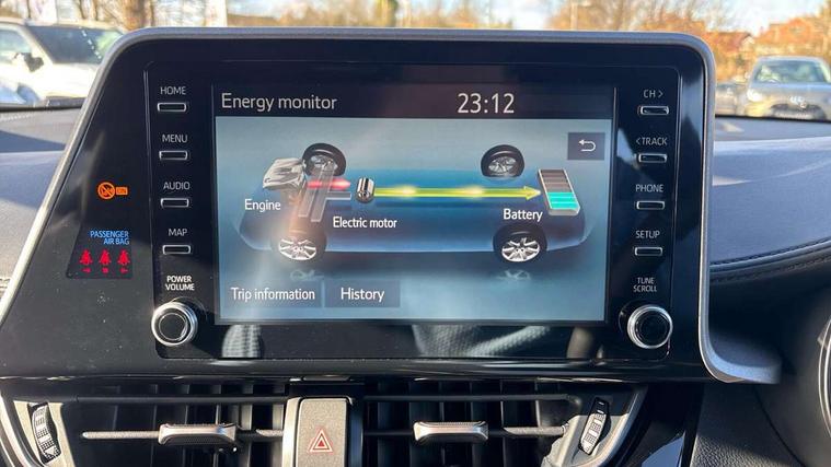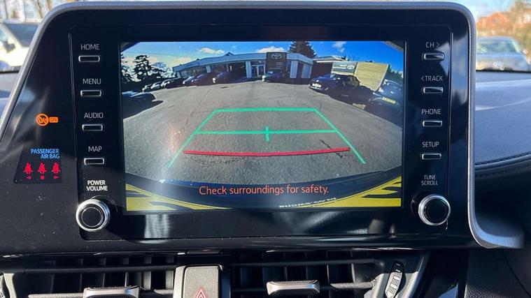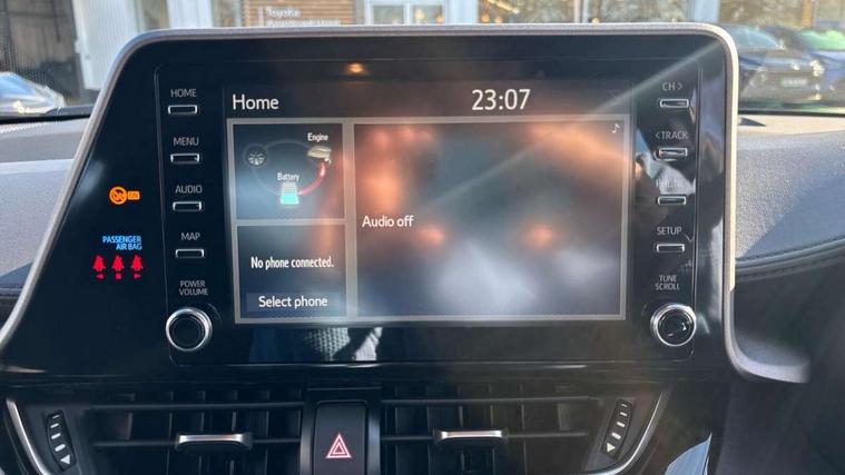 4.2" coloured TFT screen for multi-information display, Adaptive cruise control, Apple car play and Android auto, Bluetooth connectivity, E-call, Electric power steering, Hybrid system indicator, Lane departure alert with steering control, Lane trace assist, Push button start, Push button tailgate release, Remote boot door release in cabin, Remote boot door release in key, Reversing camera, Road sign assist - RSA, Smart voice assist, Trip computer, Voice recognition, Vehicle Stability Control (VSC), 6 speakers, AM/FM radio, DAB Radio (Digital Audio Broadcasting), Toyota touch 2 multimedia system with 8" display, USB connector, Wi-fi connectivity, Anti-jam protection on power windows, Auto high beam, Auto up and down function on all power windows, Automatic headlights, Automatic headlights cut-off, Black and body coloured rear bumper, Black lower front grille, Black upper front grille, Body colour door handles, Body colour door mirrors, Body colour front spoiler lip, Body coloured front bumper, Boot door release with push button, Electric heated door mirrors, Follow me home headlights, Front and rear power windows, Front fog lights, Headlight cut off reminder, Honeycomb lower front grille, LED daytime running lights, LED High mounted stop light, LED rear brake lights, LED rear combination lights, Manual headlight levelling, Manually retractable door mirrors, Noise reduction layer on front windows and windscreen, Power adjustable door mirrors, Rear side wing doors, Rear spoiler, Rear tailgate, Rear window defogger, Rear window wiper, Reflective LED headlights, Shark fin antenna, UV-filter on driver and passenger windows, UV-filter on rear windows, Variable front intermittent wipers, 12v power outlet - front, 3 rear headrests, 3 seat bench in 2nd row, 3 spoke leather steering wheel, 60/40 split folding 2nd row rear seats, Adjustable rear headrests, Adjustable speed limiter switch on steering wheel, Assist grips front and centre pillar, Audio and telephone switches on steering wheel, Black front door assist grips, Boot light, Chrome interior door handles, Cloth upholstery, Driver and front passenger personal light, Driver and front passenger Whiplash Injury Lessening seats, Dual zone automatic air conditioning, Floor mats, Front cupholders, Front head restraints, Front sports seats, Glovebox with internal light, Hard tonneau cover, Hooks for luggage holding net, Humidifying Nanoe air purifier, Illuminated entry system, Isofix attachments on outer rear seats, Leather gearshift, Light on driver sun visor, Light on passenger sun visor, Manual telescopic steering wheel, Manual tilt steering wheel, Manually adjustable lumbar support on driver seat, Manually height adjustable driver seat, Manually height adjustable front passenger seat, Manually reclining driver seat, Manually reclining front passenger seat, Manually sliding driver seat, Manually sliding front passenger seat, Microphone on front personal light, Mirror on driver sun visor, Mirror on passenger sun visor, Multimedia switches on steering wheel, Pollen filter, Shopping bag hooks, Single front passenger seat, Slow opening on lower glovebox, Voice recognition switch on steering wheel, 16 Disk front wheel brake, 3x3 point rear seatbelts, ABS+EBD+Brake assist, Electronic parking brake, Front and rear seatbelt reminder, Front passenger airbag on/off switch, Hill start assist control (HAC), Pre collision system with pedestrian detection, Pre-tensioners and force limiters, Rear door child safety locks, SRS Airbags - Driver + Front passenger, front side, front and rear curtain and driver's knee airbags, Toyota safety sense, Tyre pressure monitoring system, Tyre pressure warning system, Acoustic vehicle alert system (AVAS), Glass-breaking alarm sensors, Immobiliser, Intrusion alarm, Intrusion sensor, Motion sensor alarm, Power door locks, Power passenger window lock, Remote central locking, Black lower dashboard, Black upper dashboard, Grey deco line on upper dashboard, Matte black centre console, Tyre repair kit,