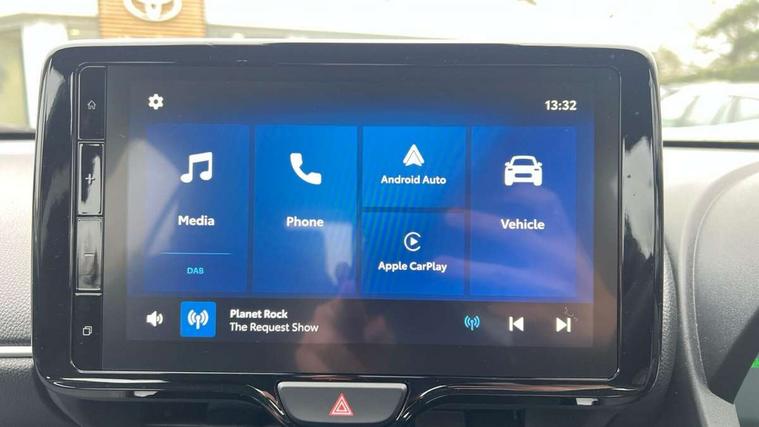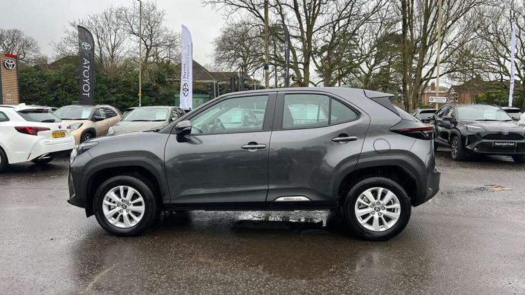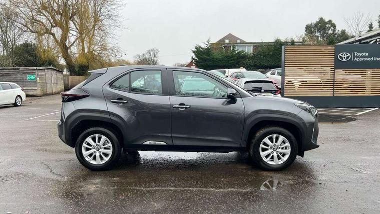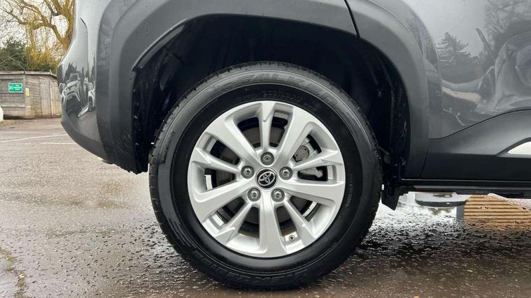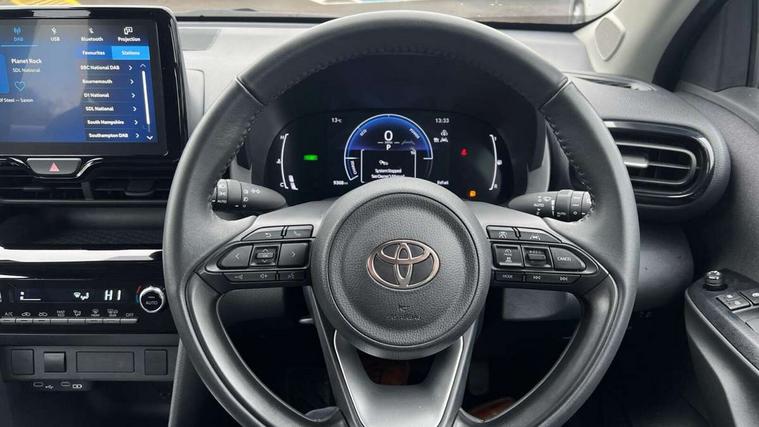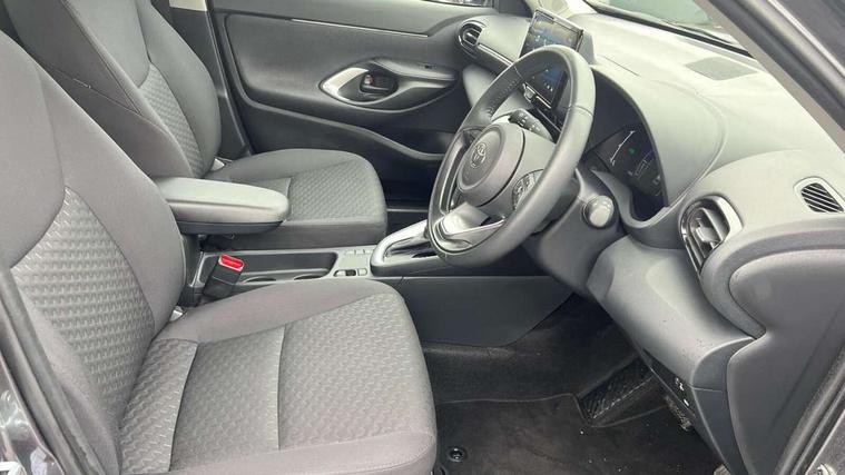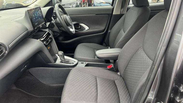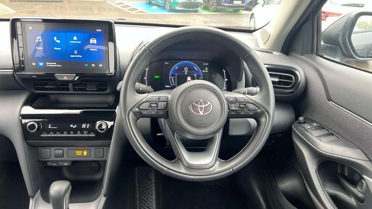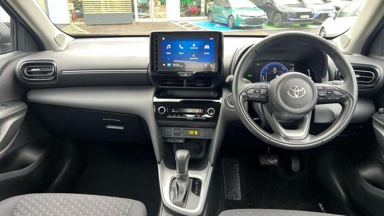 7" Multi information display screen, 9" Toyota touch 3 multimedia system with Smartphone integration with Apple CarPlay and Android auto, Adaptive cruise control, multi info switches on steering wheel, Adjustable speed limiter, Bluetooth connectivity, Color multi-information display, Digital speedometer, Digital tachometer, Drive mode selector, Driver attention alert system, eCall emergency system, Electric power steering, Emergency driving stop system, Full range intelligent adaptive cruise control, Hybrid system indicator, Intersection turn assist, Key reminder warning, Lane trace assist, My T Connected services, Pre-collision system enhanced with emergency steering assist, Reversing camera, Road sign assist - RSA, Static guide lines on reversing camera, Tailgate, Telephone switch on steering wheel, Steering assisted vehicle stability control, 6 speakers, DAB Digital radio, Front USB Type-C connector, Front USB-C device charger, 3rd brake light, Acoustic windscreen glass, Anti-jam protection on power windows, Auto high beam [AHB] with on/off switch, Auto intermittent windscreen wipers, Automatic headlights, Automatic headlights cut-off, Black door moulding, Black lower front grille, Black protection moulding on side doors, Black upper front grille, Black wheel arch mouldings, Body colour door handles, Body colour front bumper, Body colour rear bumper, Electric adjustable heated door mirrors, Follow me home headlights, Front and rear electric windows with auto up/down function, Halogen projector headlights, Headlight cut off reminder, Indicators integrated on door mirrors, Intermittent rear wiper, LED daytime running lights, LED front fog lights, LED front light guide, LED Indicators, Manual day/night rear view mirror, Manual headlight levelling, Manually retractable door mirrors, Noise reduction layer on windscreen, Pre wiring for towing hook, Privacy glass, Rain sensor, Rear roof spoiler, Rear side wing doors, Rear window defogger, Shark fin antenna, 12v power outlet - front, 2x Rear coat hooks, 3 seat bench in 2nd row, 3 spoke leather steering wheel, 60/40 split folding rear seat, Adjustable rear headrests, Adjustable speed limiter switch on steering wheel, Auto air conditioning, Boot light, Central armrest, Driver and front passenger personal lights, Driver and front passenger Whiplash injury Lesseing seats, Fabric door trim, Fabric upholstery, Front console box, Front cup holders, Front door pockets, Front head restraints, Front/rear assist grips, Gear shift indicator, Grey roof lining, Height adjustable driver's seat, Height adjustable front passenger seat, ISOFIX child restraint system, Lane departure alert switch on steering control, Leather gearshift, LED centre room light, Manual telescopic and tilting steering wheel, Mirror on driver and passenger sun visor, Pollen air filter, Rear cup holders, Rear door pockets, Rear head restraints, Remote air-conditioning system, Single compartment glovebox, Single front passenger seat, Soft tonneau cover, Storage box under boot floor, Voice recognition switch on steering wheel, Yaris cross floor mats, 3x3 point rear seat belts, ABS+EBD+Brake assist, Driver and passenger central airbags, Driver and passenger front airbags, Driver and passenger side airbags, Electronic parking brake, Emergency brake light system (EBS), Front seat belt reminder, Hill start assist control (HAC), Passenger airbag on/off switch, Pre-collision system with pedestrian and cyclist detection, Rear door child safety locks, Rear passenger side airbags, Rear seat belt reminder, Traction control, Tyre pressure warning system, Immobiliser, Intrusion alarm, Keyless smart entry with push button start, Power door locks, Power passenger window lock, Remote door lock, Gloss black side air vent surrounds, 16" 10 spoke silver alloy wheels, Tyre repair kit,