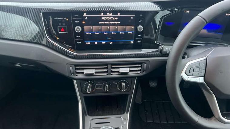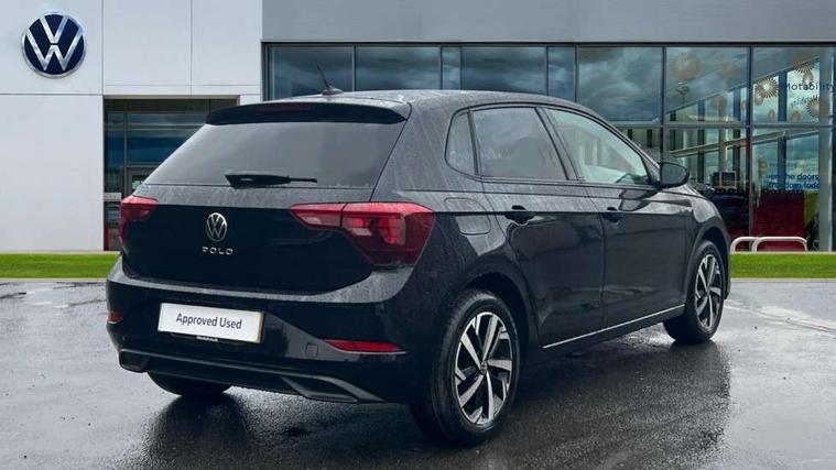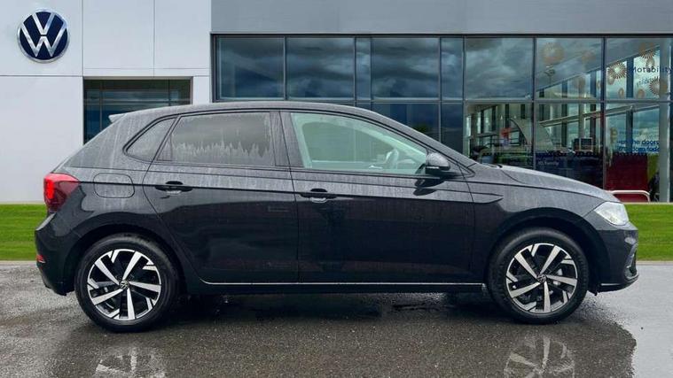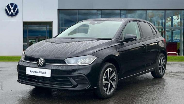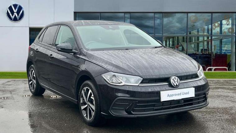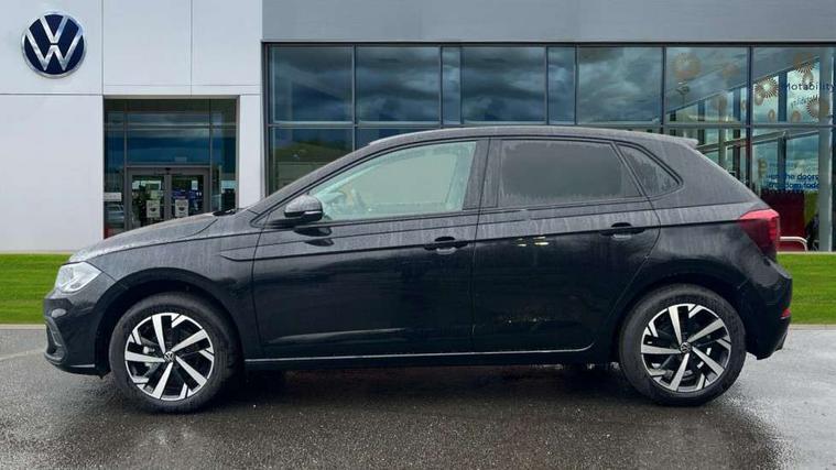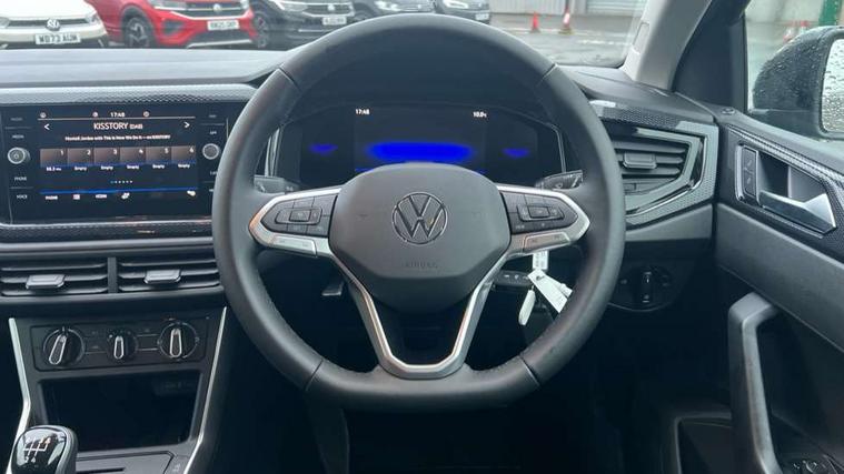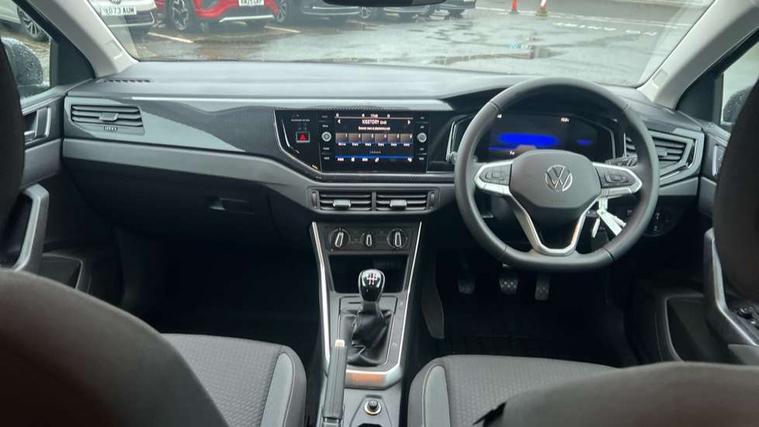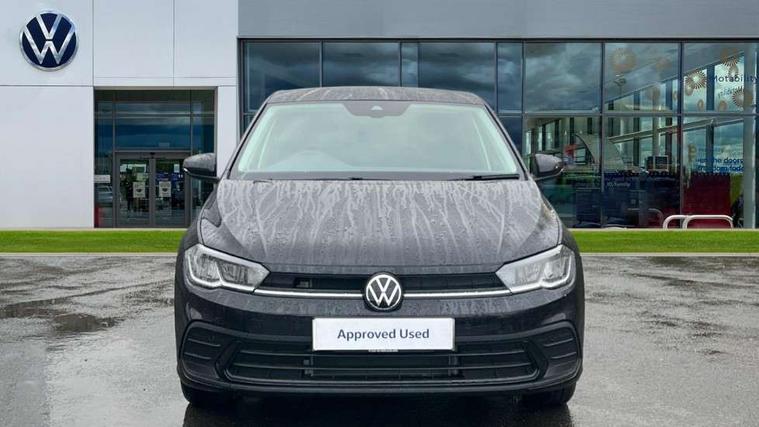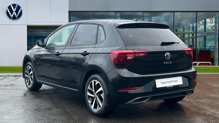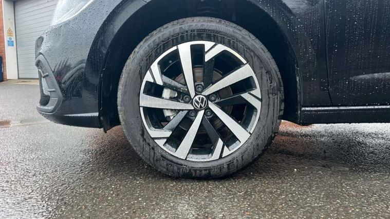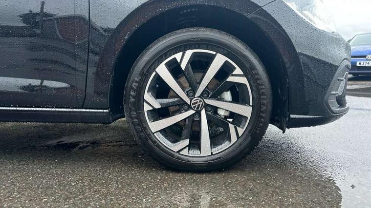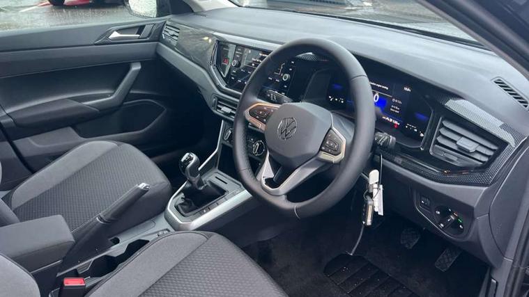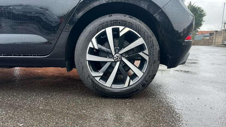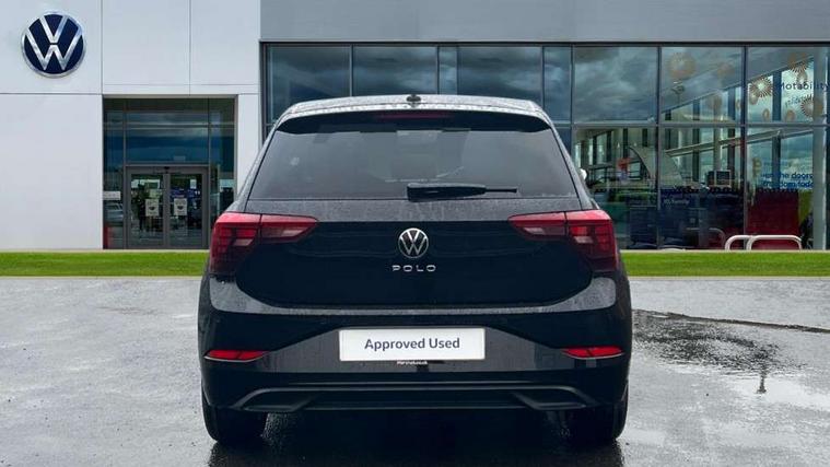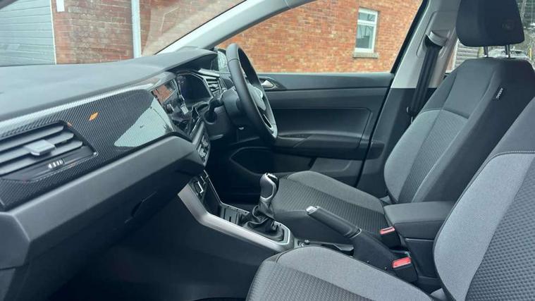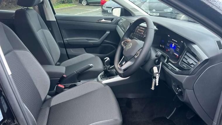 Adaptive cruise control without follow-to-stop and speed limiter, Advanced driver attention and drowsiness monitor, Bluetooth mobile phone interface, Dynamic road sign display, Emergency call service, Mobile phone preparation with inductive charging function, Multifunction front facing camera for distance control, Power assisted speed sensitive steering, Preparation for navigation system with media and internet package, Preparation for We connect and We connect plus, Rear view camera, Speedo and rev counter, electronic odometer, trip, service interval display and exterior temperature gauge, Standard rear axle, Travel Assist - Lane keeping system and traffic jam assist, Travel assist including emergency assist, Trip computer, Warning signal and warning light for front and rear seatbelts not fastened, Washer fluid level indicator, Wireless app connect, Front wheel drive, Rear shock absorpion, Start-stop system with battery regeneration (recuperation - energy recovery during braking), DAB Digital radio, Diversity antenna for FM reception, Automatic dimming interior rear view mirror, Automatic headlight control with LED separate daytime running lights with coming/leaving home function, Body colour bumpers with chrome inserts, Body colour door handles, Body colour door mirrors, Electric front windows, Engine badge deletion, Headlight range adjustment, Heat insulating and laminated safety glass windshield, LED Headlights, LED rear combination lamps, Power folding adjustable/heated exterior mirrors and front passenger exterior mirror lowering function, Rain sensor, Rear electric windows, Rear fog light, Rear side wing doors, Rear tinted glass from B-pillar backwards approx 65% tinted, Rear windscreen washer and wiper with interval delay, Third brake light, 12V power socket in centre console, 2 front and 2 rear reading lights with switch off delay and dimmer, 2 USB-C ports in the front, 2 USB-C charging sockets on the center console in the rear, 3 rear head restraints, 60/40 split folding rear seat and rear seat bench not split, Carpet mats, front and rear, Ceramique roof lining, Chrome plated radiator grille inserts, air vent surrounds and light switch surrounds, Door and side trim panel, Driver and front passenger seat height adjustment, Driver/passenger sunvisors with illuminated vanity mirrors, Front centre armrest, Front seat backrest storage pockets, Front standard seats, Handbrake lever handle in leather, Hartley/Thomas cloth upholstery, Headliner in recycled material, Isofix child seat preparation easy-fit (for two outer rear seats, and front passenger seat) compatible with I-size, Leather trimmed gear knob, Luggage compartment cover, Luggage compartment lighting, Removable luggage compartment floor, Single front passenger seat, Standard climatic zones, Standard pedal cluster, Three spoke leather wrapped multifunction steering wheel, Light and vision pack - Polo, 3 point height adj front seatbelts + pretensioners, 3 point seat belt for centre rear seat, 3 point seatbelts, outer rear with ECE lable, ABS, Driver and front passenger airbag with front passenger airbag deactivation, Drivers and front passengers safety optimised head restraints, ESC (Electronic stability control) + EDL (Electronic Differntial lock) and ASR (Traction control), Extended and predictive pedestrian/ cyclist protection, Front assist with autonomous emergency braking (for Adaptive Cruise Control ACC up to 130 mph), Front curtain and side airbags with center airbag, Front disc brakes, Hill hold control, Manual child lock in rear doors, Rear drum brakes, Single tone horn, Tyre pressure loss indicator, Alarm with interior protection, Anti-theft alarm system with interior monitoring, backup horn, and towing protection, Anti-theft wheel bolts, Electronic engine immobiliser, Lava stone black gloss/matt decorative inserts in dash and front door panels, 16" Torsby alloy wheels, Low rolling resistance tyres,