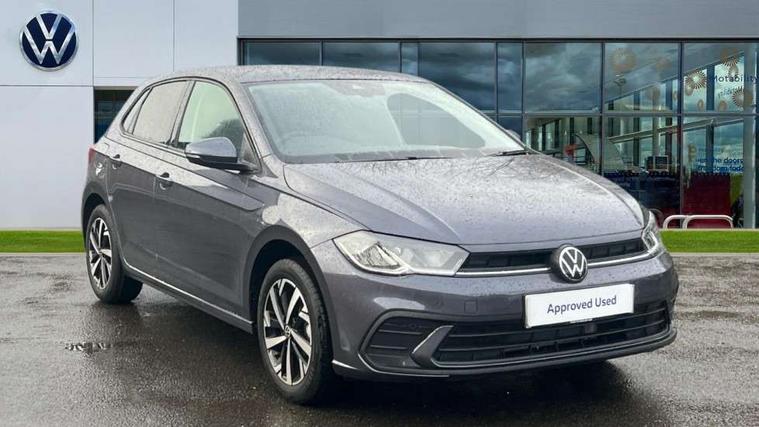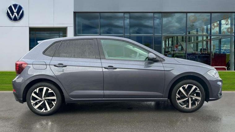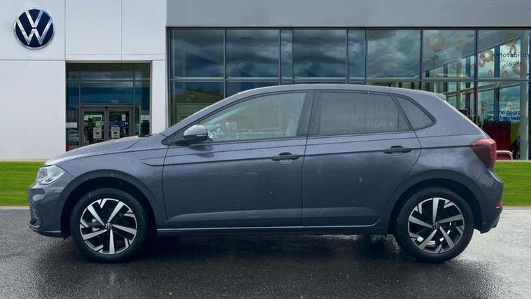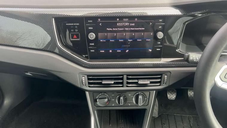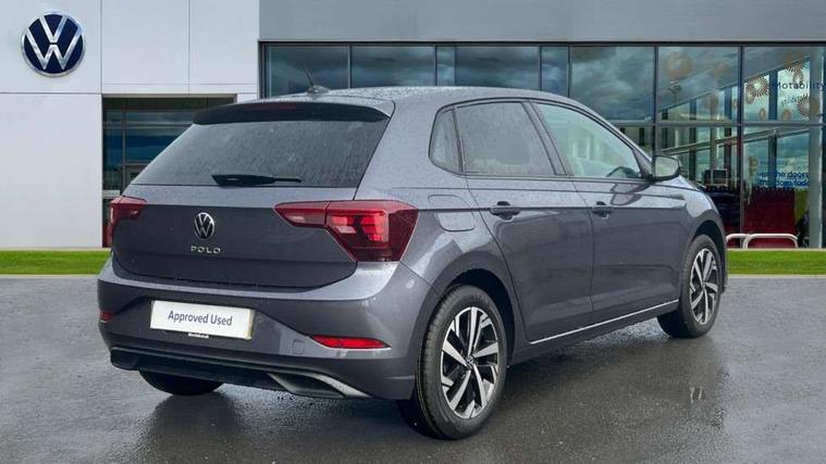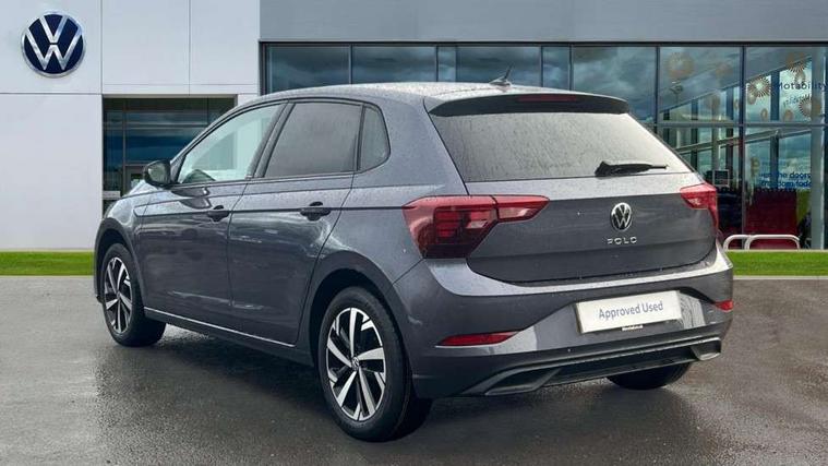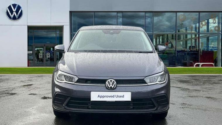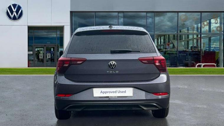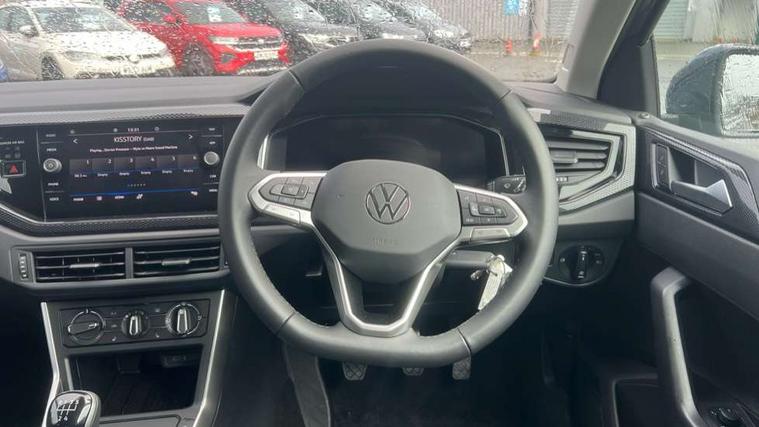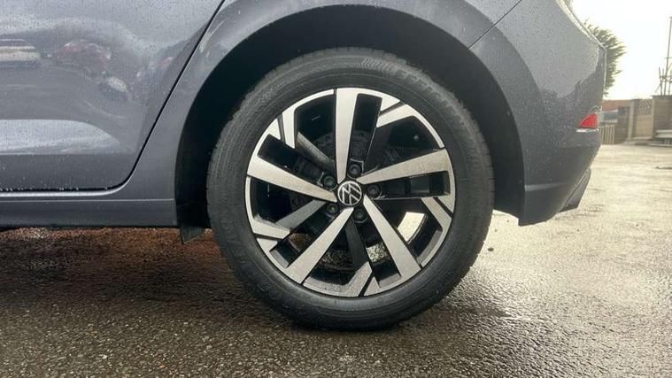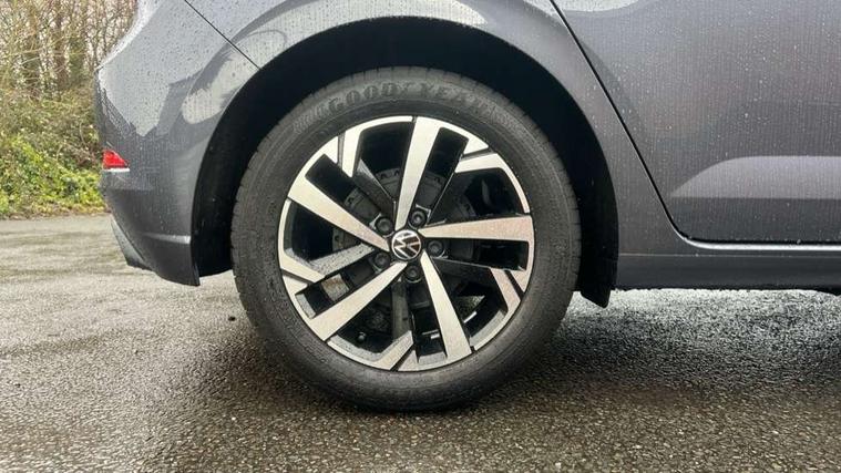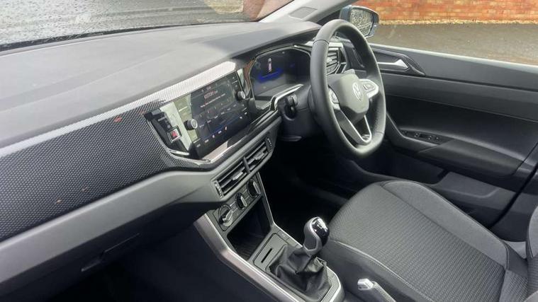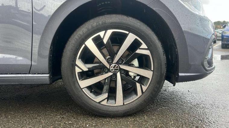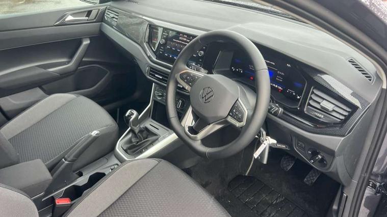 Adaptive cruise control without follow-to-stop and speed limiter, Advanced driver attention and drowsiness monitor, Bluetooth mobile phone interface, Dynamic road sign display, Emergency call service, Mobile phone preparation with inductive charging function, Multifunction front facing camera for distance control, Power assisted speed sensitive steering, Preparation for navigation system with media and internet package, Preparation for We connect and We connect plus, Rear view camera, Speedo and rev counter, electronic odometer, trip, service interval display and exterior temperature gauge, Standard rear axle, Travel Assist - Lane keeping system and traffic jam assist, Travel assist including emergency assist, Trip computer, Warning signal and warning light for front and rear seatbelts not fastened, Washer fluid level indicator, Wireless app connect, Front wheel drive, Rear shock absorpion, Start-stop system with battery regeneration (recuperation - energy recovery during braking), DAB Digital radio, Diversity antenna for FM reception, Automatic dimming interior rear view mirror, Automatic headlight control with LED separate daytime running lights with coming/leaving home function, Body colour bumpers with chrome inserts, Body colour door handles, Body colour door mirrors, Electric front windows, Engine badge deletion, Headlight range adjustment, Heat insulating and laminated safety glass windshield, LED Headlights, LED rear combination lamps, Power folding adjustable/heated exterior mirrors and front passenger exterior mirror lowering function, Rain sensor, Rear electric windows, Rear fog light, Rear side wing doors, Rear tinted glass from B-pillar backwards approx 65% tinted, Rear windscreen washer and wiper with interval delay, Third brake light, 12V power socket in centre console, 2 front and 2 rear reading lights with switch off delay and dimmer, 2 USB-C ports in the front, 2 USB-C charging sockets on the center console in the rear, 3 rear head restraints, 60/40 split folding rear seat and rear seat bench not split, Carpet mats, front and rear, Ceramique roof lining, Chrome plated radiator grille inserts, air vent surrounds and light switch surrounds, Door and side trim panel, Driver and front passenger seat height adjustment, Driver/passenger sunvisors with illuminated vanity mirrors, Front centre armrest, Front seat backrest storage pockets, Front standard seats, Handbrake lever handle in leather, Hartley/Thomas cloth upholstery, Headliner in recycled material, Isofix child seat preparation easy-fit (for two outer rear seats, and front passenger seat) compatible with I-size, Leather trimmed gear knob, Luggage compartment cover, Luggage compartment lighting, Removable luggage compartment floor, Single front passenger seat, Standard climatic zones, Standard pedal cluster, Three spoke leather wrapped multifunction steering wheel, Light and vision pack - Polo, 3 point height adj front seatbelts + pretensioners, 3 point seat belt for centre rear seat, 3 point seatbelts, outer rear with ECE lable, ABS, Driver and front passenger airbag with front passenger airbag deactivation, Drivers and front passengers safety optimised head restraints, ESC (Electronic stability control) + EDL (Electronic Differntial lock) and ASR (Traction control), Extended and predictive pedestrian/ cyclist protection, Front assist with autonomous emergency braking (for Adaptive Cruise Control ACC up to 130 mph), Front curtain and side airbags with center airbag, Front disc brakes, Hill hold control, Manual child lock in rear doors, Rear drum brakes, Single tone horn, Tyre pressure loss indicator, Alarm with interior protection, Anti-theft alarm system with interior monitoring, backup horn, and towing protection, Anti-theft wheel bolts, Electronic engine immobiliser, Lava stone black gloss/matt decorative inserts in dash and front door panels, 16" Torsby alloy wheels, Low rolling resistance tyres,