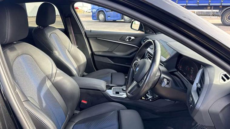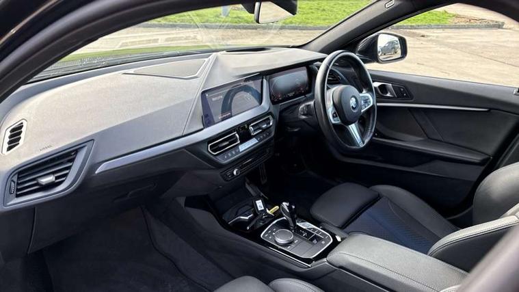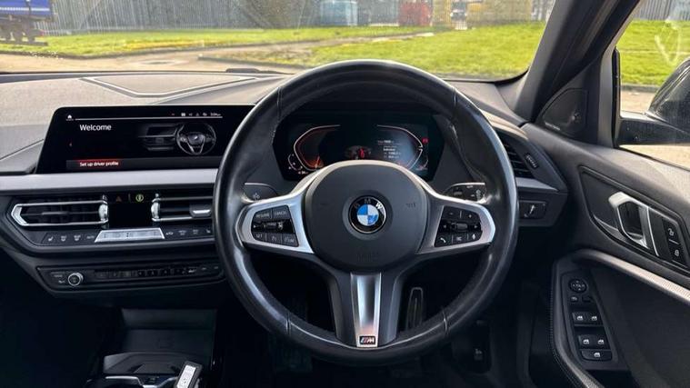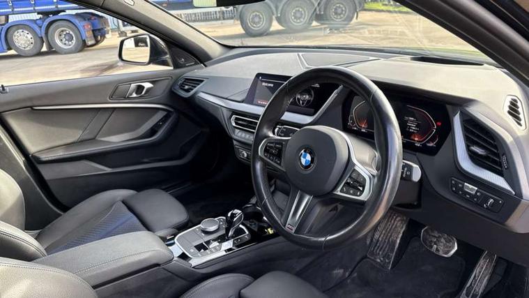 Active guard plus, Attentiveness assist, BMW ConnectedDrive online services, BMW Teleservices, Check Control warning system for monitoring of lights and door/luggage compartment open warning, Cruise control with speed limiter, Eco pro mode, Front axle single joint with specific axle kinematics to minimise drive influences on steering + provide increased rigidity agile driving behaviour, Integrated owners handbook, Lane departure warning system, Oil sensor for level and grade, On board computer, Optimum shift indicator, Personal Profile, Pull away assistant, Rigidly mounted rear subframe - Multi link construction with separate spring / damper configuration and excellent driving characteristics, Speed limit Info including no-overtaking indicator, Aluminium lightweight construction, Anti roll bar front and rear, Balancer shaft, Double VANOS twin scroll turbocharging system, Drive Performance Control, Electronic differential lock, High precision injection, M sport suspension, Petrol Particulate Filter, Twin tube gas filled shock absorbers with degressive characteristic curve, VALVETRONIC engine management, DAB Digital radio, Auto dimming rear view mirror, Automatic headlight beam throw control, Automatic windscreen wipers and automatic headlight, Body colour door handles, Body colour mirror caps, Body colour roof trims, Chrome 'M' logo side designation, Chrome exhaust twin tailpipes round 90mm in left, Chrome kidney grille frame with Satin Aluminium struts, Direction indicator side lights in exterior mirrors, Electrically adjustable exterior mirror with mirror adjustment switch on drivers armrest and aspheric on driver side, convex on passenger side, Fading support, Folding side mirrors with auto dimming/folding wing mirrors with auto dimming, Follow me home headlights, Front and rear bumper system with replaceable deformation elements, Front and rear electric windows with open and close fingertip control, anti trap facility and comfort closing, Front door sill finishers in black plastic with M designation in metallic look, Green tinted heat protection glazing, High gloss shadowline window frame, Recess cover mirror frames and B/C pillar embelisher trim, High level third brake light, Integrated front windscreen with washer jets, LED daytime running lights, LED eyebrow turn indicators, LED front fog lights, Lightweight engineering, Matt black air guide grilles, Matt black wheel arch trim, Model designation on electric bootlid, Nearside reverse light in rear light cluster, Preparation for high beam assistant, Rear fog lights, Rear side wing doors, Rear window wiper, Shark fin antenna, Trailer stabilisation logic, Visible VIN plate, Welcome lighting, 12V power socket in front centre console with blanking plug, 3 rear seat head restraints, 3 seat bench in 2nd row, 3 spoke sports leather steering wheel with black leather and stitching, pearl chrome decorative finish, specific M Badge, Anthracite headlining, Black boot net with lashing eyes, Cargo function on 2nd seat row, Child seat ISOFIX attachment for two outer rear seats and front passenger seat with anchorage points, Conditioned based service, Driver and front passenger backrest net on rear, Driver and front passenger seat heating, Driver side folding compartment in instrument panel, Folding rear clothes hook, Four grab handles integrated in roof lining, Front and rear door pockets with bottle holders, Front and rear side armrest integrated into door trim, Front armrest, Front sports seats, Glove compartment, Height adjustable front head restraints, Luggage compartment for bag hooks on left and right, foldable luggage compartment liner and four lashing eyelets, Manual adjust steering wheel, Multi-function controls for steering wheel, Single front passenger seat, Storage compartment in centre console, Storage compartment in luggage compartment, Stowage of the parcel shelf in luggage compartment trim, Sun visors with vanity mirrors and insert tab, Two front centre console cupholders, Two zone automatic air conditioning, Type C two USB ports in rear centre console, Velour floor mats, Additional interior lighting pack - 1 Series, BMW live cockpit professional pack- 1 Series, Connected pack professional - 1 Series, Interior lights pack - 1 Series, M Sport exterior styling aerodynamics pack - 1 Series, 2 tone horn, 3 point seatbelts on all seats, front pyrotechnic belt tensioners, stopper and belt force limiters, rear coded belt buckles, Airbags - Front driver/passenger, front and rear curtain head protection, front side, manual deactivation of front passenger airbag, Anti lock braking system (ABS) with brake assist, BMW emergency call, Brake drying, Braking readiness, Child proof locking system in rear door, City braking function, Comfort modes, Cornering brake control, Crash sensor activating of airbags, Unlocking doors, hazard warning lights, fuel cut off, interior lighting+activation of safety battery terminal clamp, Driver and front passenger seat belt security check, Dynamic stability control + (DSC+), Dynamic Traction Control - DTC, Electrically operated hand brake including automatic hold function, Front and rear disc brakes, Seatbelt warning, Side impact protection, Tyre pressure monitoring system, Warning triangle and first aid kit, Central locking switch for all doors, fuel filler cap and luggage compartment, Deadlocking function system to all doors, Drive away locking system on all doors and luggage compartment with de-activated in iDrive settings, Locking wheel bolts, Remote control with integrated key with High-gloss Black inlay and M designation and 1 button for open/ close lock, window, open luggage compartment, Start/stop button illuminated in centre console with keyless engine start and auto start stop deactivation button, Thatcham Cat.1 alarm and immobiliser, Wheel slip limitation close to the actuator (ARB), Contrast stitching on instrument panel, 18" Burnished M double spoke bi-colour alloy wheels finished in orbit grey - styl