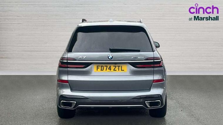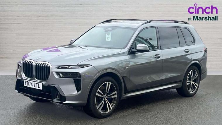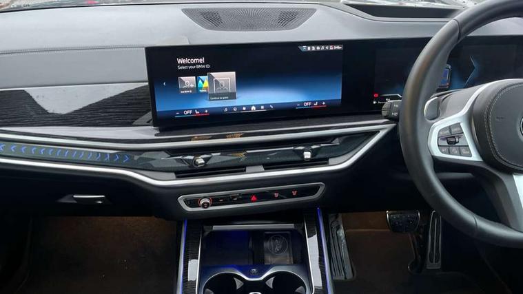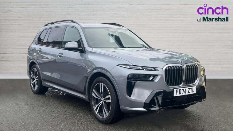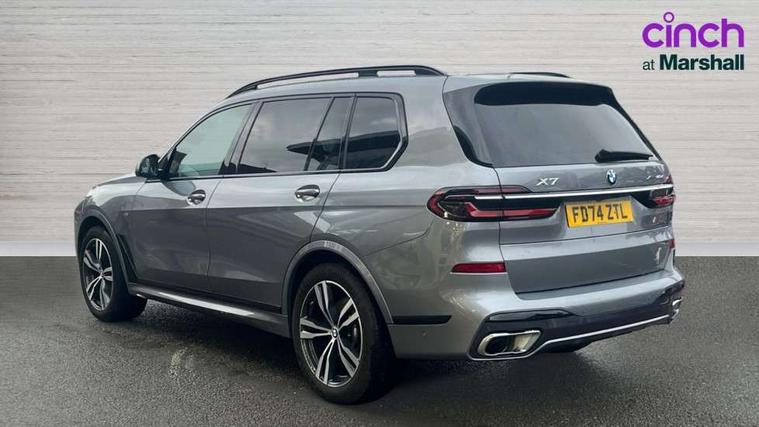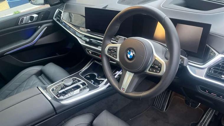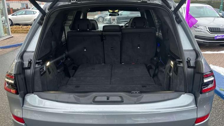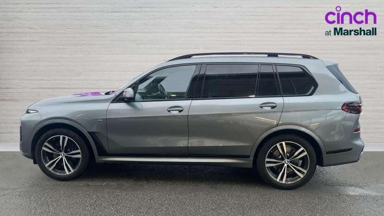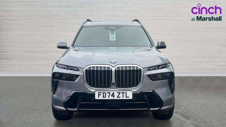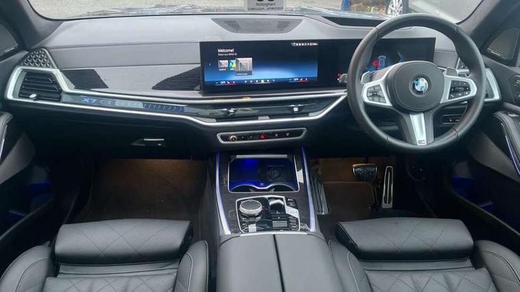 2 rear USB-C ports, Attentiveness assist, Automatic start/stop function, Automatic tailgate operation, BMW ConnectedDrive online services, BMW Drive recorder, BMW gesture control, BMW Teleservices, Brake pad wear indicator in front and rear, Condition based service, Integrated owner's handbook, Live Cockpit Professional with head up display including 12.3" instrument cluster and 14.9" central display, Parking assistant pro including reversing assistant, PDC, lateral parking aid, reversing assist camera, parking drive off monitoring, 48V Mild hybrid technology, 8 speed automatic with steptronic transmission including automatic hold function and gearshift paddles on the steering wheel, Drive experience switch with comfort mode + ECO PRO + sport mode, Permanent all wheel drive, 2x Front USB (1x USB-C, 1x USB-A), DAB radio, Personal eSim, Acoustic glazing, Adaptive air flap control bars in high gloss black, Air breather and door claddings in high gloss chrome, Body coloured wheel arches, Dynamic brake lights with LED technology, Electrically adjustable and heated aspheric folding side mirrors with auto dimming, electric fold in function, automatic parking function, Exterior and central air inlets in front bumper painted pearl chrome, Follow me home headlight function, Frameless interior mirror, Front and rear electric windows, Heated windscreen washer nozzles, High beam assist, High gloss black shadow line roof rails, High gloss black shadowline trim in side/window frame, window recess cover, window guide, B and C pillar, mirror triangle, mirror base, mirror frame, Integrated turn indicators, LED daytime running lights, LED rear lights, LED third brake light in rear spoiler, Rain sensor with automatic headlight activation and windscreen wiper control, Rear side wing doors, Sump guard front and rear painted in silver, Trailer stabilisation logic, 12V - Power sockets with 2x centre console and 1x luggage compartment, 2 seat bench in 3rd row, 2x cupholders in front, rear centre armrest and two in third row seats, 3 seat bench in 2nd row, 3 spoke M leather multifunction steering wheel, 40:20:40 split folding rear seat backrests, Ambient lighting strip in the instrument panel with illuminated, Armrest in front centre console, Compartment in front of cupholder, Driver and front passenger sunvisors with illuminated vanity mirrors and ticket holder, Electrical steering column with adjustable height and length with activation and control on the steering column, Entry sills with illuminated M inscription, Fold down flush into floor of luggage compartment 50:50, Front and rear colour co-ordinated with all standard carpet colours, Front and rear door pockets, Front and rear side armrests integrated into door trim, Front seat back pockets, Grab handles, Height adjustable front headrests, Height adjustable rear headrests, Lockable glove compartment, Nano filter, Single front passenger seat, Soft close doors, Storage tray and compartment with lid in centre console, Wireless charging tray, Additional storage compartment pack - X7, Ambient light interior pack - X7, Connected Package Professional - X7, Interior lighting pack - X7, Luggage compartment pack - X7, M aerodynamics pack - X7, M Sport pack - X7, 3 point seatbelts on all seats, front pyrotechnic belt tensioners, stopper and belt force limiters, front and outer rear seats, Acoustic protection for pedestrians, Active protection, Airbag - Front driver and passenger, side airbags and Head airbags, Anti lock braking system (ABS) with cornering brake control, Automatic Stability Control (ASC), BMW emergency call, Child seat ISOFIX attachment rear outer seats in 2nd row and both seats in 3rd row includes top tether, Comfort access system with digital key, Comfort cushion seats for outer seats in 2nd row, Crash sensor inclu activation of airbags, interior light, safety battery terminal clamp, hazard warn flasher, unlock doors, deactivation of fuel pump, DSC - Dynamic Stability Control, Dynamic Traction Control - DTC, Electromechanical parking brake with automatic drive away release and auto hold function, Front and rear brake discs with interior ventilation, Hill descent control, Integrated braking system, Manual child lock in rear doors, PC iBrake PostCrash approach control warning with light braking function, Tyre pressure monitoring system, Tyre pressure sensors, Variable torque distribution, Warning triangle and first aid kit, Alarm, Central locking including 2 vehicle keys with integrated emergency key, Engine immobiliser, Locking wheel bolts, Galvanic embellisher for controls,