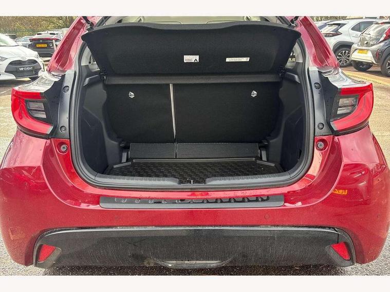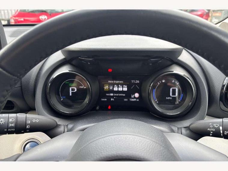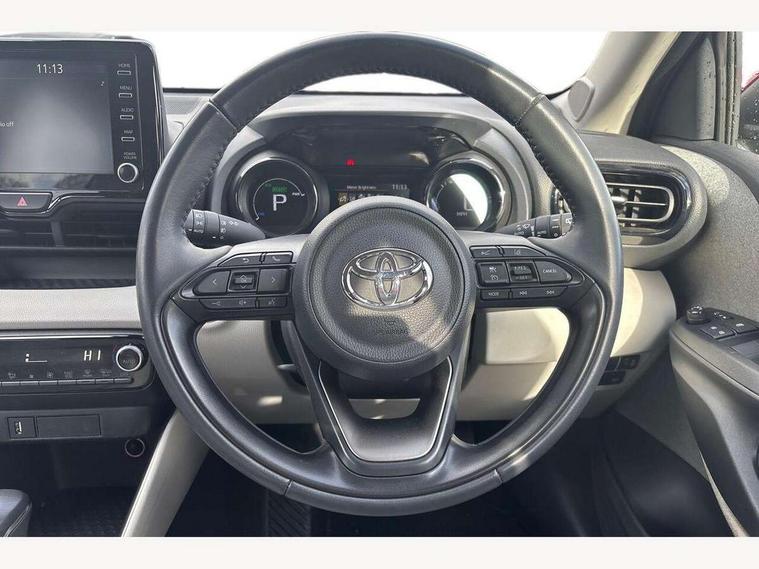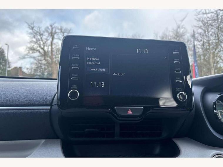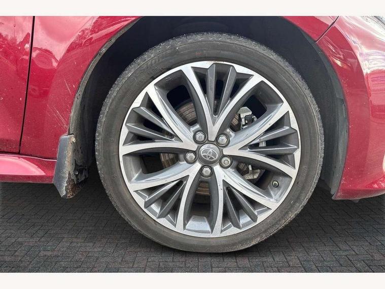 Adaptive cruise control, Adjustable speed limit with speed warning, Blind spot monitoring, Bluetooth connectivity, Colour binocular inspired displays with digital speedometer, E-call, Electric power steering, Front and rear parking sensors with intelligent clearance sonar and automatic braking, Hybrid energy display, Multi information display switches on steering wheel, Reversing camera, Smartphone integration with Apple CarPlay and Android auto, Vehicle Stability Control (VSC), 6 speakers, 8" Multimedia display touch screen, USB connection, Acoustic windscreen glass, Auto windscreen wipers, Automatic headlights, Automatically retractable door mirrors, Body coloured door mirrors, Electric adjustable heated door mirrors, Follow me home headlights, Front auto power windows with anti jam protection, Full LED rear lights, LED daytime running lights, LED front fog lights, LED Headlights, LED High mounted stop lamp, Painted front grille, Rear auto power windows with anti jam protection, Rear privacy glass, Rear spoiler, Satin lower front grille, Shark fin antenna, Turning signal integrated indicators in door mirrors, 3 adjustable rear headrests, 3 spoke leather steering wheel, 60/40 split folding rear seat, Active headrests, Adjustable boot height, Coat hooks in rear grab handles, Cup holders (2 front & door), Data Communication Module (DCM) connected services, Dual zone automatic air conditioning, Fabric seat with partial synthetic leather upholstery, Front armrest, Front sport seats, Glovebox, Height adjustable driver's seat, Height adjustable passenger seat, Isofix seat fixing, Leather gearshift, Map pockets on the backs of the front seats, Pollen filter, Shopping bag hooks, Tilt/telescopic steering column, 3 point seatbelts on all rear seats, ABS+EBD+Brake assist, Electronic parking brake, Emergency brake light system (EBS), Front passenger airbag on/off switch, Front seatbelt reminder, Hill start assist control (HAC), Rear child proof door locks, Rear seat belt reminder, Supplemental Restraint System (SRS) 8 airbags: Driver & passenger's airbags, dual side curtain airbags, side impact airbags, front centre airbag, Toyota Safety Sense 2, Precollison + Night time Pedestrian & Cyclist Detection, Lane Trace Assist, Auto High Beam, Intelligent ACC & Road Sign Assist, Tyre pressure warning system, Alarm/immobiliser, Keyless smart entry with push button start, Remote powered central double locking doors, Satin chrome interior styling, Soft touch instrument panel, Space saver spare wheel,