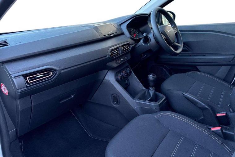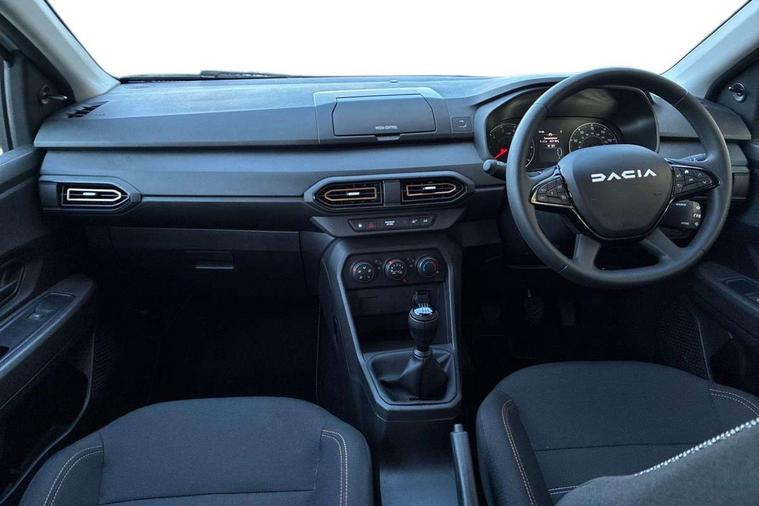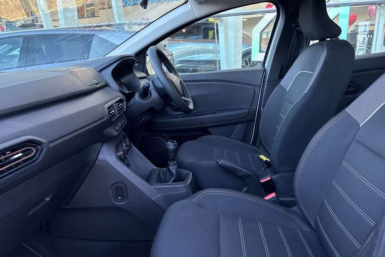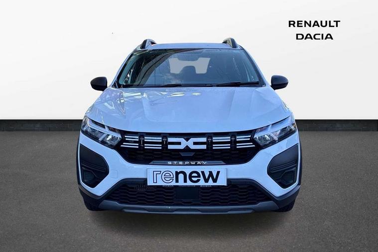 3.5" TFT instrument panel with on-board computer, Cruise control with speed limiter, eCall emergency call system, Eco mode, Electric power assisted steering, Rev counter, Stop/start system, Media Control - DAB Radio with display on instrument panel, Bluetooth, 2 Speakers, USB connection for data transfer and charging, USB socket, 3 speed windscreen wipers, Auto lighting, Black door handles, Black door mirrors, Black longitudinal roof bars, Black radiator grille with white inserts stepway inscription, Black stepway inscription on roof bars, Body coloured bumpers, Front electric windows, Heated rear window, High level third brake light, LED automatic daytime running lights, LED Y-shape Dacia signature lighting, Manually adjustable door mirrors, Rear manual windows, Rear side wing doors, Rear wash/wipe, Tinted windows, White Dacia inscription on tail gate, 1/3 to 2/3 split folding rear seats, 12 volt front socket, 3 height adjustable rear headrests, 3 seat rear bench, Black air vents, Black interior door handles, Fabric upholstery, Fixed smartphone holder on dashboard, Floor mats, Gear shift indicator, Height adjustable drivers seat with armrest, Height adjustable front headrests, Height/depth adjustable steering wheel, Isofix points for child seats in both outer rear seats, Manual air conditioning, Single front passenger seat, Steering wheel controls, 3x3 point rear seatbelts, ABS and Emergency brake assist, Automatic emergency braking system, Child locks on rear doors, Door open visual and audible warning, Driver airbag, EBD - Electronic brakeforce distribution, ESC (Electronic Stability Control), ESP + Hill Start Assist, Front curtain airbags, Front seatbelt pretensioners, Front side airbags, Height adjustable front seatbelts, Passenger airbag, Seatbelt reminder for driver and front passenger, Tyre pressure monitor, Automatic central locking, Immobiliser, Remote central locking, 16" Flex wheels with full wheel cap, Tyre inflation kit,