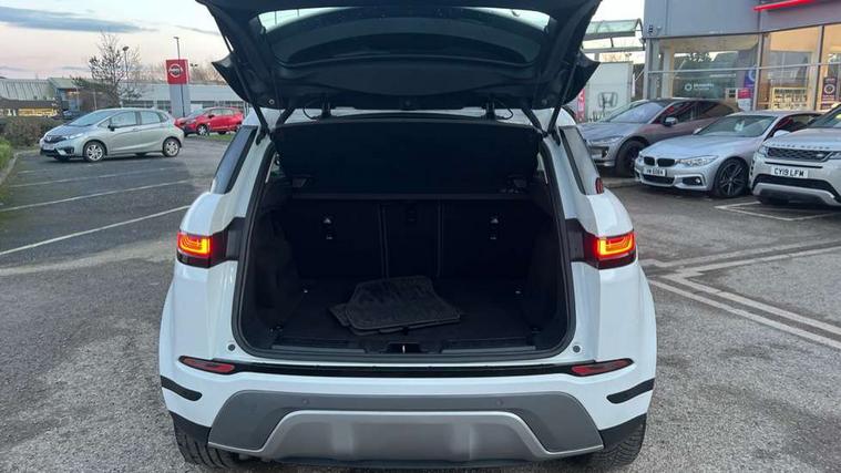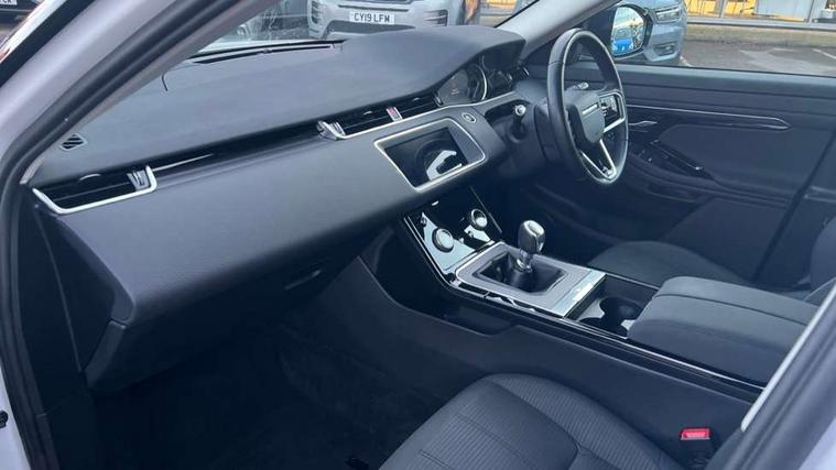 10" touch screen, Android Auto, Apple car play, Bluetooth connectivity, Brake pad wear indicator warning light, Cruise control + speed limiter, Driver condition monitor, Electronic power assisted steering (EPAS), Front and rear parking aid, InControl remote, Land Rover InControl apps, Lane keep assist, Push button starter, Voice control system, Passive suspension, Digital Audio Broadcast radio-DAB, Steering wheel mounted controls, Electric windows with one touch open/close and anti trap, Evoque badge, Flush deployable exterior door handles, Heated rear window with timer, Heated washer jets, Heated windscreen, Rain sensing windscreen wipers, Rear fog lights, Tailgate spoiler, 40:20:40 split folding rear seats with centre headrest and armrest, Ambient interior lighting, Isofix system on outer rear seats, Overhead lighting console, Overhead stowage for sunglasses, Passive front head restraints, Rear air vents, Rear centre headrest, Sunvisors with illuminated vanity mirrors, Twin sliding front centre armrest, 3 rear 3 point seatbelts, Anti-lock braking system (ABS), Customer configurable autolock, DSC - Dynamic Stability Control, Electronic brake force distribution, Electronic parking brake, Electronic traction control, Emergency braking, Front and rear seatbelt reminder, Hill launch assist, Power operated child locks, Roll stability control, Six airbags - Driver and passenger airbags/driver knee airbag/front side airbag and curtain airbags, Tyre pressure monitoring system, Alarm, Immobiliser, Intrusion sensor, Locking wheel nuts,
