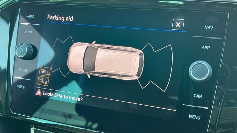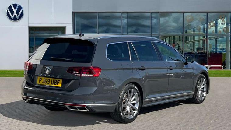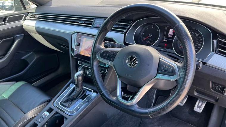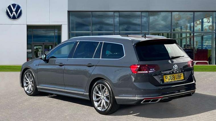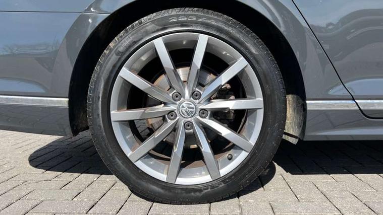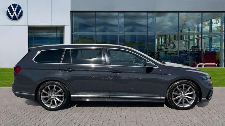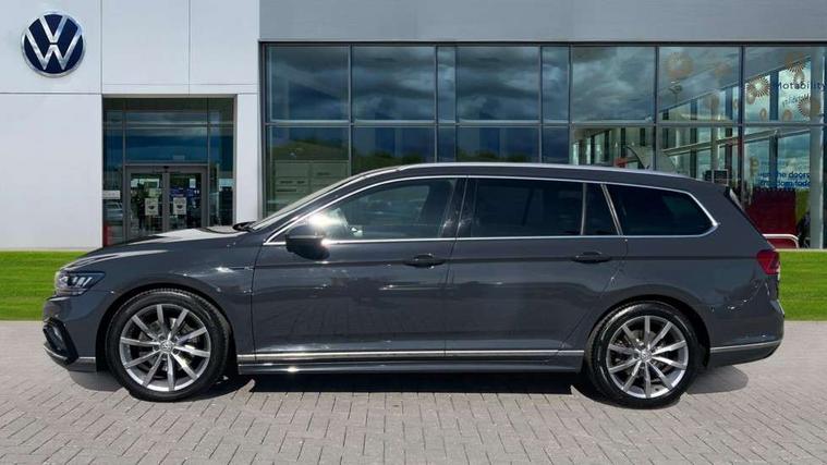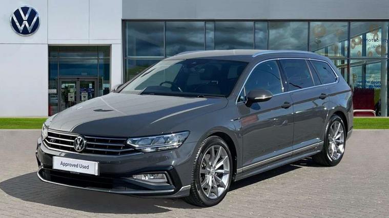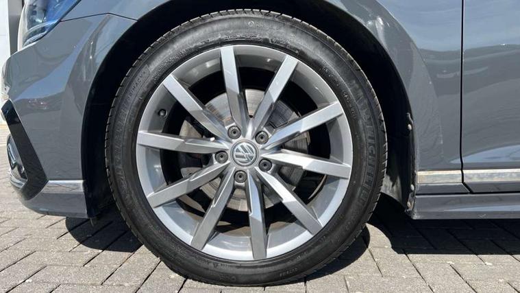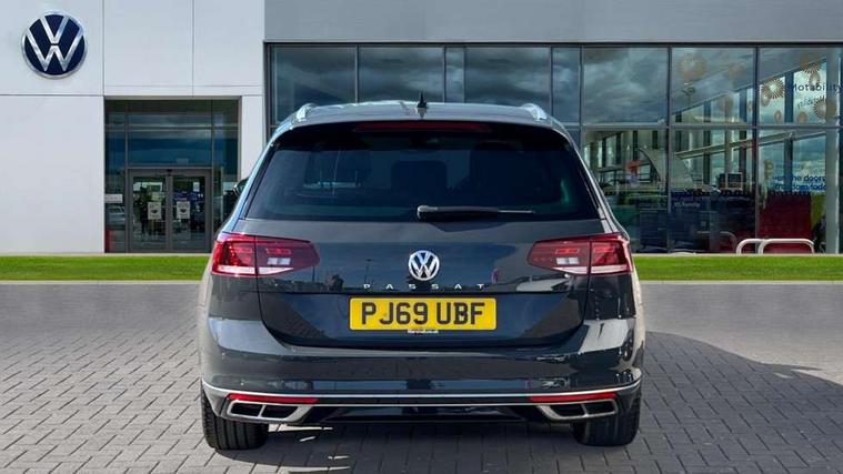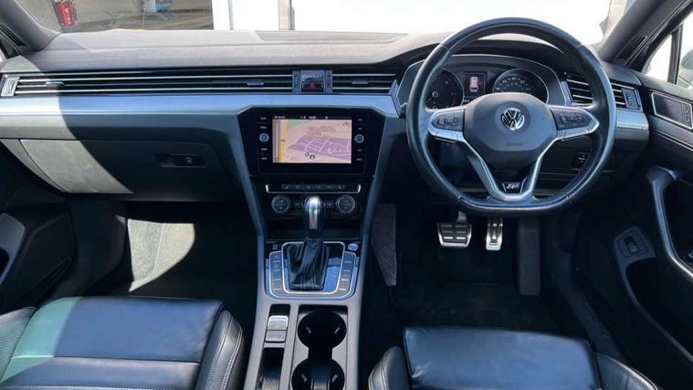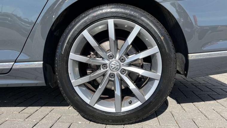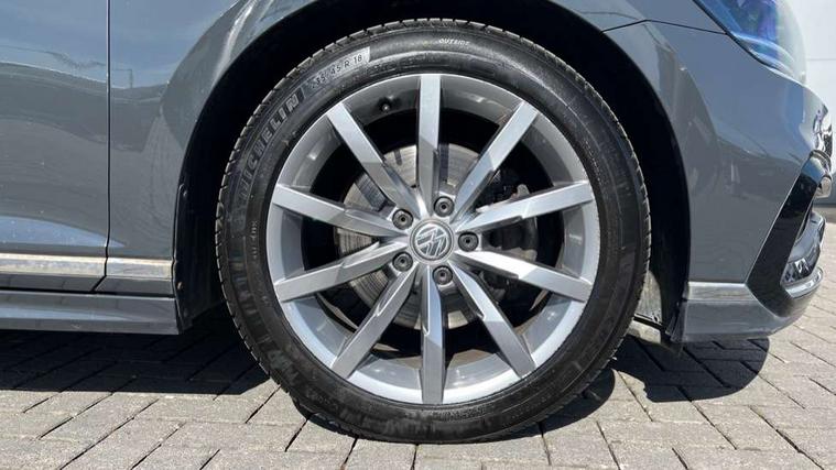 Adaptive cruise control including Front Assist, radar sensor controlled distance monitoring system, City emergency braking system, Driver alert system, Driver profile selection, Exterior temperature gauge with frost alarm, Lane assist, Low washer fluid warning light, Multifunction computer includes visual gear, One touch indicator turn signal, Proactive occupant protection, Security and service including e-call, Speed sensitive power steering, Speedo and rev counter, electronic odometer, trip, service interval display and fuel gauge, Start/Stop function, Traffic jam assist, Warning buzzer and light for front seatbelts unfastened, Wireless app connect, Battery regeneration during braking, Diesel particulate filter, Misfuel prevention device, Aerial for radio integrated into rear windscreen, DAB Digital radio receiver, Auto dimming interior rear view mirror, Automatic headlights with dusk sensor, Automatic leaving home and manual coming home lighting functions, Black radiator grille with chrome louvres, Body colour bumpers, Body colour door handles, Body coloured door mirrors with intergrated indicators, Chrome side window surrounds, Front and rear electric windows, Fully galvanised body, Gloss black finish on B pillar, Heated rear window, Heated windscreen washer jets, High level 3rd brake light, LED rear lights, LED rear number plate lights, Plastic load sill protection, Rain sensor, Rear tinted glass from B pillar backwards, approx 65% tinted, Rear window wash/wipe, Remote electrically adjustable and foldable heated door mirrors including automatic dimming function on drivers side door mirror puddle lights, Silver anodised roof rails, Warning lights for open tailgate and doors, White instrument lighting, 12V socket in front centre console, 12V socket in luggage compartment, 40:20:40 split folding rear seat backrests, Black roof lining, Carbon optic side bolsters, Climate control - 3 Zone electronic air conditioning with automatic air recirculation, Driver's door storage compartment for 1.0 litre bottle, Extending luggage compartment cover with convenience opening, stowable, Front and rear interior lighting with delay and dimming function, Front centre armrest with storage compartment and two rear air vents, Front cupholders x2 with covers, Front passenger storage compartment for 1.5 litre bottle, Front seats with embroidered R Line logo on backrest, Heated front seats, Height adjustable and removable variable boot floor, Height adjustable rear seat head restraints (x3), Height/reach adjust steering wheel, Illuminated vanity mirrors, Isofix child seat preparation, outer rear seats, Load lashing points x 4 in luggage compartment, Load through provision, Lockable, illuminated, cooled glovebox, Luggage compartment lighting, Nappa leather upholstery, Rear seat centre armrest with storage compartment, Stainless steel pedals in clutch, brake and accelerator, Storage compartment in rear doors, Storage compartment in roof console with cover, Unique R Line door sill protectors, Unique R Line front and rear carpet mats, Easy open package with full electric tailgate/ boot - Passat (Estate), R line styling pack - Passat (Estate), 3x3 point rear seatbelts, ABS (Anti locking brake system) includes BAS (Brake assist) and EBD (Electronic brake pressure distribution), Automatic post collision braking, Disc brakes front and rear, Door open warning reflectors, Driver/Front Passenger airbags, Drivers and front passengers safety optimised head restraints, longitudinal and height adjustable, Drivers knee airbag, Electronic parking brake with auto hold, First aid kit, Front airbags with deactivation switch, Front and rear passenger curtain airbags, Front side impact airbag, Height adjustable front 3 point seatbelts + pretensioners, Hill hold function, Pre crash preventive occupant protection, Rear seat side impact airbags, Rigid safety cell with front and rear crumple zones, Volkswagen roadside assistance, Warning light for rear seat belts if unfastened, Alarm with interior protection and deactivation via infotainment system, Electronic engine immobiliser, Chrome air vent and instrument surround, Unique R Line dark diamond flag decorative inserts in dash and door panels,