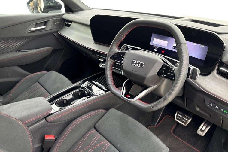 Adaptive cruise assist plus, Audi connect emergency call and service, Audi connect remote and controls, Audi drive select for suspension with damper control, Audi side assist with exit warning and rear cross traffic assist, Audi virtual cockpit plus - 11.9" display, Bluetooth interface, Camera based traffic sign recognition, Driver attention and fatigue monitor with driver monitoring, Emergency assist, Front cross traffic assist, Garage door opener, Head up Display, In-car-office assist, Panoramic curved display with 12.8" MMI navigation plus and MMI touch, Phonebox light with wireless charging, Progressive steering, Projection of a black ice warning, Smartphone interface includes wireless Apple carplay/Android Auto, Start/stop system, Surround view cameras, Swerve assist and turn assist, Traffic sign based speed limiter, Trained parking, Voice control system with natural language interaction, Petrol Particulate Filter, Sound actuator for interior drive sound, Suspension with damping control, 2 USB-C ports with charge and data functions, DAB digital radio module, SONOS premium sound system, USB interfaces with higher charging capacity, Acoustic glass for front door windows, Acoustic windscreen, Advanced dynamic light scenario of the coming home/leaving home function, Aluminium window trim, Audi Q3 lettering on the B-pillars, Auto dimming rear view mirror, Automatic dynamic headlight range control, Automatically dimming exterior mirrors with memory function, Contrasting finish in volcano grey, Cornering light, Digital matrix LED headlights, Digital OLED rear lights, Dipped beam, Dynamic indicators, Electrically folding, adjustable and heated door mirrors with integrated LED side indicators and kerb view function for passenger side, Full paint finish, Headlight cleaning system, High resolution main beam, Illuminated door sills with aluminium inserts at the front with S logo, Intersection light, Lane light with side assist and direction indicator, LED daytime running lights, LED third brake light, Loading sill protector in stainless steel, Manoeuvring light, Motorway light, Orientation light with lane departure warning, Position light, Privacy glass - dark tinted rear window, rear door and side windows, Projection light in the exterior mirrors - Projects a graphic element onto the ground, Q3 badging on the rear, Rain and light sensors, Rear side wing doors, Rear window, rear door windows and rear side windows in clear glass, Rear wiper, Solid paint, Sports bumpers, Turning light, 3 seat bench in 2nd row, 3 spoke heated flat top and bottomed leather multi function sport steering wheel with gear shift paddles and "S" badging, 3-zone deluxe automatic air conditioning, 4 way lumbar support for the front seats - electric with horizontal and vertical adjustment in four directions, Black cloth headlining, Electrically adjustable front seats with memory function for driver's side, Front and rear floor mats, Front and rear headrests, Front centre armrest, Heated front seats, Height and reach adjustable steering wheel, Interior storage compartment, Luggage compartment lid, electrically opening and closing, Microfibre upholstery with rhombus pattern and S emblem + front sports seats, Single front passenger seat, Stainless steel pedals, Steering wheel operating unit, gloss black, Storage compartment in front centre console, Ambient lighting package pro - Q3, Black styling pack with black door mirrors - Q3, Function pack - Q3, 3 point seat belts in front, with pretensioner and electric height adjustment, 3x3 point rear seatbelts, Convenience key with safelock, Downhill assist, Driver and front passenger airbag with passenger airbag deactivation, Electromechanical parking brake, Electronic stabilisation control including ABS, ASR and EDL, First aid kit with warning triangle and high visibility vests, Front and rear side airbags with head airbags and front interaction airbag, Front emergency brake assist, Hill hold assist, i - Size child seat mounting on the front passenger side and i - Size and top tether on the outer rear seats, Power operated child locks, Proactive occupant protection, front, side and rear, Rear side airbags, Red brake callipers, front and rear, Seatbelt monitoring, Tyre pressure loss indicator, Anti theft wheel bolts, Remote central locking, Thatcham approved category 1 anti theft alarm, Anthracite american whitewood natural inlay, Interior elements in dinamica microfibre, Interior trims in aluminium look, 19" 5 twin spoke peak design alloy wheels with gloss turned finish in metallic black, Tool kit and Jack, Tyre repair kit,