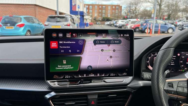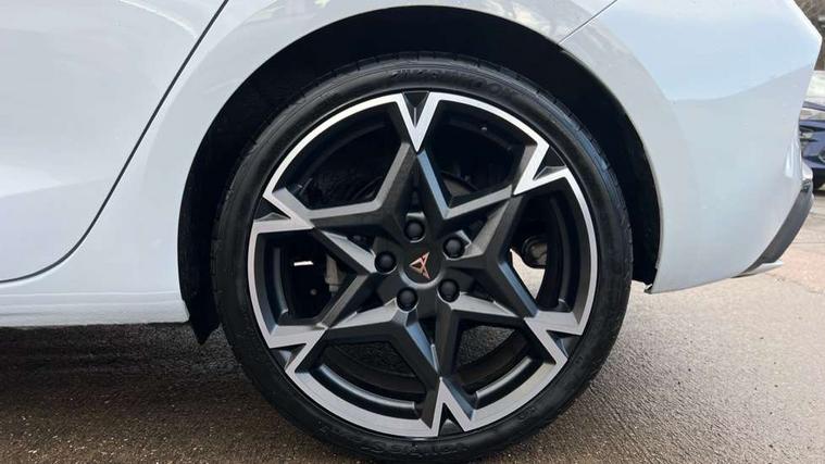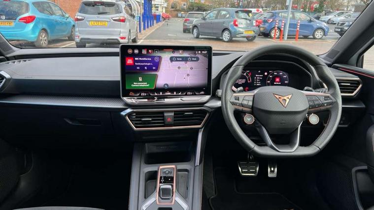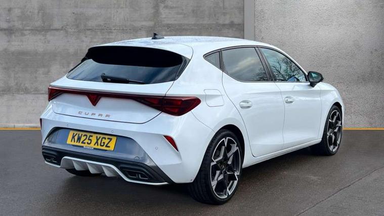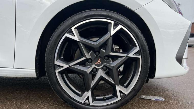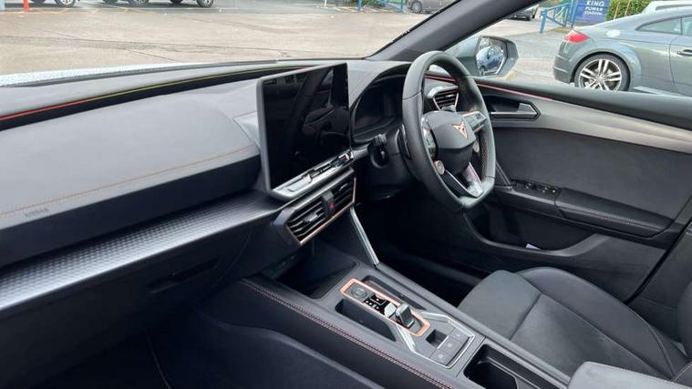 Adaptive cruise control with follow-to-stop and speed limiter, CUPRA drive profile selection with (Comfort/Sport/Individual), throttle response and gearshift mode, Digital cockpit, Dynamic road sign display, E-call, Front and rear parking sensors, Front assist with forward collision warning braking reaction to vehicles, pedestrians and cyclists, Full link smartphone integration with Mirror Link, wireless Apple CarPlay and wired Google Android Auto, Lane assist, Lockable tailgate, Rear view camera, RPM, trip computer, outside temp gauge, instrument light brightness, low fuel warning light, lights on reminder, gearshift indicator, Service interval indicator, Start/stop system with regenerative braking, Wireless phone charger, Auxiliary input socket, Auto dimming rear view mirror, Body colour door handles, Body coloured bumpers, Cupra sports bumpers, Dark tinted rear windows, Electric front/rear windows, Electrically adjustable, heated and folding door mirrors, High beam assist, LED front fog lamps with cornering function, LED headlights with dynamic turn signals, tail lights, rear fog lights with rear coast to coast lighting, LED rear fog lamp, Rain sensing wipers, Rear side wing doors, Rear wash/wipe, Separate daytime running light with automatic headlight control and coming home feature, Third brake light, Welcome light with logo projector in door mirrors, 12v power supply in centre console, 3 seat bench in 2nd row, 5 headrests, 60/40 split rear bench seat with armrest, Ambient lighting (glovebox, footwell, ambient lighting multicoloured), Black headlining, Cupra sports pedals, CUPRA Supersports, heated steering wheel with satellite buttons, Dinamica cloth upholstery, Electrically adjustable driver seat and lumbar support with memory function + manually adjustable passenger seat, Folding boot cover, Four x USB Type C ports (2 in front and 2 in rear), Front and rear reading lights X 4, Front centre armrest, Heated front seats, Height/reach adjust steering wheel, Illuminated interior front door sills, Interior wraparound lighting, ISOFIX points in outer rear seats with top tether anchorage points, Single front passenger seat, Storage pockets on rear of front seats, Sunvisors with illuminated mirror, Three zone climate control, Dynamic and comfort pack - Leon Cupra, Media system plus with 12.9" display + navigation pack - Leon Cupra, 3 point seatbelts on all rear seats, ABS, Brake control system - ESC and brake booster, Child proof door locks, Cupra black brake calipers, Driver and front passenger airbags with front passenger airbag de-activation, front side and curtain airbags, Electronic parking brake, Hill hold control, Rear disc brakes, Seat belt reminder for front and rear seats, Tiredness recognition system, Tyre pressure monitoring system, Anti theft alarm system with interior monitoring in cab, backup horn and towing protection, KESSY Advanced - Keyless start, keyless entry, Locking wheel bolts, Chrome and copper interior detailing, 19" Polar machined sport black and silver alloy wheel with 91Y tyres, Tool kit,