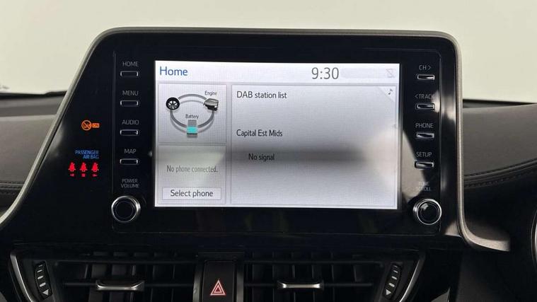 4.2" coloured TFT screen for multi-information display, Adaptive cruise control, Bluetooth connectivity, E-call, Electric power steering, Hybrid system indicator, Lane departure alert with steering control, Lane trace assist, Push button start, Push button tailgate release, Remote boot door release in cabin, Remote boot door release in key, Reversing camera, Road sign assist - RSA, Smart voice assist, Trip computer, Voice recognition, Vehicle Stability Control (VSC), 6 speakers, AM/FM radio, DAB Radio (Digital Audio Broadcasting), Toyota touch 2 multimedia system with 8" display, USB connector, Wi-fi connectivity, Anti-jam protection on power windows, Auto high beam, Auto up and down function on all power windows, Automatic headlights, Automatic headlights cut-off, Black and body coloured rear bumper, Black lower front grille, Black upper front grille, Body colour door handles, Body colour door mirrors, Body colour front spoiler lip, Body coloured front bumper, Boot door release with push button, Electric heated door mirrors, Follow me home headlights, Front and rear power windows, Front fog lights, Headlight cut off reminder, Honeycomb lower front grille, LED daytime running lights, LED High mounted stop light, LED rear brake lights, LED rear combination lights, Manual headlight levelling, Manually retractable door mirrors, Noise reduction layer on front windows and windscreen, Power adjustable door mirrors, Rear side wing doors, Rear spoiler, Rear tailgate, Rear window defogger, Rear window wiper, Reflective LED headlights, Shark fin antenna, UV-filter on driver and passenger windows, UV-filter on rear windows, 12v power outlet - front, 3 rear headrests, 3 seat bench in 2nd row, 3 spoke leather steering wheel, 60/40 split folding rear seat, Adjustable rear headrests, Adjustable speed limiter switch on steering wheel, Assist grips front and centre pillar, Audio and telephone switches on steering wheel, Black front door assist grips, Boot light, Chrome interior door handles, Cloth upholstery, Driver and front passenger personal light, Driver and front passenger Whiplash Injury Lessening seats, Dual zone automatic air conditioning, Floor mats, Front cupholders, Front head restraints, Front sports seats, Glovebox with internal light, Hard tonneau cover, Hooks for luggage holding net, Humidifying Nanoe air purifier, Illuminated entry system, Isofix attachments on outer rear seats, Leather gearshift, Light on driver sun visor, Light on passenger sun visor, Manual telescopic steering wheel, Manual tilt steering wheel, Manually adjustable lumbar support on driver seat, Manually height adjustable driver seat, Manually height adjustable front passenger seat, Manually reclining driver seat, Manually reclining front passenger seat, Manually sliding driver seat, Manually sliding front passenger seat, Microphone on front personal light, Mirror on driver sun visor, Mirror on passenger sun visor, Multimedia switches on steering wheel, Pollen filter, Shopping bag hooks, Single front passenger seat, Slow opening on lower glovebox, Voice recognition switch on steering wheel, 16 Disk front wheel brake, 3x3 point rear seatbelts, ABS+EBD+Brake assist, Electronic parking brake, Front and rear seatbelt reminder, Front passenger airbag on/off switch, Hill start assist control (HAC), Pre collision system with pedestrian detection, Pre-tensioners and force limiters, Rear door child safety locks, SRS Airbags - Driver + Front passenger, front side, front and rear curtain and driver's knee airbags, Toyota safety sense, Tyre pressure monitoring system, Tyre pressure warning system, Acoustic vehicle alert system (AVAS), Glass-breaking alarm sensors, Immobiliser, Intrusion alarm, Intrusion sensor, Motion sensor alarm, Power door locks, Power passenger window lock, Remote central locking, Black lower dashboard, Black upper dashboard, Grey deco line on upper dashboard, Matte black centre console, Tyre repair kit,