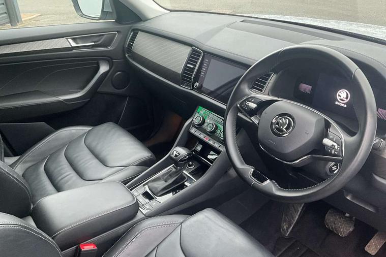 Bluetooth system, Digital voice enhancement, e call+, ECO Stop/start function, Exterior temperature indicator, Rear view camera, Smartlink wireless for apple carplay and wired for android auto, Speed limiter, Tailgate unlocking from outside, USB C Port x 2 in front centre console, Virtual Cockpit - 10.25" digital display, Wireless charging, 8 Speakers, DAB Digital radio, Aero front windscreen wipers with intermittent function, Aero rear window wiper, Auto dimming rear view mirror, Black wheel arch surrounds, Body colour bumpers, Body colour door mirrors and handles, Chrome front grille, Chrome roof rails with chrome window surround, Daytime running lights, Electric adjustable/heated/folding door mirrors, driver side auto dimming with boarding sports and memory function, Electric front and rear windows, Extended rear spoiler with finlets in gloss black, Front fog lights, Full LED matrix headlights with AFS (adaptive front light system), cornering function and AWL (all weather lighting system), Headlight washers, Heated rear window, Invisible tailpipe, LED rear fog light, LED third brake light in rear spoiler, Light assistant (coming/leaving home/tunnel light), Off-road style lower front bumper element, Privacy glass, Rain and light sensors, Rear LED lights (high functionality) with welcome effect and dynamic indicators, Rear side wing doors, Safety reflectors on front and rear doors, Window control switches with black trim, 12V socket in boot, 2 rails with 2 hooks, 2 seat bench in 3rd row, 3 seat bench in 2nd row, 4 foldable roof handles with rear coat hooks, 60:40 foldable rear seat with sliding adjustment and backrest angle adjustment, Bottle holders in door panel in the 1.5 litre front and 1 litre rear, Cargo storage compartments, Chrome headlight control button, Chrome interior door handles, Coat hooks on B pillar, Covered storage compartment on driver side, Decorative door sill covers, Front and rear door armrest with black adductor trim, Front centre armrest with storage compartment, cup holder and 12V socket, Front courtesy lights, Gear shift lever with chrome frame and black gloss insert, Grey stitching in front and rear armrests and door armrests + door inserts, Height adjustable front headrests, Illuminated and cooled glovebox, Illuminated luggage compartment, Isofix child seat fittings in outer rear seats with top tether, Manually adjustable steering column, Net programme in boot (1x horizontal Net, 2x vertical Nets), Overhead glasses storage compartment, Pollen filter, Rear centre armrest with cupholders, Single front passenger seat, Sliding trunk cover, Small Bags on the inner sides of the front backrests, Sunvisors with illuminated vanity mirrors, Three rear height adjustable headrests, Ticket holder on A Pillar, Umbrella in door panel, Variable boot floor, Auto door release and activation of warning lights in the event of an accident, Child locks on rear doors, Driver and front passenger airbag with knee airbag and front passenger airbag deactivation, Electronic parking brake with hill start assist, Emergency rear braking signal, ESC (incl. ABS+MSR+ASR+EDS+HBA+DSR+RBS+MKB), Front assist with autonomous emergency braking, Front side airbags with curtain airbags, Fuel cut off safety device, Height adjustable front 3 point seatbelts + pretensioners, Hill hold control, Rear disc brakes, Safety vest holder in door, Seat belt reminder for all seats, Three point rear seat belts, Two tone horn, Tyre pressure monitor, Alarm with interior monitoring and tilt sensor with safe function, Anti-theft wheel bolts, Immobiliser, Keyless entry and start system (KESSY), Remote central locking with 2 keys, Grey stitching in dashboard, Linear diamonds decorative inserts, Temporary spare wheel (space saver),