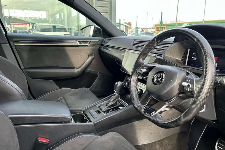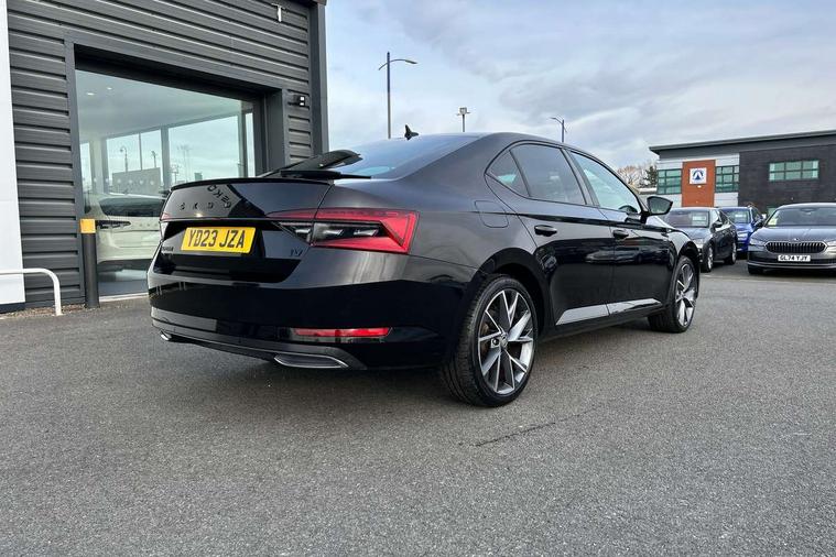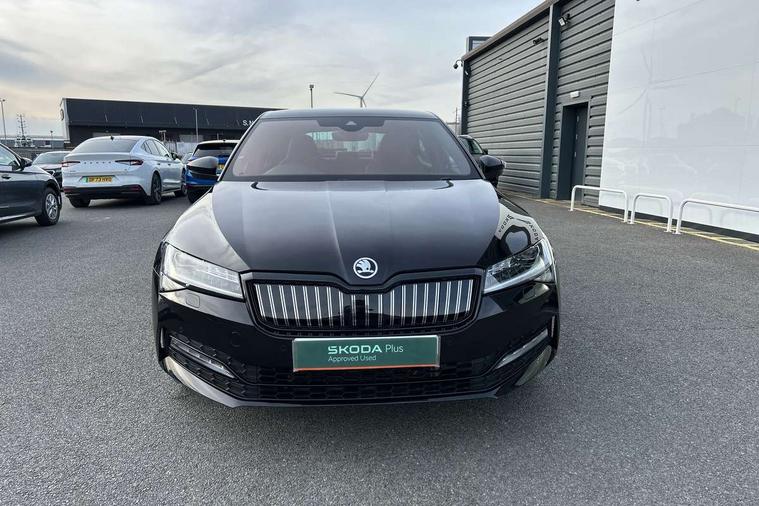 Bluetooth system, CareConnect and Emergency Call, Columbus HDD satellite 3D map navigation with 9.2" colour touch screen, web radio, integrated Wi-Fi, Driver fatigue sensor, E mode button for electric/hybrid drive, eCall emergency system, Front assist with pedestrian protection, Progressive dynamic steering, Stop/start engine system and energy recovery, Unique iV instrument panel, Virtual cockpit, Voice control system, Wireless smartlink apple carplay, SmartLink+ android auto and mirror link connectivity, Dynamic chassis control, E-noise generator for electric drive with noise emitted upto speed of 50km/h, Two charging cables 16amp for wallbox/chargepoints (mode 3) and 10amp mains charge cable (mode 2), XDS+, 2 USB ports, Bolero radio with 8" touchscreen display, DAB Digital radio, 3rd brake light, Aero front windscreen wipers with intermittent function, Auto dimming rear view mirror, Black rear badge, Body colour door handles, Cornering front fog lights, Electrically adjustable heated and folding door mirrors with memory function, Front and rear electric windows, Full matrix LED headlights with AFS LED DRL integrated with headlight washer LED rear lights(High function), dynamic indicators and lighting animation, Gloss black exterior door mirrors with sports styling including front grill, side strip and window surrounds, Gloss black grille surround with gloss black rib elements, Gloss black rear spoiler, Gloss black strip between rear lights, Light assistant (coming/leaving home/tunnel light), Privacy glass, Rain sensor, Rear exhaust diffuser styling elements, Rear side wing doors, Sport Line badging, Unique front grille with chrome-plated elements and charging socket cover, Unique iV badge on tailgate, 12v power point in centre console, 3 seat bench in 2nd row, Black roof headlining, Black textile floor mats, Carbon optic interior elements, Front and rear footwell illumination, Front armrest with storage box, Height adjustable front and rear head restraints, Ice scraper, Illuminated and cooled glovebox, Interior lights with control switches, Isofix child seat fittings on outer rear seats, LED front and rear reading lights, Microsuede/leather upholstery with silver diamond stitching sports seats, One umbrella compartments in driver door with one umbrella in drivers door, Overhead glasses storage compartment, Rear centre armrest with cupholders, Removable parcel shelf, Single front passenger seat, Split folding rear seats, Sport button for hybrid drive delivering maximum system performance, Storage compartment for charging cables under the luggage compartment mat, Storage compartment with cover in luggage compartment side panels, Ticket holder on A Pillar, LED package plus - Superb, 3 rear seatbelts, 7 airbags - Front, front side, curtain, driver's knee airbag with front passenger deactivation switch, Driver and passenger seatbelts with warning light, Electronic parking brake, ESC including ABS, EBV, MSR, ASR, EDS, HBA, DSR, RBS, CBC, multi-collision brake (MKB) and Auto hold, Power operated child lock in rear doors, Tyre pressure monitor, Alarm with interior monitoring tilt sensor and back up horn, Electronic engine immobiliser, Keyless entry and start/stop, Remote central locking with SAFE system, Third remote key, Unique decorative door sills front and rear, Tyre repair kit,