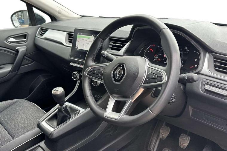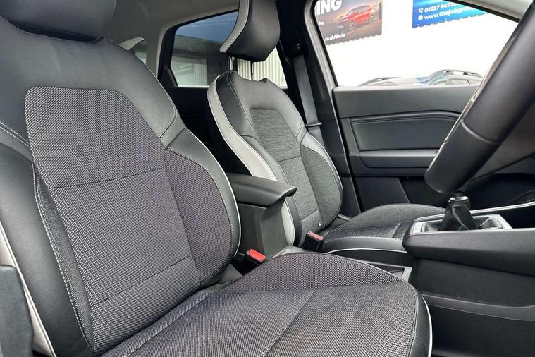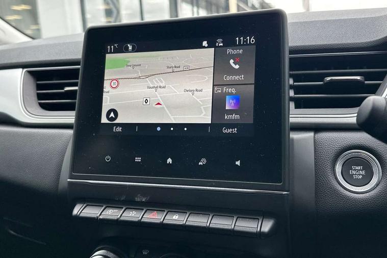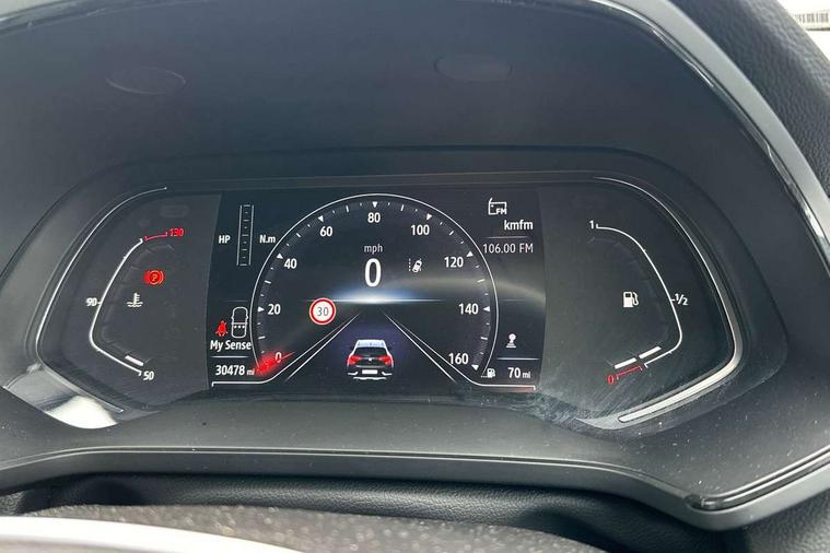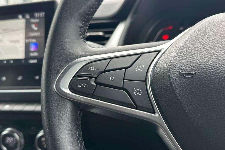 7" TFT Driver information display, Cruise control + speed limiter, EasyLink 7" touchscreen with navigation, google search and traffic information, Eco mode, Front and rear parking distance sensors, Gear change indicator, Lane departure warning system, Lane keep assist, Multisense with 3 driving modes + 8 ambient lighting colours, Rear view camera, Renault automatic emergency assist, Smartphone integration compatible with Apple CarPlay and Android Auto, Traffic sign recognition with over speed prevention, Trip computer, Variable assistance power steering, Wireless phone charger, DAB Radio with Bluetooth and USB, 2 reverse gear LED lamps and 1 rear LED fog lamp in the bumper, Auto dimming rear view mirror, Automatic front wipers with rain sensors, Automatic headlights, Automatic high/low beam, Black side door protection with chrome effect, Body colour door handles, Body coloured bumpers, Body coloured door mirrors, C Shaped LED front and rear lighting signatures with 3D effect on the rear lights, Chrome around front air deflectors, on front wing deco element and window lining, Day time running light, Drivers one touch window with anti-pinch feature, Extra tinted glass in rear windows and tailgate, Front and rear electric windows, Front grille with chrome upper trim, Full LED headlights, Grey front and rear skid plate, LED high level brake lights, LED rear fog lights, LED turn indicators on door mirrors, Longitudinal roof bars, Rear side wing doors, Rear wiper, Shark fin antenna, 12V Accessory socket, 60/40 split and fixed base rear seat bench, Automatic climate control with one touch demist function and air quality regulator, Central rear LED rooflight with 3 reading lights, Front head restraints, Glovebox, Heating system with pollen filter, Height adjustable driver's seat, Height adjustable passenger seat, Height/reach adjust steering wheel, ISOFIX child seat fixing points on rear outermost seats, LED front roof lights, Middle console with armrest and storage, Rear air vents, Rear head restraints, Single front passenger seat, Sliding rear bench, Synthetic leather steering wheel, Synthetic leather/cloth upholstery, 3 rear seatbelts, ABS+EBA, AEBS - active emergency braking system, Distance warning alert, Driver and front passenger and 3 rear passengers seatbelt reminder, Driver and front passenger, side, head and curtain airbags, Driver height adjustable seat belt, Electric parking brake with auto hold function, Electronic stability control, Front dash warning indicator in case of heavy braking, Front driver and passenger side airbag deactivation, Hill start assist, Manual passenger airbag deactivation function, Rear door and window child locking function for rear door, Tyre pressure warning light, Anti drill door locks and locking fuel cap, Central door locking, Deadlocking system, Hands free keycard with push button and start/stop function, RAID (Renault Anti-Intruder Device) automatic door locking, Black soft touch dashboard, 18" Pasadena diamond cut alloy wheels with grey inserts,
