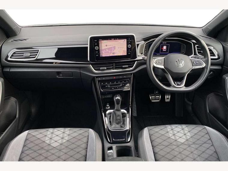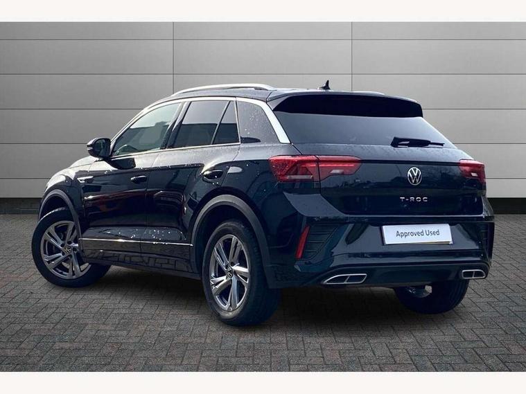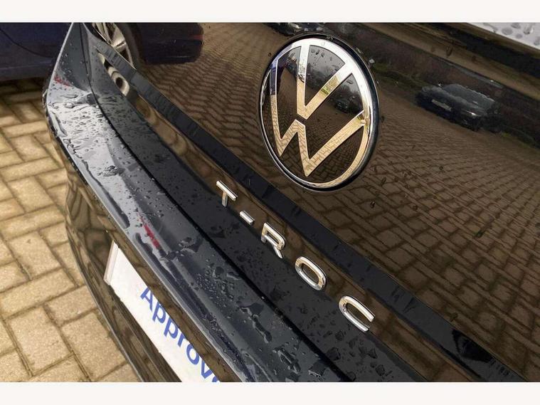 10.25" Digital cockpit pro, Advanced driver attention and drowsiness monitor, Bluetooth mobile phone interface, Emergency call service, Lane keeping system Lane Assist, Modified key software - reduce switch off time for key status change to Long no motion, Online services, Park assist including front and rear parking sensors, Service interval indicator, Tailgate/trunk lid release from outside, Think blue trainer driver tips and journey analysis, Warning sound and light for front seatbelts unfastened, Wireless app connect, Battery regeneration during braking, Start/stop function with battery regeneration, Diversity antenna for FM reception, Music playback - MP3, WMA and AAC files, Premium USB cable in choice of either Apple or Android smartphone compatibility, SD card slot, Simultaneous pairing of 2 compatible mobile devices, Title and cover art display, We Connect and We Connect Plus functionality, 3rd brake light, Auto dimming interior rear view mirror, Automatic hazard lights activation under emergency braking, Automatic headlight control with LED separate daytime running lights with coming/leaving home function, Electrically adjustable and heated door mirrors, Extended roof spoiler, Exterior mirrors aspherical on driver side, convex on front passenger side, External USB type C socket and charging sockets, Front windscreen wiper with intermittent wipe and 4 position delay, Heated rear window, LED rear combination lamps, LED rear number plate lights, Power windows with comfort operation and circuit breaker, R-Line design body coloured bumpers, Rain sensor, Rear exhaust tailpipe, Rear fog light on one side and reversing lights on both sides, Rear side wing doors, Rear wash/wipe with intermittent wipe setting, Remote electrically foldable door mirrors, puddle lights and reverse activated passenger's door mirror, 12V power socket in centre console, 3 rear head restraints, 3 seat bench in 2nd row, 4 load lashing points in luggage compartment, Air care climatronic air conditoning system with active combination filter and 2-zone temperature control, Black roof lining, Chrome plated radiator grille inserts, air vent surrounds and light switch surrounds, Door and side trim panel with leatherette insert, Front + rear carpet mats, Front centre armrest, Front cupholders x 2, Front footwell illumination, Front reading light, Front scuff plates with R Line logo, Front seat back storage pockets, Glove compartment door with light, Instrument lighting, white adjustable panel illumination, Interior ambient lighting and surround lighting, Interior light delay, Isofix child seat preparation, Leather gearshift handle, Load-through provision with cup holder when folded down ('Unsplit rear seat bench, split folding backrest, with centre armrest), Luggage compartment lighting, Single front passenger seat, Stainless steel pedals, Storage compartment in left and right luggage area, Storage compartment in rear doors, Storage compartments in driver and front passenger doors, Sunvisors with illuminated vanity mirrors, Variable boot floor, height adjustable and removable, Driver assistance pack without proactive passenger protection - T-Roc, 3 point height adj front seatbelts + pretensioners, 3 point seatbelts in outer rear with ECE label, ABS, Child locks on rear doors, City emergency braking and pedestrian monitoring, Driver and front passenger airbag with front passenger airbag deactivation, Driver and front passenger safety-optimised head restraints, Drivers seatbelt reminder, Electronic parking brake, Electronic Stability Control (ESC) inc EDL (Electronic Differential Lock) and ASR (Traction Control), Front and rear passengers curtain airbag system including front side airbags, Hill start assist, Predictive pedestrian protection, Rear disc brakes, Two tone horn, Tyre pressure loss indicator, Volkswagen roadside assistance, Anti-theft alarm system with interior monitoring, backup horn, and towing protection, Remote central locking with SAFELOCK, radio remote control with 2 remote control folding keys, Trims for alloy wheels,