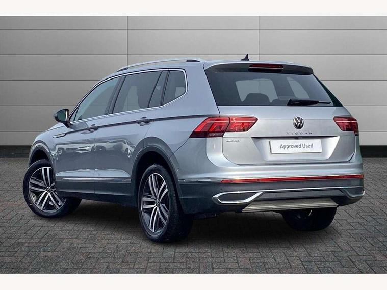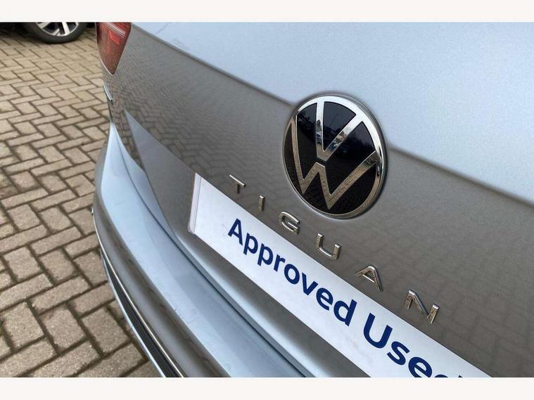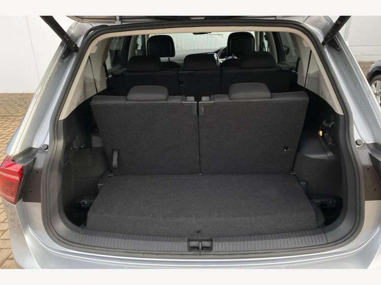 Adaptive cruise control, App-Connect, Digital cockpit pro, Driver alert system, Driver profile selection, Dynamic road sign display, eCall emergency call service, Electric boot lid, Lane change system side assist and rear traffic alert, Lane keeping system Lane Assist, Mobile phone interface comfort with inductive charging feature, Multifunction front facing camera, Power assisted speed sensitive steering, Speedo and rev counter, electronic odometer, trip, service interval display and exterior temperature gauge, Front wheel drive, Start-stop system with battery regeneration (recuperation - energy recovery during braking), 2 USB-C ports in the front, 1 USB-C charging socket on the center console in the rear, 8 Speakers, DAB Digital radio, Diversity antenna for FM reception, Radio, Auto dimming interior rear view mirror, Automatic headlight control system, Body coloured comfort bumpers, Chrome mouldings on side window, Coming/leaving home lighting function, Exterior badge deletion, Exterior mirror housings painted in silver, Heated windscreen washer jets, IQ light adv HBC, dyn light assist LED matrix headlamps, DH range, dark red LED rear combo light, poor weather, CL, LED headlamp with LED DRL and DCL - PXC, Privacy glass, Rain sensor, Rear fog light, Rear side wing doors, Rear wiper, Silver roof rails, Third brake light, Tilting and sliding panoramic sunroof, 12-volt outlet in centre console rear and luggage compartment, 12V socket in centre console, 3 head restraints in rear, 3 individual folding 2nd row seats, 3rd row 2 individual seats, Air Care Climatronic 3 zone automatic climate control with enhanced air filter and controls in the rear, Door and side trim panel, Drawers under front seats, Driver and front passenger seat height adjustment, Foldable front passenger seat backrest, Front + rear carpet mats, Front centre armrest, Front footwell illumination, Heated front seats, Illuminated scuff plates, ISOFIX anchorage points for mounting 2 child seats on rear seats and i-Size child seats, Leather gearshift handle, Leather-wrapped heated multi-function steering wheel with paddle shift, LED interior light with switch off delay/dimmer and 2 front/rear LED reading lights, Sun visors with illuminated vanity mirrors, Ambience pack - Tiguan Allspace, Driver assistance package - Tiguan Allspace, Easy open and close pack with safelock - Tiguan Allspace, Park assist pack - Tiguan Allspace, 3 point seat belt for centre rear seat, 3 rear three point seatbelts, ABS+EBD+Brake assist, Driver and front passenger safety-optimised head restraints, Driver's and front passenger's airbag with front passenger's airbag deactivation switch, Electronic parking brake, Electronic Stability Control (ESC) inc EDL (Electronic Differential Lock) and ASR (Traction Control), Height adjustable front 3 point seatbelts + pretensioners, Manual rear child locks, Pedestrian monitoring, PreCrash preventive occupant protection Front and rear, Rear disc brakes, Side airbag in front and rear with curtain airbag, Two tone horn, Warning buzzer for seatbelts if unfastened, Anti theft alarm system with interior monitoring, backup horn and towing protection, Anti-theft wheel bolts, Electronic steering lock, Remote central locking with 2 remote folding keys, Chequered flag tinanium decorative inserts,