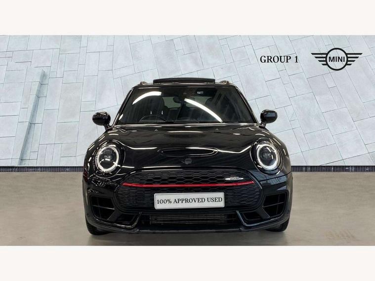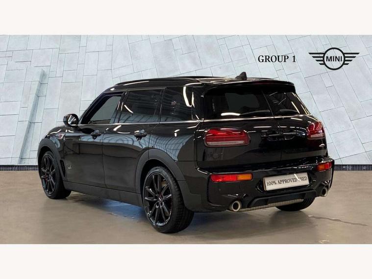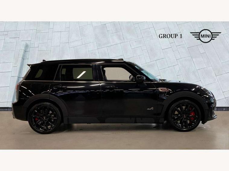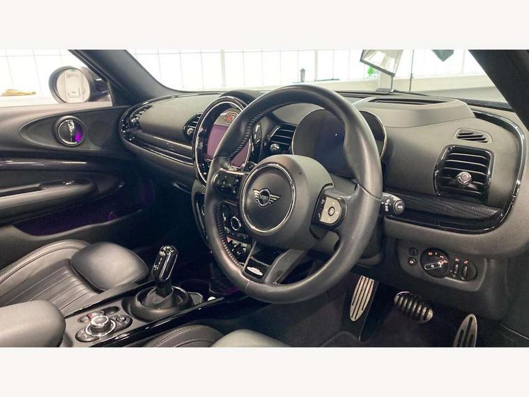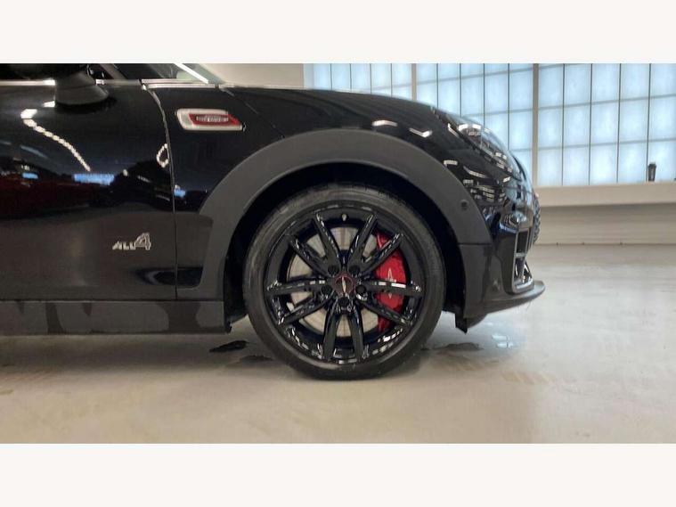 Active Guard incl speed limiting and lane departure functions with auto steering, and front collision warning with brake intervention, Automatic start/stop function with brake energy recuperation, Car sharing preparation, Compatible mobile phone bluetooth with audio streaming, Electro-mechanical speed dependant steering assistance, Instrument cluster, Mini E-call, MINI TeleServices, On board computer, 8 Speed steptronic sport transmission including electronic gear shifter and steering wheel paddles, All Wheel Drive (AWD), Double Vanos system, Fully variable valve control, High precision injection, Performance Control, 6 speakers, FM tuner and DAB digital radio, Bonnet scoop, Chrome fuel filler cap, Dynamic brake lights, Electric windows, Heated rear window, Heated windscreen washer jets, John Cooper Works - aerodynamic kit (front and rear apron, spoiler), front and rear sport bumpers and part-painted side sills with door sill finishers, John Cooper Works rear spoiler, LED rear light with union jack design, Metal door sill strips with Cooper S imprint, Model logo on rear doors, Piano black exterior, Radiator grille piano black border with honeycomb structure in matt black with John Cooper Works logo above an individual grille struct in chilli red, Rain sensor with auto headlights, Rear fog lights, Rear window wiper, Side scuttle with MINI John Cooper Works logo in high gloss black with red border, Split rear doors, Sun/heat protection glass, Twin exhaust tailpipe, White indicator lenses, 12V Accessory socket in centre console, 360L luggage compartment capacity, 4 lashing eyes in luggage compartment, 60/40 split folding rear seat, Anthracite headlining with grab handles and clothes hooks, Chrome interior highlights, Cupholders, English handbook, Floor mats, Glove compartment, Height and length steering column adjustment, Interior lighting with 12 basic colours selectable via toggle switch in roof, Isofix rear child seat preparation, John Cooper Works leather gearshift lever and handbrake gaiter, John Cooper Works sports seat with integrated headrest, adjustable thigh support and John Cooper Works logo, LED reading lights, vanity mirror lights, front foot well light and spotlight on front seats, Multifunction steering wheel, Nappa leather steering wheel with JCW badge, Rubberised stainless steel pedals, Storage compartments in doors, Sunvisors with vanity mirrors, Toolkit, Comfort plus pack with Park assist - Mini Clubman, Excitement pack - Clubman, Extended interior lighting pack - Mini Clubman, Navigation pack - Clubman, 17" front sport brake with 4 piston fixed calliper, 2 tone horn, 3 point seatbelts on all seats, 6 Airbags - front, side, head and seat belt tensioners, Anti-lock braking system (ABS), DSC - Dynamic Stability Control, Electronic handbrake, Front and rear disc brakes, Red brake callipers with John Cooper Works logo, Torsen mechanical limited slip differential, Tyre pressure monitoring system, Alarm system with tilt sensor, monitoring doors, bonnet interior and tailgate, Auto drive away locking, Comfort access system, Deadlocking function, Electronic vehicle immobiliser, Locking wheel bolts, Start/stop toggle with keyless go,