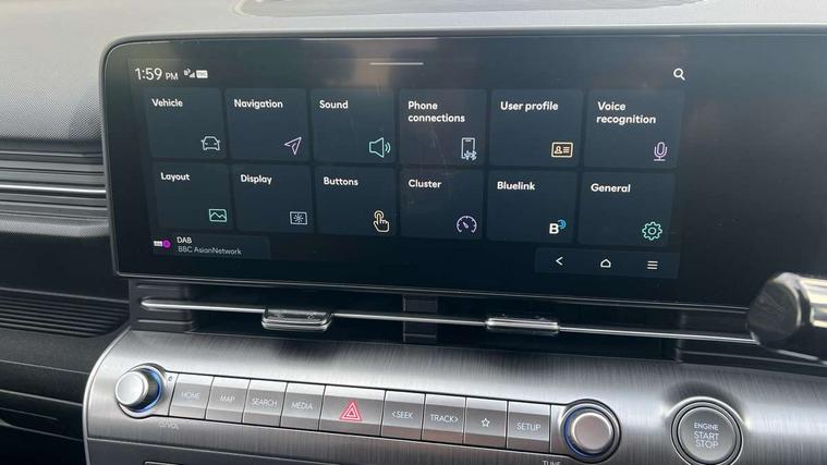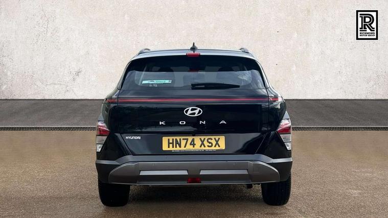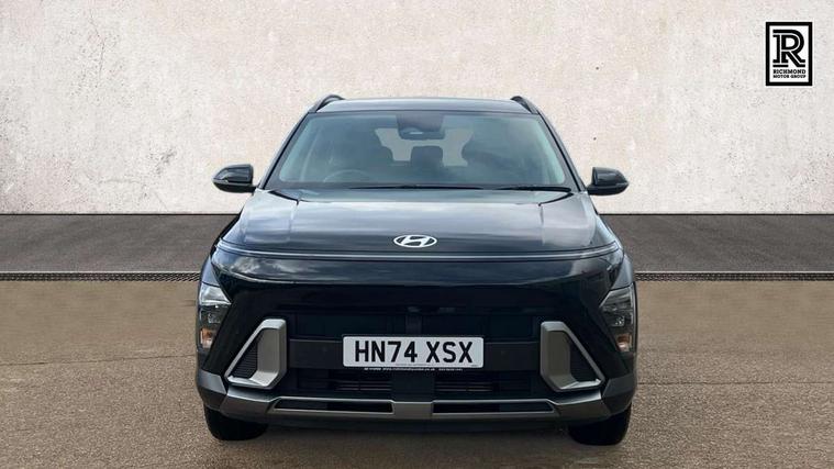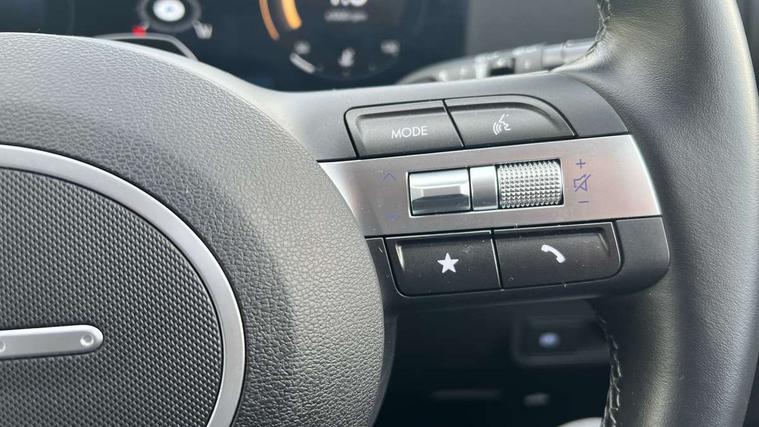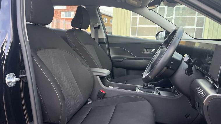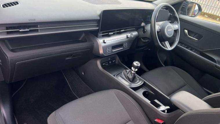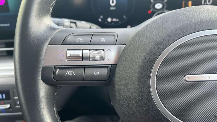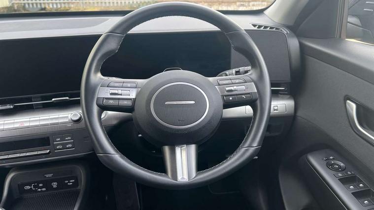 12.25" digital instrument cluster, 12.3" touchscreen centre console display satellite navigation with bluelink, live services and mapcare, Bluetooth connectivity with voice recognition, Cruise control, Driver status monitor (DSM), Driver supervision instrument cluster with 12.3" LCD display, eCall emergency call system, Feature on demand - Enabled, Forward collision avoidance assist (FCA 1.5) - Car, pededstrian, cycle and junction turning, Front parking sensor, Intelligent speed limit assist, Lane follow assist, Lane keep assist, Leading vehicle departure alert (LVDA), Parking system with rear camera and guidance system, PAS, Rear parking sensor, Rear view camera with dynamic guidelines, Roadside assistance, Wireless Smartphone Integration includes Apple CarPlay and Android auto, 2 front USB C and 2 rear USB C charging points, DAB Digital radio, Speakers - Front, rear and tweeters, Steering wheel audio, phone and cruise controls, Auto dimming rear view mirror, Automatic headlights with dusk sensor, Automatic windscreen wipers with rain sensor, Black painted wheel arch inserts, Body colour exterior door handles, Body coloured door mirrors, Door mirror LED indicator lights, Electric front windows with anti-trap mechanism and one touch control, Electric rear windows, Electrically adjustable and heated door mirrors, Full LED MFR headlights, LED daytime running lights, LED taillights, LED upper and lower rear lights, Power folding door mirrors, Rear roof spoiler with integrated LED brake light, Rear side wing doors, Rear skid plate - silver, Rear wiper, Roof rails, Tinted glass in front and rear doors, Windscreen auto defog function, 12V power outlet in front console, 2 zone climate control, 3 seat bench in 2nd row, Adjustable head restraints, Cloth upholstery, Driver and passenger front seat pockets, Driver's seat lumbar support, Driver/passenger manual seat height adjustment, Driver/passenger sunvisors and illuminated vanity mirrors, Floor mats, Height/reach adjustable steering column, Leather steering wheel, Leather wrapped steering wheel and gear knob, LED centre interior light, LED front interior light, Luggage compartment LED lighting, Luggage shelf, Metal paint effect interior door handles, Rear centre armrest with cupholders, Single front passenger seat, Vertical adjustment rear head restraints, Trailer wiring package - Kona, Airbag - front, front side, curtain and centre front airbag, Anti-lock brake system (ABS), Childproof rear door locks, Downhill brake control, Electric parking brake, Electronic stability control, Fixed 3 point for second row centre passenger seatbelt, Hill start assist control (HAC), Rear seat alert, Tyre pressure monitoring system, Alarm/immobiliser, Rear occupant alert, Remote central locking, Smart key with keyless entry and start/stop button, Five year annual vehicle health checks, 17" Alloy wheels, Temporary mobility kit (TMK),