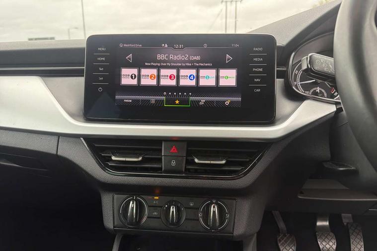Amundsen satellite navigation with 9.2" glass colour touchscreen display, web radio, voice control and traffic sign recognition, Bluetooth system, E-call, Front assist system, Gesture control, PAS, Service indicator, Speed limiter, Wireless SmartLink for apple car play, android auto and mirrorlink, 8 Speakers, Auxiliary input socket, DAB Digital radio, Body colour bumpers, Body colour door mirrors and handles, Chrome grille surround, Dimming rear view mirror with black surround, Electrically adjustable and heated door mirrors, Front and rear electric windows, Headlight range control, Heated rear window, LED rear lights - low functionality, LED third brake light, Light sensors, Privacy glass, Rain sensor, Rear fog lights, Rear side wing doors, Rear wiper, 12V Accessory socket in centre console, 3 seat bench in 2nd row, Chrome inner door handles, Cloth upholstery, Front head restraints, Glove compartment with illumination, Height adjustable driver and front passenger seats - manual, Ice scraper, Isofix child seat fittings on outer rear seats, ISOFIX on front passenger seat, Manual lumbar support for front seats, Rake/reach adjustable steering wheel, Reading lights, Single front passenger seat, Sun visors with illumination on front passenger, Textile floor mats, Third rear headrest, Top tether for front passenger seat, Umbrella in driver's door, 3x3 point rear seatbelts, Airbags - driver and front passenger, ESP, Front passenger airbag deactivation switch, Front side airbags with curtain airbags, Hill hold control, Manual parking brake, Manual rear child locks, One tone horn, Rear disc brakes, Seatbelt reminder for driver an co-driver, Traction control, Tyre pressure monitor, Anti-theft alarm system with interior monitoring, backup horn, towing protection and remote central locking with SAFE system, Anti-theft wheel bolts, Electronic engine immobilizer, Silver haptic decorative insert on the dashboard with hot stamping in glossy black,