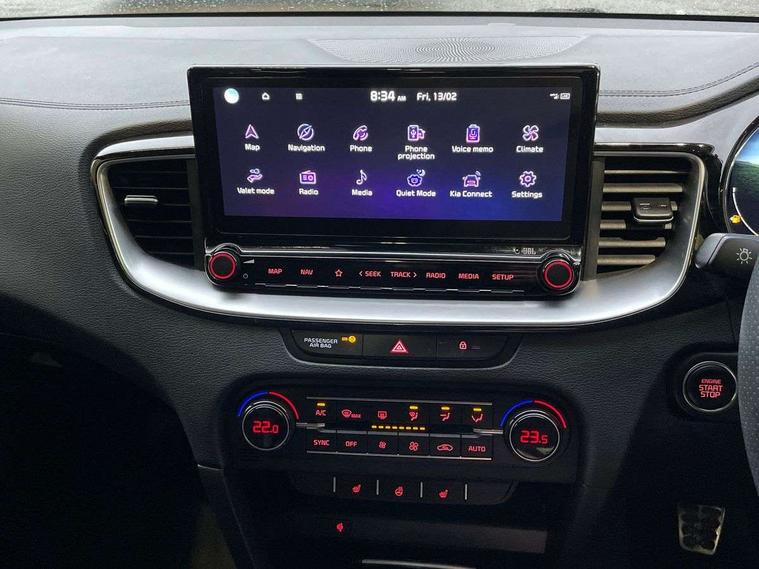 10.25" touchscreen satellite navigation with telematics, 12.3" TFT supervision cluster display, Android auto with voice control, Apple car play with voice control, Blind spot collision warning, Bluetooth with Voice Recognition & Music Streaming, Cruise control + speed limiter, Driver attention warning, Emergency call service, Forward Collision-Avoidance Assist (FCA) - City/Pedestrian/Cyclist, Intelligent speed limit warning, Lane Following Assist (LFA), Lane keep assist, Motor driven power steering, Rear cross-collision assist, Reversing camera with dynamic guide lines, Smart park assist system (SPAS) with parallel/perpendicular/reverse with front/rear parking sensors, Smart power tailgate, Trip computer, Wireless Mobile Phone Charger, Intelligent Stop and Go, 1x Rear USB-C, 2x Front USB (1x USB-C, 1x USB-A), DAB Radio with MP3, JBL Premium sound system with 8 speakers, Rear console USB C-type charge port, Steering wheel mounted controls, All-round Electric Windows with Auto Up & Down Function, Auto dimming rear view mirror, Automatic defog system, Automatic headlights, Black side sill mouldings with body coloured inserts, Black wheel arch trim, Body colour bumpers, Body colour exterior door handles, Body colour rear spoiler, Body coloured and dark chrome rear skid plate, Dark chrome window surround, Electrically folding, adjustable and heated door mirrors with integrated LED indicator lights, Gloss black shark fin antenna, GT-Line body kit, Heated rear window with timer, High beam assist, High gloss black door mirrors with matt black lower housing, High gloss black roof rails, High glossy black and dark chrome radiator grille, LED Bi-Function projection headlights, LED daytime running lights, LED front fog lights, LED High-mounted Brake Light, LED honeycomb rear light, LED rear fog light, Panoramic sunroof with tilt/slide function and automatic electric roll blinds, Privacy glass - Rear windows and tailgate, Rain sensing front wipers, Rear side wing doors, Rear wiper, Smaller XCeed badge on rear left hand tailgate, Tinted glass, Variable front intermittent wipers, Wide view drivers door mirror, Windscreen Washer Level Warning, 3 seat bench in 2nd row, 40:20:40 split folding rear bench seat, All-round height adjustable headrests, Aluminium pedals, Centre Console with Storage Box and Sliding Armrest, Chrome interior door handles, Cupholders in centre console, Driver + front passenger electric lumbar support, Driver and passenger front seat pockets, Driver seat memory function, Driver seat power height adjuster, Dual zone automatic air conditioning, Faux leather door trim, Front and luggage area 12V power sockets, Front and rear door storage, Front cabin LED map light with sunglasses case, Front Passenger Seat Height Adjuster, Heated front seats, Heated outer rear seats, Heated steering wheel, Illuminated driver and front passenger sunvisors with vanity mirror, ISOFIX Child seat top tethers and anchor fixings, Leather D cut steering wheel, Leather/suede upholstery, Luggage area light, Luggage area parcel shelf, Luggage hooks, Rear cabin light, Rear centre armrest with cupholders, Single front passenger seat, Tilt/telescopic adjustable steering wheel, Towing pack - XCeed, ABS with Electronic Brakeforce Distribution (EBD) and Brake Assist System (BAS), All round 3-point seatbelts, Dual horn, Electronic parking brake, Electronic stability control (ESC) and vehicle stability management (VSM), Front passenger airbag cut off switch, Height adjustable front seatbelts, Hill start assist control (HAC), Impact sensing auto door unlocking, Rear door child safety locks, Seatbelt reminder warning, Traction control, Twin curtain airbags, Twin front airbags, Twin front side airbags, Tyre pressure monitoring system, Alarm system, Engine Immobiliser & Deadlocks, Locking wheel nuts, Smart key with engine start/stop button, 18" GT-Line alloy wheels, Tyre mobility kit,