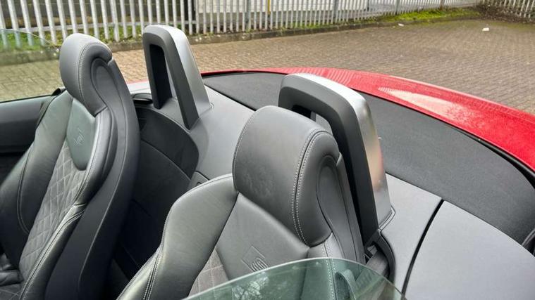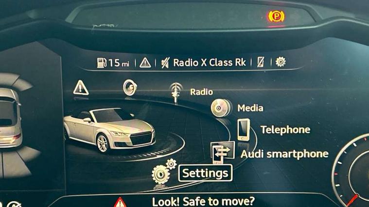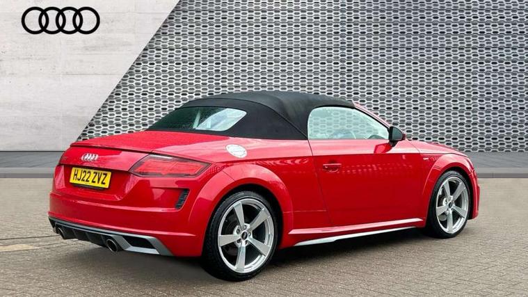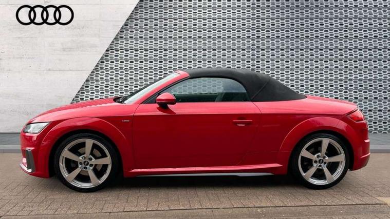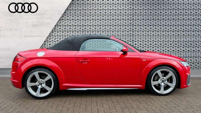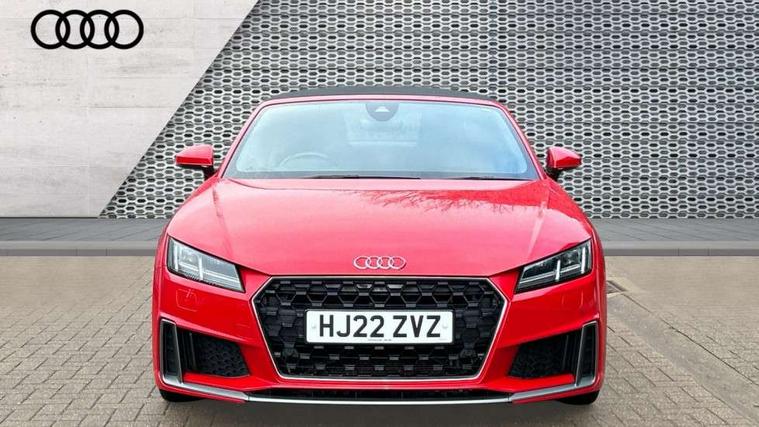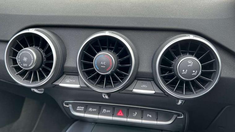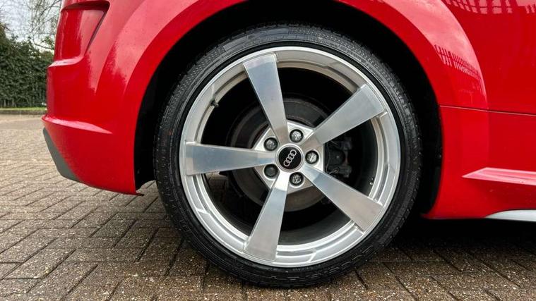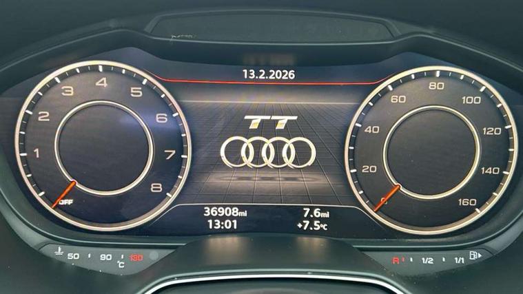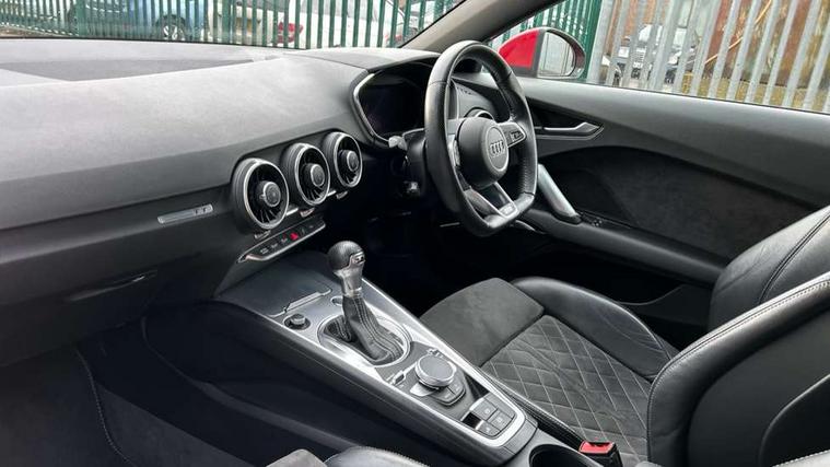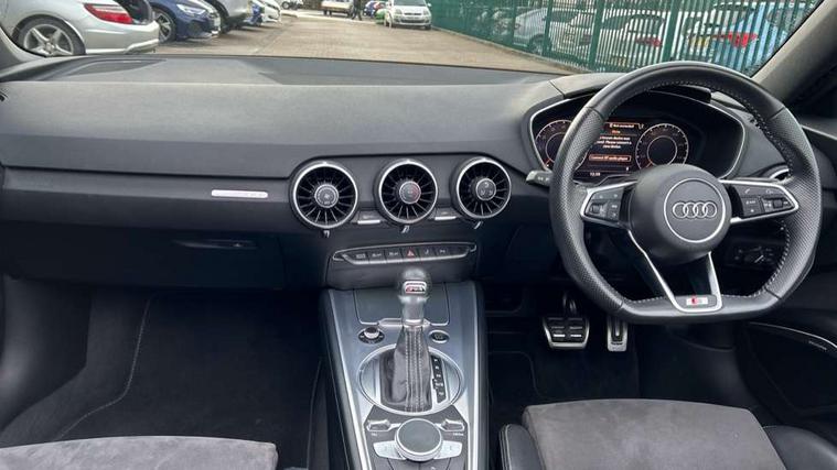 Audi drive select with 4 Pre configured modes, Audi smartphone interface, Audi virtual cockpit - 12.3" high-resolution LCD display with fully customisable instrument cluster, Cruise control + speed limiter, Emergency call service, MMI touch panel, Mobile phone preparation with bluetooth interface, Progressive power assisted steering, Seat belt microphone, Service interval indicator, Start/Stop system with energy recuperation, TP memo, S line sports suspension, AM/FM radio, Bluetooth audio streaming, DAB Digital radio, MMI Radio with CD player and SD/XC card slot, Auto dimming rear view mirror, Auto headlight range control, Black door mirrors, Body colour bumpers, Electric folding door mirrors, Electric front windows, Electrically adjustable and heated door mirrors with integrated LED side indicators, Front fog lights, Fully automatic acoustic hood, Green tinted heat insulating glass, High gloss black radiator grille, LED 3rd brake light, LED daytime running lights, LED headlights with LED rear lights + dynamic rear indicators, Light and rain sensors, Rear boot, Retractable rear boot spoiler, S line badges on front wings, Sunband for windscreen, 12V socket, 3 spoke flat bottomed high multi-function leather sport steering wheel with gearshift paddles, 4 way electric lumbar support for driver and front passenger, Black headlining, Black roll bar, Contrasting silver stitching in steering wheel, Door sill trims with S line logo, Extended aluminium look with stainless steel pedals, Front centre armrest, Front passenger seat, Front super sports seats, Heated front seats, Height adjustable driver's seat, Height adjustable front head restraints, Height/reach adjust steering wheel, ISOFIX child seat mounting for front passenger seat with airbag deactivation, Manual adjustment of seat height, fore/aft position, seat angle, seat depth and backrest angle, Perforated leather gearknob in black, S Line badge on steering wheel, Non smoking pack - TT/TT RS, S Line design styling pack - TT, 3 point front seat belts, ABS, ASR traction control, Curtain airbags, Driver and front passenger airbag with front passenger airbag deactivation, EDL traction control, Electromechanical parking brake, ESP, First aid kit, Front side airbags, Hill hold assist, Seatbelt warning, Tyre pressure loss indicator, Warning triangle, Anti theft alarm, Anti theft wheel bolts, Immobiliser, Keyless Go, Remote central locking, Matt brushed aluminium inlays, Tool kit, Tyre repair kit,