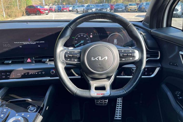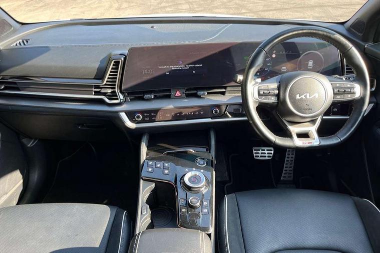 12.3" Display with navigation, 12.3" supervision colour cluster display, 360 degree around view monitor, Apple car play/Android Auto with voice control, Blind spot collision avoidance assist, Blind spot view monitor, Drive mode selector, E-call, Forward collision avoidance assist (FCA) - city/pedestrian/cyclist/junction covering, Front and rear parking sensors, Highway Driving Assist (HDA), Intelligent speed limit assist, Kia Connect (UVO), Lane Following Assist (LFA), Lane keep assist, Low washer fluid warning, Parking collision avoidance assist (PCA), Remote smart parking assist, Reversing camera system integrated into centre fascia screen, Smart cruise control with stop and go functionality, Smart power tailgate, Speed sensitive power steering, Trip computer, Windscreen washer level indicator, Wireless Smartphone charger, Intelligent Stop and Go, Terrain mode select (Mud, Snow, Sand), Bluetooth audio streaming, DAB Radio with MP3, Harman Kardon premium sound system, Rear USB port, Steering wheel mounted audio controls, USB C type charging ports on centre console, USB C type charging ports on side of front seats, USB port for connection of a media device, All round electric windows with drivers and front passenger auto up/down function, Automatic headlight control system, Automatic window defogger, Backlite glass heated with timer, Body colour and black bumper with silver accents, Body colour exterior door handles, Body colour radiator upper garnish and door garnish, Dual LED adaptive headlamps, Electric panoramic glass sunroof (Electric one touch with safety function), Electrically adjustable/heated/folding door mirrors with LED indicators, Front and rear chrome skid plates, Gloss black door mirrors, Gloss black radiator grille, Gloss black side sill and wheel arch body mouldings, Glossy black roof rack, High beam assist, Interior electrochromic mirror, LED daytime running lights, LED front fog lamps, LED High mounted stop light, LED rear combination lamp, Rain sensing wipers with aero blades, Rear fog lamp, Rear privacy glass, Rear side wing doors, Rear spoiler, Rear wiper, Satin finished beltline, Silver coloured inserts to bumpers, Tinted rear glass, Trailer stability assist, 10 way driver/8 way passenger electrically power adjustable seats, 12V power socket in front centre fascia and luggage compartment, 3 seat bench in 2nd row, 3 x passenger assist grips, 40/20/40 split folding rear seat, All-round height adjustable headrests, Ambient lighting, Black headlining, Centre console storage box, Cupholders in rear armrest, D-Shaped sports leather steering wheel and perforated inserts with GT-Line logo, Door courtesy lamps, Drink holder at centre armrest, Driver and front passenger side sunvisors with illuminated vanity mirrors, Driver seat memory function, Drivers seat power lumbar support, Front and rear door storage, Front seat and rear pockets, Front/rear centre armrests, Gear shift indicator, Glovebox illumination, Heated front and outer rear seats, Heated steering wheel, Interior door lock/unlock function, ISOFIX Child seat top tethers and anchor fixings outer rear seats, LED interior personal lamp, LED lighting in overhead console, Luggage area LED light, Luggage area load cover, Luggage net with hooks, Metal paint interior door handles, Paddle shift controls, Rear cabin light, Rear coat hooks, Single front passenger seat, Sports pedals, Suede leather upholstery, Three zone climate control, Tilt/telescopic adjustable steering wheel, Ventilated front seats, Ventilation ducts to rear compartment, Active front headrests, All round 3-point seatbelts, Anti-lock braking system (ABS), Dual front side airbags, Dual horn, Electronic parking brake, Electronic stability control with downhill brake control, Front passenger airbag cut-off switch, Front seatbelt pretensioners + load limiters, Height adjustable front seatbelts, Hill start assist control (HAC), Impact sensing auto door unlocking, Multi collision brake assist, Rear door child safety locks, Rear seat alert system, Traction control, Twin curtain airbags, Twin front airbags, Tyre pressure monitoring system, Advanced anti-theft system including immobiliser and alarm, Door deadlocks, Engine Start/Stop Button with Smart Entry System, Locking wheel nuts, Speed sensitive auto door locking, Visible vehicle identification number, Aluminium pattern finish centre fascia and door garnish, 18" GT-Line alloy wheels, Michelin tyres, Tyre mobility kit,