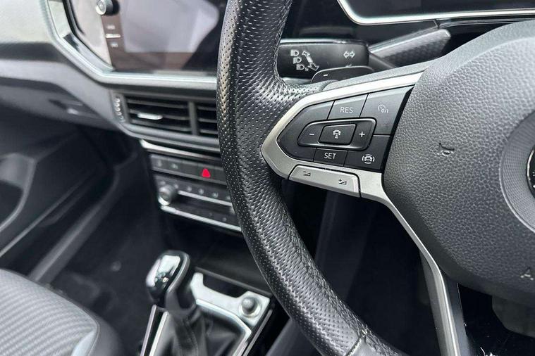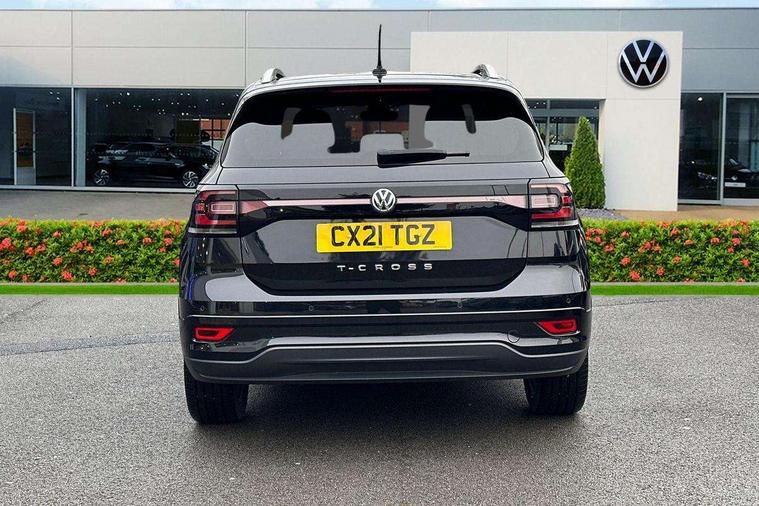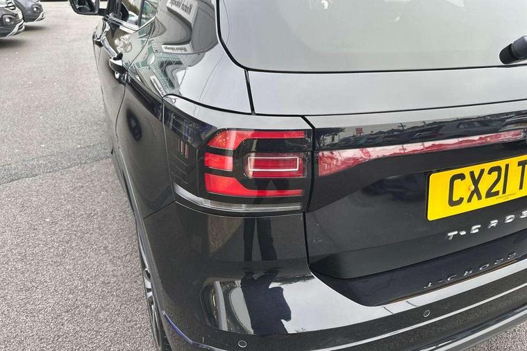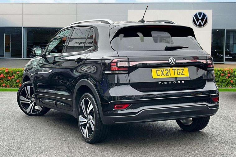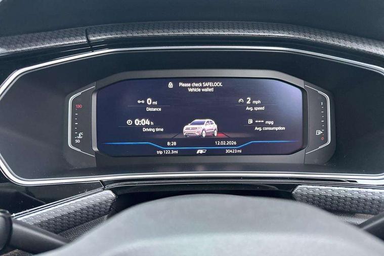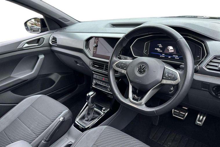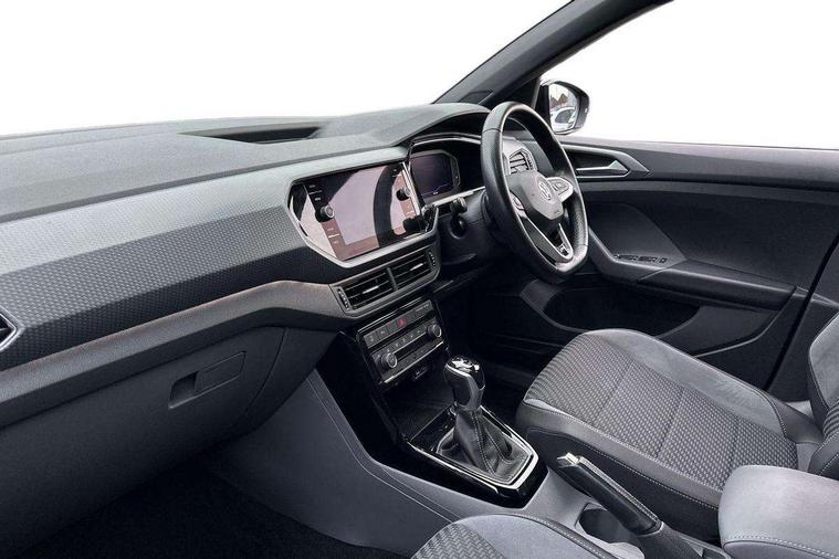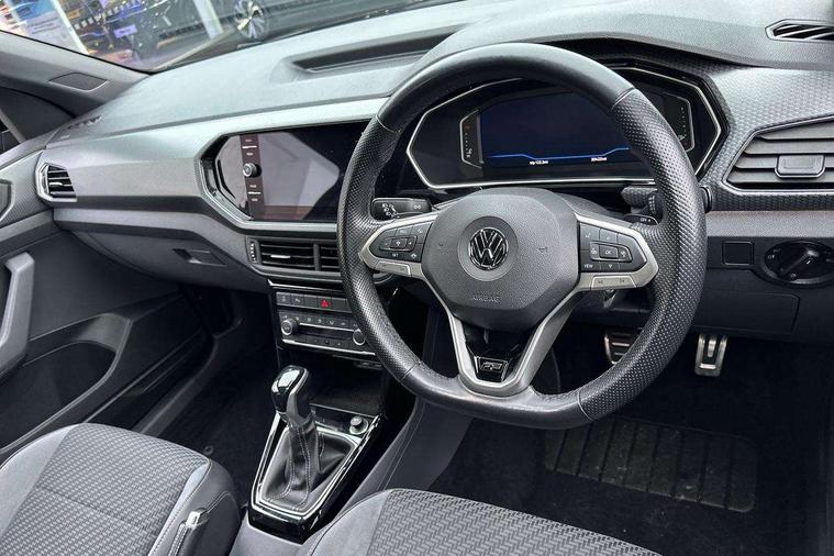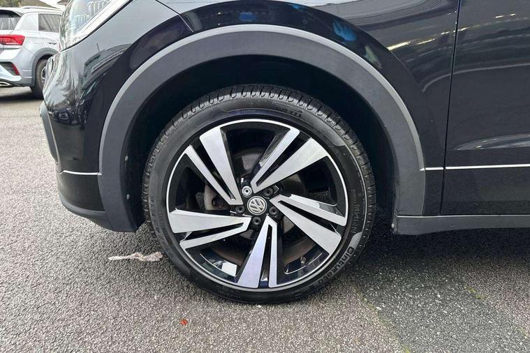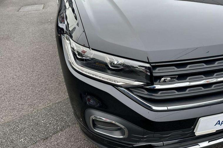 'Lights On' Reminder warning buzzer, 2D/3D map view, Adaptive cruise control including front assist, forward collision warning, autonomous emergency braking, speed limiter, Blind spot monitoring, Bluetooth telephone and audio connection for compatible devices, Car information display, Digital Cockpit Pro - Active info display, Driver alert system, eCall emergency call system, Lane assist, Low washer fluid warning light, Multifunction computer with visual gear change recommendation for fuel consumption, Operating permit alteration, Power assisted speed sensitive steering, Speed limit display, Speedo, rev counter, electronic odometer, trip, service interval display, exterior temperature and fuel gauge, Stop/start system, Warning sound and light for doors and tailgate open, Warning sound and light for front seatbelts unfastened, We connect plus preparation, Wireless Car net app connect with Apple CarPlay, combined functionality of Apple CarPlay/Android Auto and MirrorLink, Battery regeneration during braking, Misfuel prevention device, 2x USB connection with USB charging sockets and in rear centre console, DAB Digital radio receiver, Diversity antenna for FM reception, Multi device interface (MDI) with USB connection, Music playback - MP3, WMA and AAC files, Premium USB cable for Apple or Android smartphone compatibility, Simultaneous pairing of 2 compatible mobile devices, SMS Functionality, Three route options - Fast, Short, Eco, Title and cover art display, Automatic hazard lights activation under emergency braking, Body colour door handles, Body colour rear roof spoiler, Body coloured bumpers, Dusk sensor + automatic driving lights, Electrically foldable, adjustable and heated door mirrors with reverse activated kerb view adjustment on passenger's side, Front and rear electric windows, Front fog lights with static cornering function, Galvanised body, Heated rear window, High level 3rd brake light, Lower door sills and door pillars in black, Radiator grille with chrome trim and chrome bezel front fog lamp, Rear fog light on one side, reversing light on both sides, Rear lights incorporating LED technology, Rear tinted glass 65% approx light absorbing from B pillar backwards, Rear window aerial, Rear windscreen washer and wiper with interval delay, Reflectors in all doors, Silver roof rails, Stainless steel door sill protection, Tailgate with integrated roof spoiler, Unique R Line badging, Windscreen wipers/ intermittent wipe + 4 position delay, 12V Accessory socket in centre console, 2 Front and rear reading lights incorporating LED technology, 2 Zone electronic climate control with automatic air recirculation, 3 rear head restraints and 3 rear three point seat belts with ECE label, 60/40 split folding rear seat backrest, Ambient lighting and sourround lighting, Black headlining, Branded points of interest, Brushed stainless steel pedals, Carbon flag cloth upholstery, Drawer under drivers seat, Driver and front passenger sunvisor with vanity mirror, Driver's sunvisor with ticket holder, Dust and pollen filter, Front and rear carpet mats with contrast stitching, Front centre armrest with storage compartment, Front footwell illumination, Front seat back storage pockets, Front seat R Line logo with rear seat backrest, Front sports seat with height and lumbar adjustment, Glovebox, Heating and fresh air system with 4 stage blower, Height/reach adjust steering wheel, Instrument lighting white adjustable panel illumination, Interior light with delay, Isofix child seat preparation for 2 rear child seats, Leather trimmed three spoke multifunction steering wheel with contrast stitching and aluminium inserts with R Line logo, Luggage compartment cover, Luggage compartment lighting, Moveable and foldable Rear bench seat, Scuff plates in door apertures, Steering wheel paddle shift, Storage compartment in drivers and front passengers door, Variable boot floor, R Line styling pack - T-cross, Anti-lock Braking System (ABS) with Hydraulic Brake Assist (HBA), Automatic post collision braking system, Driver and front passenger safety-optimised head restraints, Drivers and Front Passengers airbags with front passengers airbag deactivation switch, ESC with EDL, ASR, EDTC and trailer stabilisation function, Extended and proactive pedestrian protection, Front and rear curtain airbags, Front seat side impact airbags, Height adjustable 3 point automatic front seatbelts with pretensioners, Hill start assist, Pre crash preventive occupant protection, Rigid safety cell with front and rear crumple zones, Single torn horn, Tyre pressure loss indicator, Volkswagen roadside assistance, Alarm with interior protection and deactivation via infotainment system, Child security locks in rear doors, Electronic engine immobiliser, Remote tailgate unlocking using key fob, Race decorative inserts in dash and doors, 18" Nevada black alloy wheels, Breakdown kit,
