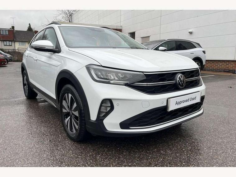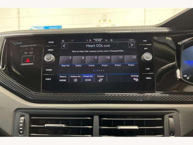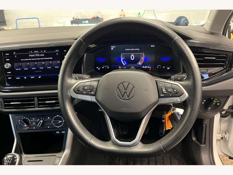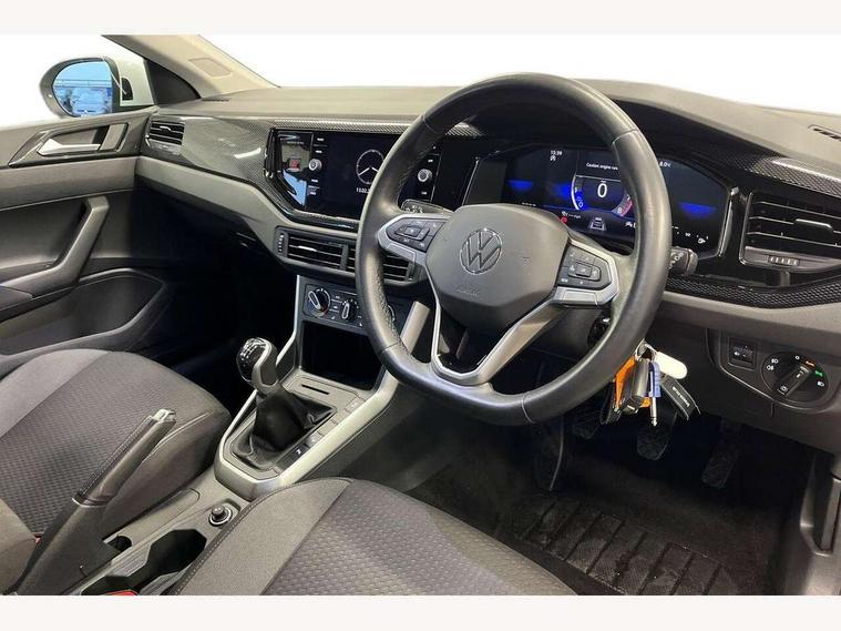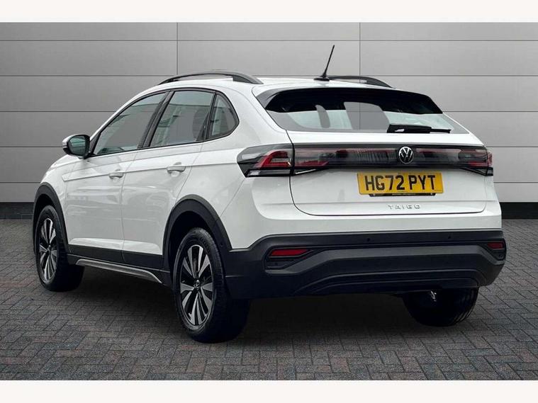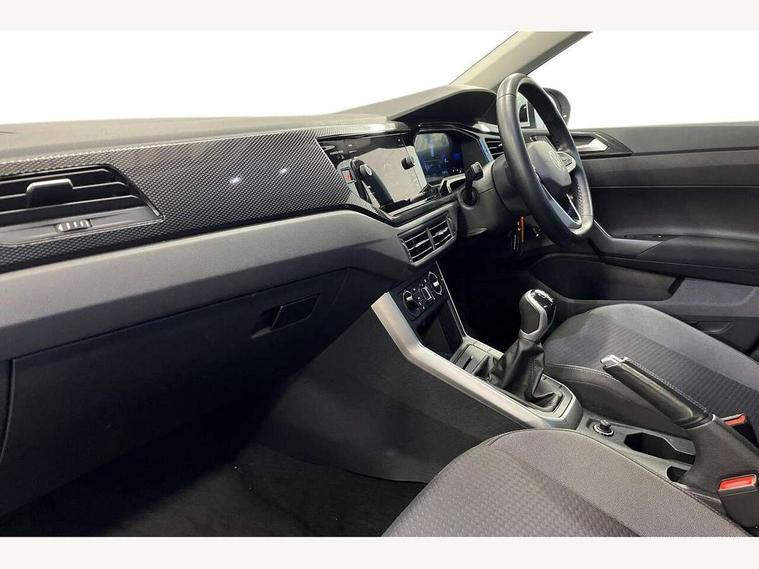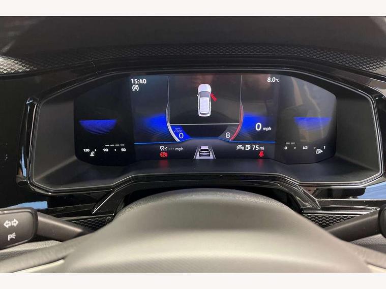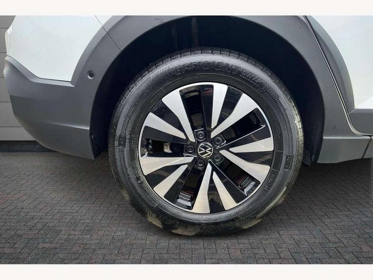Driver alert system, e-Call (emergency call), Power Steering, Travel assist including emergency assist, Washer fluid level indicator, Wireless Charging including Bluetooth, Start-stop system with battery regeneration (recuperation - energy recovery during braking), WeConnect plus, Ambient lighting with logo projection, Aspherical driver's exterior mirror, Auto headlights, Body coloured bumpers, Body coloured exterior mirror housings and door handles, Electric windows, External USB type C socket and charging sockets, Front fog lamps with cornering function, Headlight range control, Heat insulating glass windscreen, LED headlamps, LED rear combination lamp, LED third brake light, Left convex exterior mirror, Power folding adjustable/heated exterior mirrors and front passenger exterior mirror lowering function, Rear fog light on one side, reversing light on both sides, Rear side wing doors, Rear wash/wipe with intermittent wipe setting, 'Slash/ Austin' Cloth upholstery, 12V socket in centre console, 2 front reading lights, 3 rear head restraints, 3 seat bench in 2nd row, Black carpets, Child seat anchor for child seat system i-Size, 2x top tether and child seat anchor in front on front passenger side, Door and side trim panels in titan black, Driver and front passenger seat height adjustment, Front centre armrest, Handbrake lever handle in leather, Height and reach adjustable steering wheel, Leather trimmed gear knob, Leather wrapped multifunction steering wheel, Luggage compartment floor, Luggage compartment light, Lumbar support for driver's and front passengers seat, Seat covers in titanium black, Single front passenger seat, Split folding backrest with centre armrest and unsplit rear seat bench, Storage compartment under front seats, Sun visors with illuminated vanity mirrors, Chrome Package - Taigo, Drivers assistance pack - Taigo, Light and Sight pack including High beam assist - Taigo, 2 x 3-point seatbelts/outer rear seats with ECE label, 3-point seat belts in front with pretensioner and height adjustment, 3-point seatbelt for centre rear seat, Driver and front passenger airbags with front passenger airbag de-activation, front side and curtain airbags, Driver and front passenger safety-optimised head restraints, Electronic stability control, Extended and predictive pedestrian/ cyclist protection, Front and rear disc brakes, Front curtain and side airbags with center airbag, Hill start assist, Manual rear child locks, Single tone horn, Tyre pressure loss indicator, Anti-theft alarm system with interior monitoring, backup horn, and towing protection, Anti-theft wheel bolts, Lava stone black gloss/matt decorative inserts in dash and front door panels, Low rolling resistance tyres,
