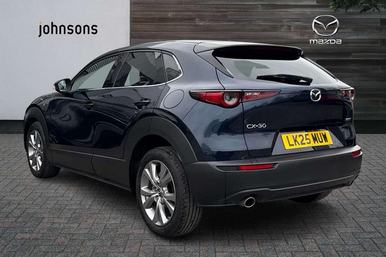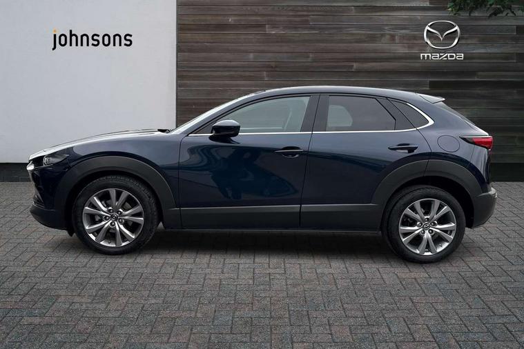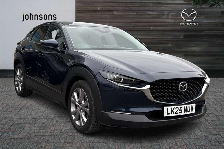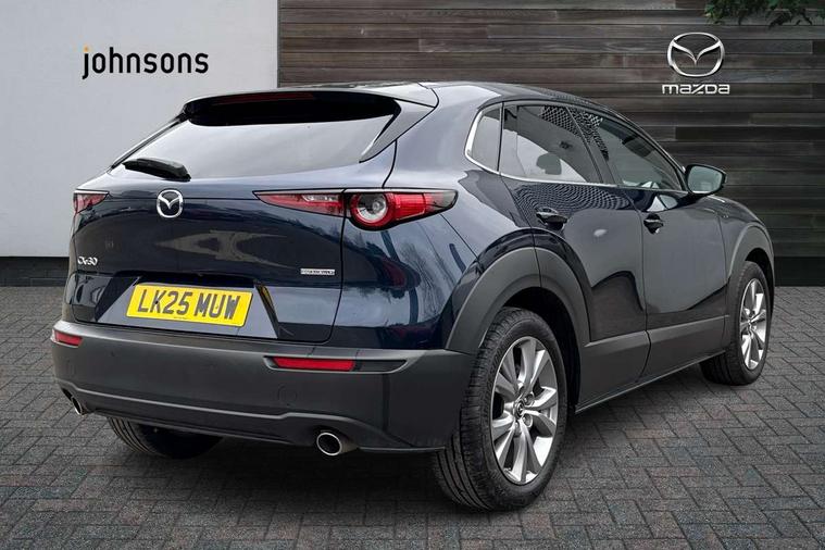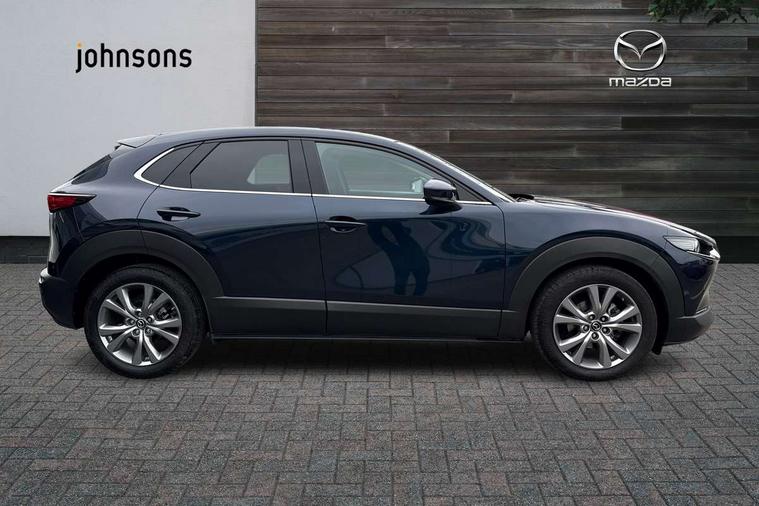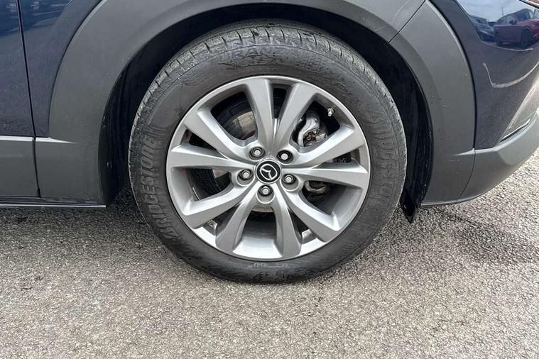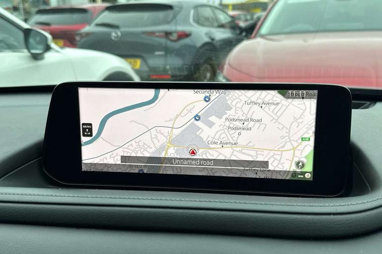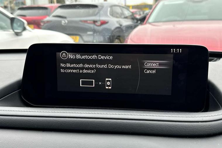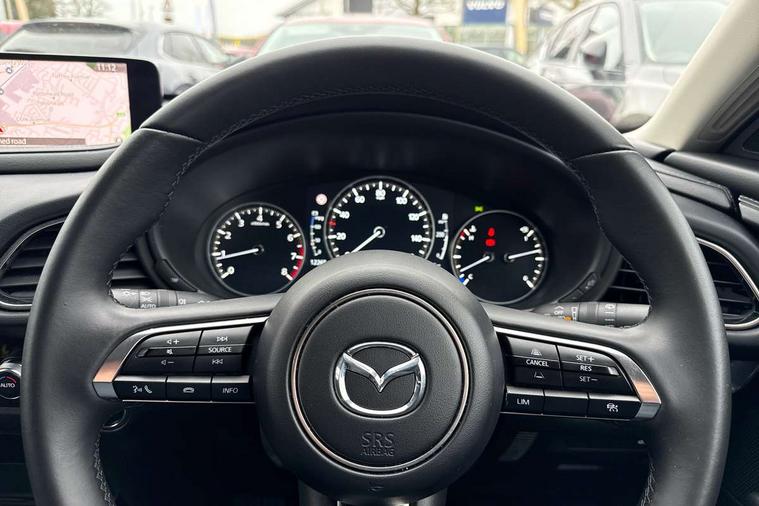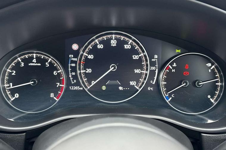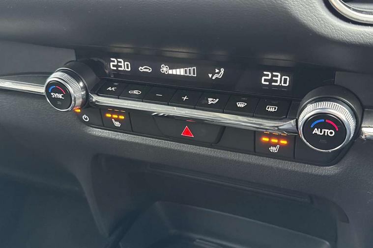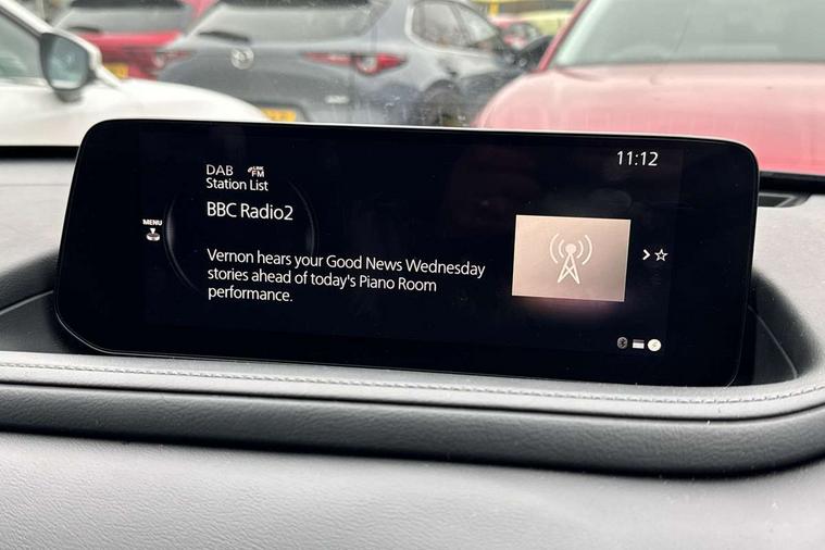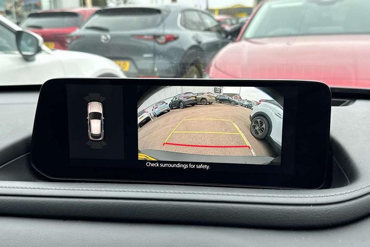 10.25" display with Mazda Connect infotainment, 7" TFT Colour driver instrument panel display, Adaptive cruise control (Mazda radar cruise control), Blind spot monitoring with rear cross traffic alert, Driver attention alert system, E-call with GPS, Emergency stop signalling system, Engine start/stop button, Front and rear parking sensors, Integrated Alexa Voice Assistant, Integrated bluetooth, Integrated Mazda navigation system, Intelligent speed assist, Lane keep assist system (LAS) with Lane departure warning system (LDWS), Mazda connected services, PAS, Power lift gate, Qi wireless charging, Reversing camera, Service indicator, Tailgate, Traffic sign recognition, Trip computer, Windscreen projected colour active driving display (HUD), Wireless Apple CarPlay/Android Auto, Cylinder Deactivation, i-stop, 2 x USB Type-C inputs, AM/FM and DAB radio, Bose surround sound system with 12 Speaker, Bose center point, Bass match and audio pilot technology, Multimedia Commander including separate volume dial, Steering wheel mounted audio/bluetooth controls, Adaptive LED Headlights, Auto dimming driver's door mirror, B-pillar and C-pillar garnishes in gloss black finish, Body coloured, electrically adjustable, heated auto power folding door mirrors with integrated indicators, Chrome finish signature wing in front grille, Coming/leaving home lighting function, Dual bright finish exhaust tip trim, Dusk sensing headlights, Electric front/rear windows with one touch auto up/down, Frameless auto dimming interior rear view mirror, Front kodo turn signal, Gloss black front grille, Gloss black rear roof spoiler, High beam assist, LED auto headlight levelling, LED signature daytime running lights, Privacy glass (rear side windows and rear screen), Rain sensing front wipers with adjustable speed and intermittent wipe, Rear fog lights, Rear side wing doors, Rear wiper, Signature LED rear combination lights, Third brake light, 12V power outlet in centre console, 3 seat bench in 2nd row, 60/40 split fold down rear seats, Bright interior trim accents with steering wheel centre bezel, surround of engine start / stop button and glove box handle, Cloth upholstery with interior accents, Dark cloth door panel inserts, Dashboard, door cards and front centre armrest in black cloth, Driver and front passenger visors with covered vanity mirror and driver ticket holder, Driver seat manual slide, recline, height and seat tilt adjust, Driver, front passenger and two rear door storage, Driver, Front passenger and two rear grab handles with coathooks, Dual zone climate control air conditioning with rear air vents, Folding rear centre armrest with two cup holders, Front and rear (x3) head restraints, Front and rear LED lighting, Front armrest, Front centre storage with two cupholders with lid, Front passenger seatback pockets, Front passengers seat manual slide, recline and height adjustment, Gear shift indicator, Glovebox illumination, Heated front seats with 3 stage setting, ISOFIX child seat anchorage points attached on outer rear seats, Leather wrapped gear shift knob, Leather wrapped steering wheel with telescopic and tilt adjustment, LED luggage compartment lighting, Light roof headlining and pillars, Roof mounted sunglasses holder, Single front passenger seat, 3 point ELR front seat belts x2 with pretensioners, 3 point ELR rear seat belts, Anti-lock braking system (ABS), Drivers knee airbag, DSC - Dynamic Stability Control, Electronic parking brake with auto disengage function and auto hold function, Front and rear curtain airbags, Front dual stage driver and single stage front passenger airbags, Front passenger airbag cut-off switch, Front side airbags, Front smart city brake support, G-Vectoring control plus, Hill launch assist, Manual child lock in rear doors, Mild Hybrid system with regenerative braking, Seatbelt reminder for driver/front passenger and rear seats, Traction control system (TCS), Tyre pressure monitoring system (TPMS), Remote central locking with deadlocking and automatic door lock when driving, Smart keyless entry, Thatcham accredited alarm and immobiliser, 18" Silver metallic alloy wheels, Emergency tyre repair kit,