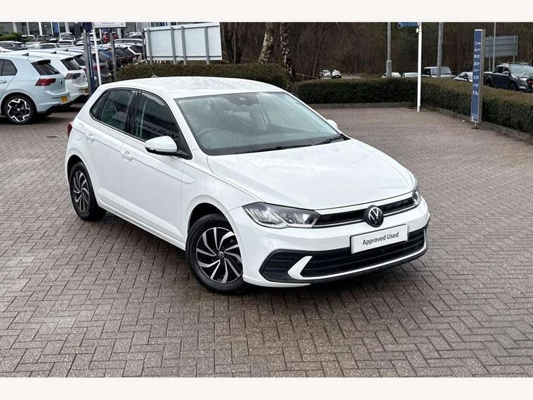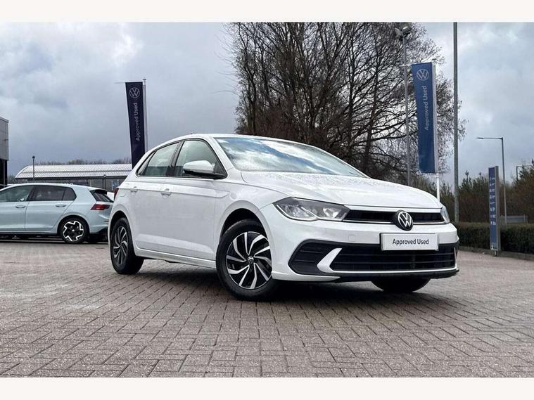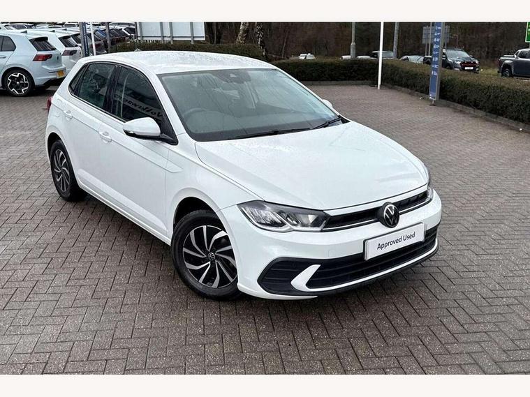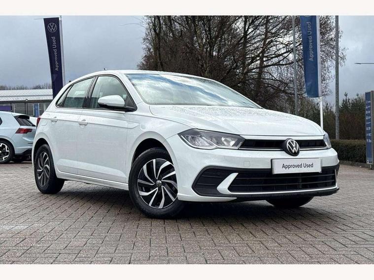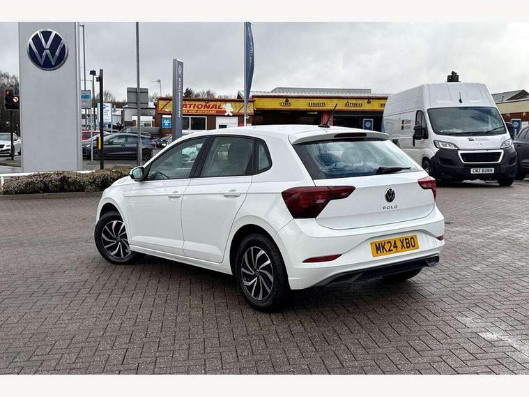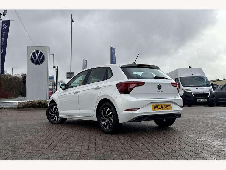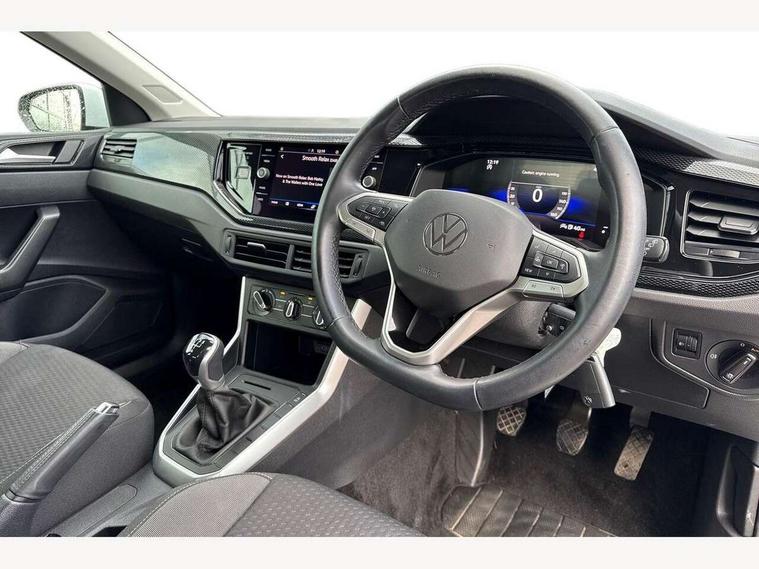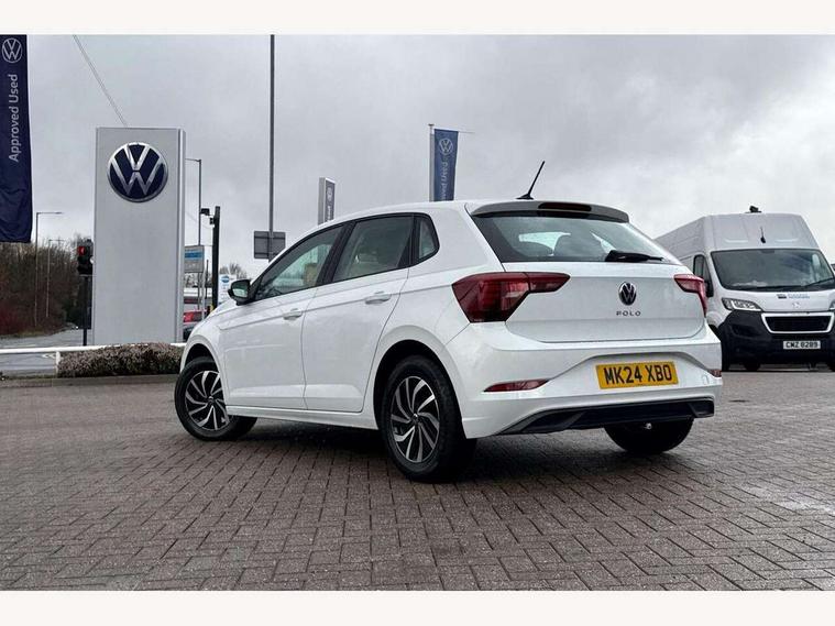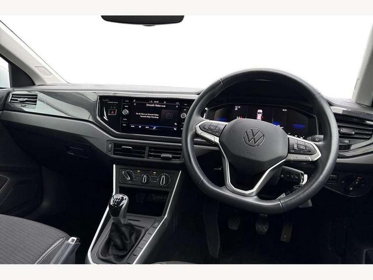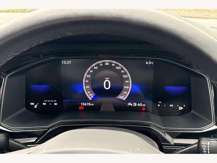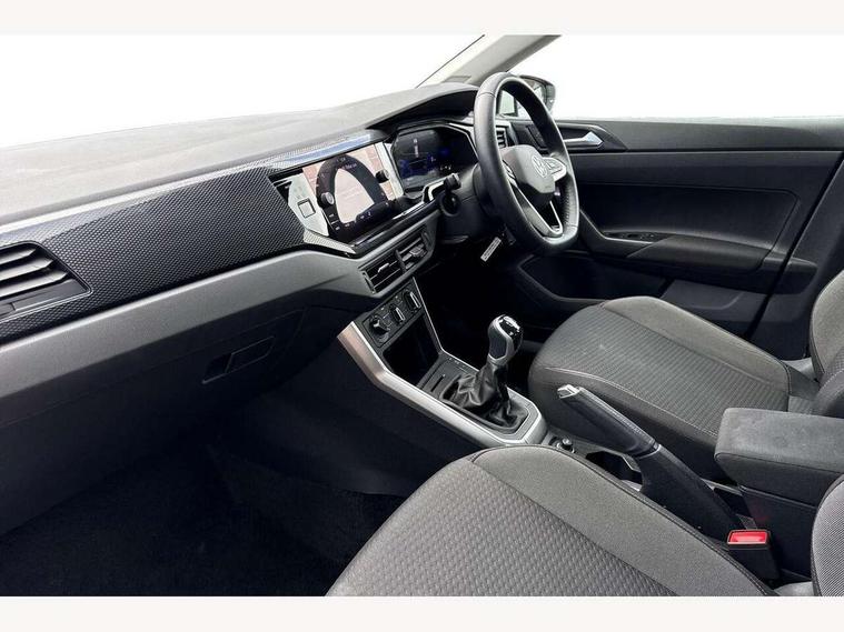 Adaptive cruise control without follow-to-stop and speed limiter, Advanced driver attention and drowsiness monitor, Bluetooth mobile phone interface, Dynamic road sign display, Emergency call service, Power assisted speed sensitive steering, Preparation for navigation system with media and internet package, Preparation for We connect and We connect plus, Speedo and rev counter, electronic odometer, trip, service interval display and exterior temperature gauge, Standard rear axle, Travel Assist - Lane keeping system and traffic jam assist, Travel assist including emergency assist, Trip computer, Warning signal and warning light for front and rear seatbelts not fastened, Washer fluid level indicator, Wireless app connect, Front wheel drive, Rear shock absorpion, Start-stop system with battery regeneration (recuperation - energy recovery during braking), DAB Digital radio, Diversity antenna for FM reception, Front and rear 6 speakers, Automatic dimming interior rear view mirror, Automatic headlight control with LED separate daytime running lights with coming/leaving home function, Body colour bumpers with chrome inserts, Body colour door handles, Body colour door mirrors, Electric front windows, Engine badge deletion, Headlight range adjustment, Heat insulating and laminated safety glass windshield, Heat insulating darkened glass in side and rear windows, Heat insulating glass windscreen, LED Headlights, LED rear combination lamps, Power folding adjustable/heated exterior mirrors and front passenger exterior mirror lowering function, Rain sensor, Rear electric windows, Rear fog light, Rear side wing doors, Rear windscreen washer and wiper with interval delay, Third brake light, 12V power socket in centre console, 2 front and 2 rear reading lights with switch off delay and dimmer, 2 USB-C ports in the front, 2 USB-C charging sockets on the center console in the rear, 3 rear head restraints, 60/40 split folding rear seat and rear seat bench not split, Ceramique roof lining, Chrome plated radiator grille inserts, air vent surrounds and light switch surrounds, Door and side trim panel, Driver and front passenger seat height adjustment, Driver/passenger sunvisors with illuminated vanity mirrors, Front centre armrest, Front seat backrest storage pockets, Front standard seats, Handbrake lever handle in leather, Hartley/Thomas cloth upholstery, Headliner in recycled material, Isofix child seat preparation easy-fit (for two outer rear seats, and front passenger seat) compatible with I-size, Leather trimmed gear knob, Luggage compartment cover, Luggage compartment lighting, Removable luggage compartment floor, Single front passenger seat, Standard climatic zones, Standard pedal cluster, Three spoke leather wrapped multifunction steering wheel, Light and vision pack - Polo, 3 point height adj front seatbelts + pretensioners, 3x3 point rear seatbelts, ABS, Driver and front passenger airbag with front passenger airbag deactivation, Drivers and front passengers safety optimised head restraints, ESC (Electronic stability control) + EDL (Electronic Differntial lock) and ASR (Traction control), Extended and predictive pedestrian/ cyclist protection, Front assist with autonomous emergency braking (for Adaptive Cruise Control ACC up to 130 mph), Front curtain and side airbags with center airbag, Front disc brakes, Hill hold control, Manual child lock in rear doors, Rear drum brakes, Single tone horn, Tyre pressure loss indicator, Alarm with interior protection, Anti-theft alarm system with interior monitoring, backup horn, and towing protection, Anti-theft wheel bolts, Electronic engine immobiliser, Lava stone black gloss/matt decorative inserts in dash and front door panels, Low rolling resistance tyres,