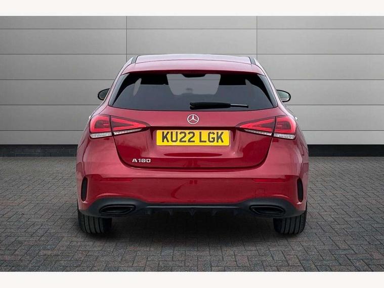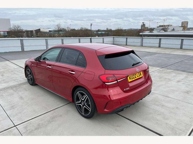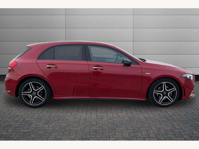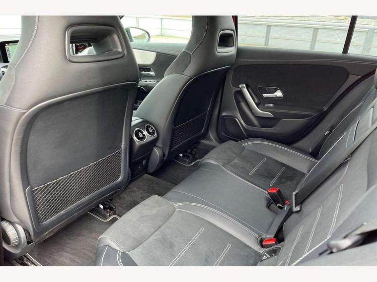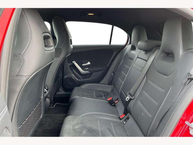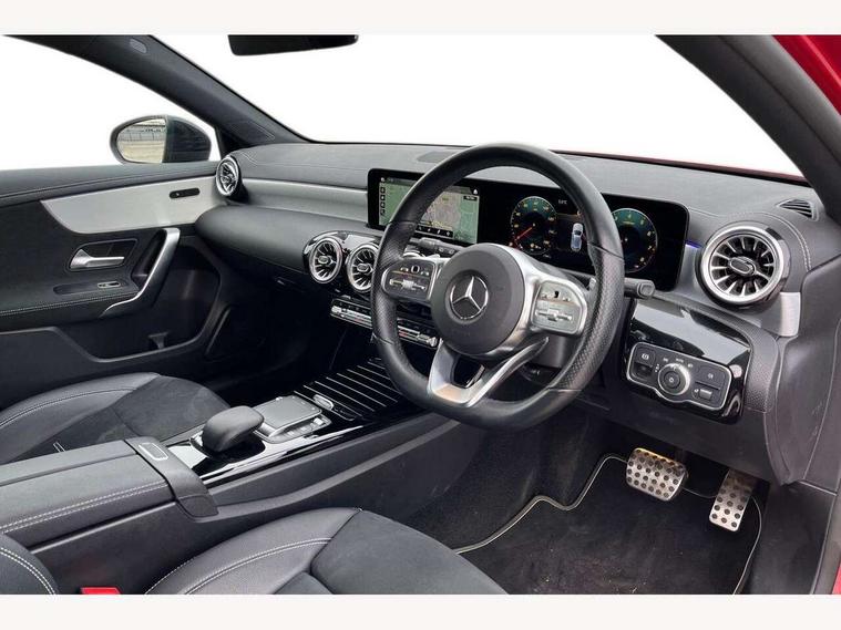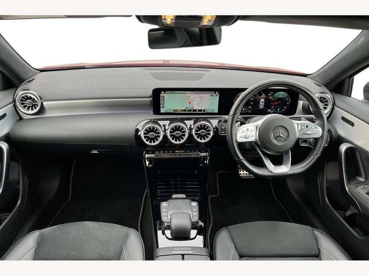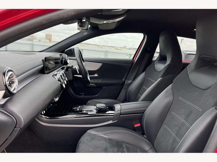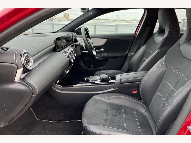10.25" Digital instrument cluster display screen, 10.25" media display, 180 degree rear view camera with parking guidelines, Active parking assist with visual and audible warning of detected obstacles, Attention assist, Brake pad wear indicator warning light, Car wash mode, Cruise control + speed limiter, Direct steering, Dual bluetooth interfaces, DYNAMIC SELECT with a choice of driving modes (ECO, Comfort, Sport and Individual), ECO start/stop function, Fluid level warning indicator for fuel, oil, coolant and washer fluid, Hard-disk navigation, Hey Mercedes Voice activation, Lamp failure indicator, Lane keeping system, Mercedes me connect including emergency call system, accident recovery, breakdown and maintenance management, Mercedes me remote services, Outside temperature gauge, Owners manual in English, Pre-installation for private car sharing, Preinstallation for Mercedes Benz link, Service indicator (ASSYST), Smartphone integration with Apple CarPlay and Android auto, Speed sensitive power steering, Trip computer, Ultrasonic sensors positioned in the front and rear bumpers, Lowered comfort suspension, Rear axle torsion beam, 10 speakers, 2 USB ports (type C) in rear stowage compartment and one in front of center console, DAB Digital radio, MBUX multimedia system with DAB digital radio and touchpad including satellite navigation, Mercedes-Benz sound system - 100W, 4 Electric Front and Rear windows, Adaptive brake lights, AMG bodystyling - Front apron with splitter in chrome, rear apron with chrome trim and chrome visible trim elements in tailpipe, Automatic headlights, Black weather strip, Body colour bumpers, Body colour door handles, Body colour side skirt, Body coloured door mirrors, Electric adjustable and heated door mirrors with integrated LED side indicators, Exclusive diamond radiator grille, Exhaust system - Twin visible tailpipes in polished stainless steel, Headlamp assist automatic headlamp activation, Heated glass rear windscreen + timer control, High gloss black beltline, LED High level third brake light, LED high performance headlamps with integrated LED daytime running lights, LED tail lamp, Privacy glass, Radio aerial, Rain sensing windscreen wipers with two sensitivity settings, Rear fog lights, Rear side wing doors, Rear wiper, Window line trim strip in high gloss black, 3 seat bench in 2nd row, 3 Spoke flat bottom leather multi function steering wheel with perforated leather in grip area, 40:20:40 split folding rear seats, Artico man-made leather/Microfibre Dinamica upholstery with contrast stitching in light grey, Auto Mercedes-Benz child seat recognition sensor, Black air vents with surround in silver chrome, Black roof lining, Brushed stainless steel sports pedals with rubber studs, Controller on centre console with chrome surround, Floor mats with black top stitching and embroidered edition logo and piping in light grey, Front centre armrest with storage compartment, Front seat backs luggage nets, Front seat cushion length adjustment, Galvanished gear shift paddles on steering wheel, Heated front seats, Height/reach adjustable steering column, Illuminated front door sills with changeable cover, Interior lighting - 64 colour Ambient lighting, Interior mirror with reading lamps in black and frameless, Manual height adjustable front seats, Rear armrest with 2 cupholders, Rear head restraints, Seat occupancy sensor for front passenger seat, Single front passenger seat, Sports seats with integrated headrests, Stowage compartment in centre console with retractable cover, Sunvisors with illuminated vanity mirrors, Touchpad on center console, Twin front cupholders, Two zone thermotronic luxury automatic climate control, Light and sight pack - A Class, Mirror package - A Class, Night pack - A Class Saloon/Hatchback, Seat comfort pack - A Class, 3 rear 3 point seatbelts, ABS with Brake Assist, Active bonnet, Active brake assist includes forward collision warning system with autonomous braking, Adaptive brake assist with hold function and hill start assist, Black seatbelts, Childproof locks manually operated for rear doors and electrically operated for rear power windows, Crash responsive emergency lighting, Driver and passenger head and side airbags, Drivers knee airbag, Dual stage driver/passenger airbags, Electronic parking brake, ESP curve dynamic assist, ESP with ASR, Front and rear seatbelt reminder, Front brake callipers with Mercedes Benz lettering, ISOFIX and top tether child seat fixing points in two outer rear seats, Tyre pressure monitoring system, Warning triangle and first aid kit, Window airbags, Alarm system/interior protection/immobiliser, Keyless entry lock/unlock, Keyless Go, Remote central locking and crash sensor with emergency opening function, Urban guard vehicle protection system with immobiliser and interior protection, Matrix look light longitudinal grain aluminium trim element, 18" AMG 5 twin spoke light alloy wheels aerodynamically optimised painted in black with highsheen finish, Summer tyres, Tirefit sealant kit,