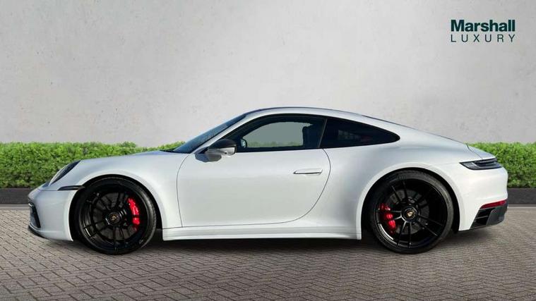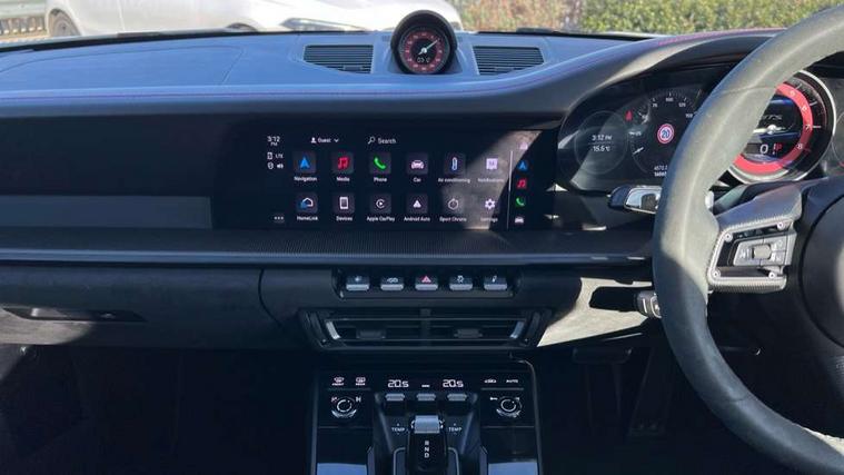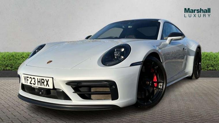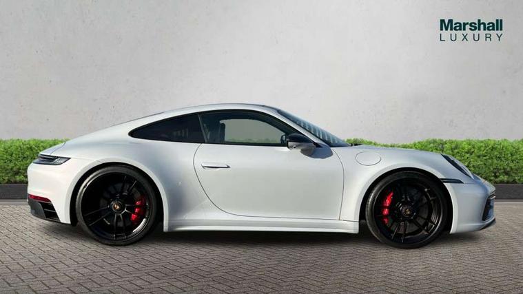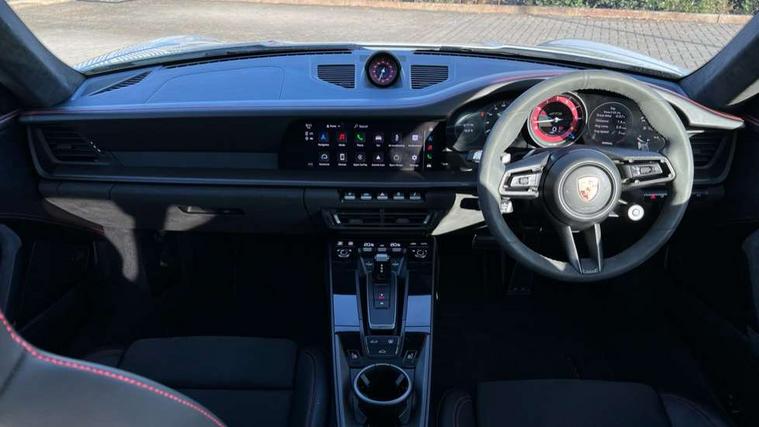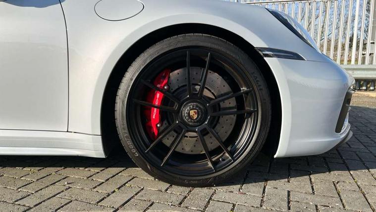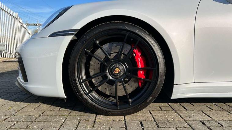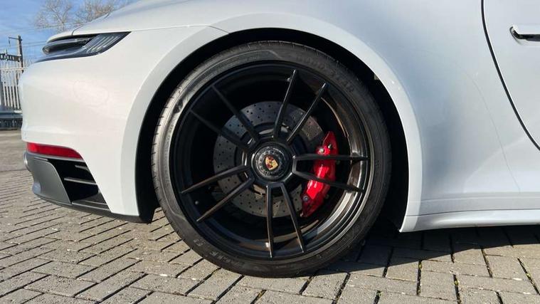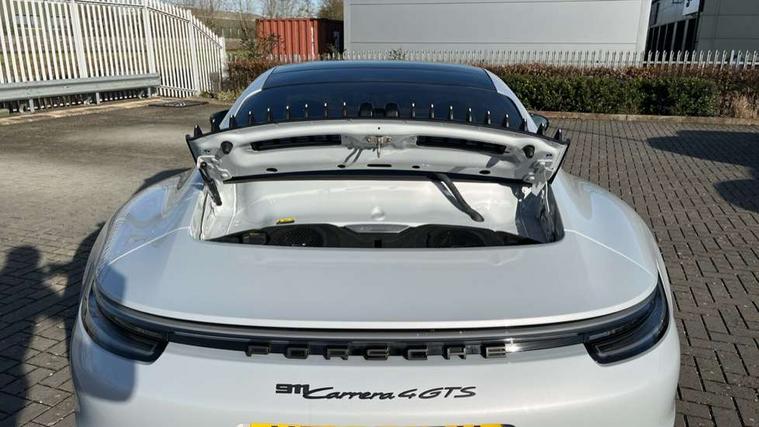 10.9 inch centre display, Automatic start/stop system, eCall emergency system, Gear indicator in rev counter, Instrument cluster with central analogue rev counter and two 7-inch TFT displays, Porsche Communication Management (PCM) including online navigation module, mobile phone preparation, audio interfaces and voice control system, Service indicator, Smartphone integration with Apple CarPlay and Android auto, Stationary management with HOLD function, Trip computer, Warn and brake assist including pedestrian protection, 8 Speed Porsche Doppelkupplung (PDK) with dual mass flywheel, All wheel drive with map controlled multi plate clutch Porsche Traction Management (PTM), Aluminium block and cylinder heads, Catalytic converters, Direct fuel injection (DFI), Dry sump lubrication, Expansion intake manifold, Four valve per cylinder, McPherson-strut suspension with anti-roll bar at front, Porsche Stability Management (PSM), ABS with extended brake functions, Porsche Torque Vectoring Plus (PTV Plus) inc electronically regulated rear differential lock and fully variable torque distribution, Twin turbocharger intercooled, Two gasoline particulate filter, VarioCam Plus variable valve timing and switchable valve lift, Water-cooled engine with thermal management, 4 valves per cylinder, 2 USB-C connectivity and charge ports in the centre console storage compartment, DAB Digital radio, 3rd brake light, Auto deploying rear spoiler, Automatic headlight activation including welcome home lighting, Automatically dimming interior and exterior mirrors with integrated rain sensor, Black trim strips, Body coloured bumpers, Green tinted heat insulating glass, Heated rear windscreen, Intelligent lightweight body in Aluminium/Steel composite construction, LED auxiliary light units in the front end with position lights, direction indicators and side indicators, LED daytime running lights, PORSCHE black lettering integrated in taillight strip, Power windows with one touch operation and door seal protection, Rear boot, Rear lid grille with vertical slats in satin black, Side skirts trim in black, Trims on sideskirts in black, Windscreen washer system with aero wiper blades and washer jets, 12V socket in front passenger footwell, 2 individual seats in 2nd row, 2+2 seater with rear engine, Ascending centre console with storage compartment, Black race-tex on steering wheel rim, seat centres, door handles, door panel armrests, gear lever, centre console storage compartment lid partially, Driver and front passenger illuminated vanity mirrors, Front and rear head restraints, Heated front seats, LED door lights, LED footwell lights, LED glove compartment lighting, LED ignition light, LED luggage compartment lighting, LED orientation light, LED reading lights, Lockable glove compartment, Luggage compartment lid release, Particle/pollen filter with active carbon filter, Single front passenger seat, Split folding rear seats, Storage compartments in each doors, Two individual cupholders 1x as inlet in centre console and 1x passenger side, Two zone auto climate control with separate temperature settings for driver/front passenger, automatic air recirculation mode incl air quality sensor, Sport Design pack - 911 GTS, 6 piston aluminum monobloc fixed front calipers and 4 piston aluminum monobloc fixed rear calipers with cross-drilled, internally vented brake discs, Electric parking brake, Electromechanical power brake, Full size two stage airbags for driver and front passenger, Pedestrian protection, Porsche side impact protection system includes side impact protection in doors, curtain, head/thorax airbags for driver/front passenger in each door, Tyre pressure monitoring system, Dashcam prep, Engine immobiliser with remote central locking and alarm system with ultrasonic sound based interior surveillance, Porsche vehicle tracking system (PVTS Plus), Tyre sealing compound and electric air compressor kit,