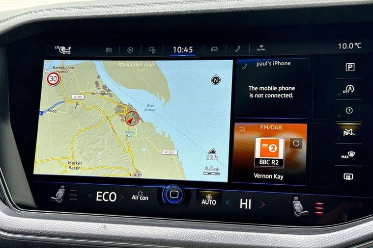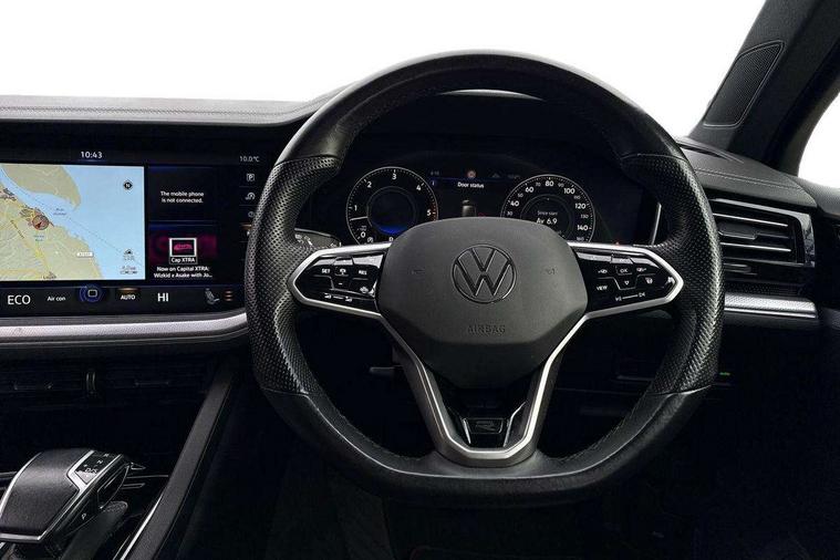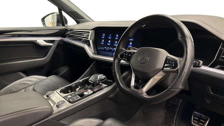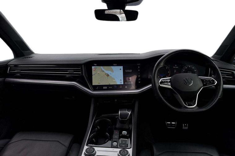 2D/3D map view, ACC - Adaptive cruise control with front assist, forward collision warning, distance monitoring, city emergency brake and speed limiter, Apple car play/Android Auto, Audible and visual fatigue detection system, Bluetooth hands free telephone connection, Car information display, Drive select with Damper control, Driver alert system, Driver profile selection, Dynamic road sign display camera controlled system with visual warning for traffic and road signs, eCall emergency system, Fully electric tailgate + keyless entry and start, Instrument cluster, MirrorLink, Multifunction camera with lane assist, Multifunction computer premium with 7" colour display, One touch indicators with repeat function, Service interval indicator, Speed sensitive power steering, Start/stop system with regenerative braking, Tailgate power latch, Think blue trainer driver tips and journey analysis, Traffic sign recognition, Voice control system, Wireless Smartphone charger, 24 litre AdBlue tank, Torsen limited slip differential, DAB Digital radio, Dynamic navigation based on TMC+, Gesture control for infotainment system, Multi device interface (MDI) with illuminated USB-C connection, Music playback - MP3, WMA and AAC files, SD card slot, Simultaneous pairing of 2 compatible mobile devices, SMS functionality - read, compose and send SMS messages using touch-screen display, Title and cover art display, Volkswagen media control, Adaptive low beam for urban and motorway use, Auto dimming rear view mirror, Automatic coming/leaving home lighting function, Automatic headlights, Black anodised roof rails, Black door mirrors, Black rear diffuser, Black side window surrounds, Black upper and lower grille louvres extending into headlights and radiator grille, Body colour door handles, Body coloured wheel arches, C signature gloss black front air intake, Chromed tailpipe on the left and right integrated in the bumper with trapezoid design, Dusk sensor, Dynamic headlight range control, Electric front tilt/slide panoramic sunroof and fixed rear sunroof, Electrically power adjustable, heated, folding, auto dimming, front passenger exterior door mirror lowering function, Front and rear electric windows, Galvanised body, Gloss black finish B pillar, Gloss black rear diffuser, Headlight washers, Heat insulating darkened glass in side and rear windows, Heated windscreen washer jets, IQ.Light-LED matrix headlight, daytime running light with dynamic cornering light and indicator, LED rear fog light, LED rear number plate lights, Plastic scuff plates in door apertures, Poor weather light, Puddle lights, Rain sensor, Rear side wing doors, Rear wiper, 12V socket in front and rear centre console and boot, 2 Coat hooks on B pillar, 3 rear head restraints, 3 spoke sport heated leather multi-function sports steering wheel with gear shift paddles - generation 2, 4 way adjustable front head restraints, 4 way electric lumbar support for driver and front passenger, 4 zone climate control, 40:20:40 split folding slide/recline rear seat, B pillar vents, Black lower edge of door extending sills, Branded points of interest, Double sun visor for drivier and passenger with LED illuminated vanity mirrors, Electric luggage compartment cover, Folding rear centre armrest with 2 cupholders, Front + rear carpet mats, Front centre armrest with storage box, Gear shift indicator, Height/reach adjust steering wheel, Illuminated air conditioned glovebox, Isofix preparation for 2 rear child seats, Jack and tool kit, Leather trimmed gear knob with gloss black inlay/aluminum trim, Leatherette door trim, LED luggage compartment lighting, Load through provision, Luggage compartment with load lashing rings, Plastic loading edge protection, Rear seat remote release levers, Soul black headlining, Stainless steel pedals, Innovision cockpit pack - Touareg, 3 point front seatbelts with pre-tensioners, ABS, Active bonnet, Automatic post collision braking system, Curtain airbags, Driver/Front Passenger airbags, EBD + Brake Assist, EDL, Electronic parking brake with auto hold, ESC with ASR, Front seat side impact airbags, Hill descent control, Hill start assist, Passenger airbag deactivate switch, Seatbelt warning lamp and buzzer, Three 3 point rear seatbelts, Two tone horn, Volkswagen roadside assistance, Warning triangle and first aid kit, Alarm with interior monitoring in cab, backup horn and towing protection, Child security locks for front and rear doors, Electronic engine immobiliser, Remote central locking, Black decorative trims on the side windows, High gloss black centre console,