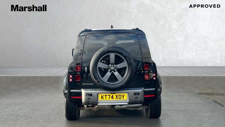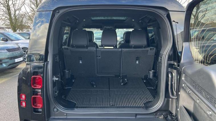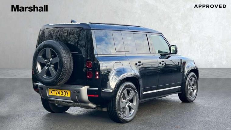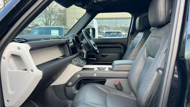 1 x USB-C (power only) & 1 x USB-C (power & data) in Row 1, 2 x USB-C in Row 2, 11.4" touchscreen, 2 x USB-C in Row 3, 360 degree parking aid, 3D Surround Camera with 360 View, 180 Rear View, Front Traffic Detection, Forward Vehicle Guidance, Tow Hitch Assist and clear sight Ground View, Adaptive cruise control, Android Auto, Apple CarPlay, Blind spot assist, Bluetooth system, Brake pad wear indicator, Clear exit monitor, Connected navigation pro, Driver condition monitor, Electric power assisted steering (EPAS), Interactive driver display, Lane keep assist, Push button start, Rear collision monitor, Rear traffic monitor, Traffic sign recognition with adaptive speed limiter, Trip computer, Wireless device charging, 8 speed automatic transmission, All wheel drive system, Twin speed transfer box, DAB Radio (Digital Audio Broadcasting), Meridian 700w surround sound audio system with 15 speakers, Pivi pro connected, Automatic headlight levelling, Automatic headlights, Black exposed rear recovery eyes, Body coloured bonnet, Centre high mounted stop light, Electric heated/power fold door mirrors with approach lights and auto dimming driver side, Electric windows with one touch open/close and anti-trap, Follow me home lighting, Front fog lights, Heated rear window with timer, Heated windscreen, Illuminated metal treadplates with brand name script, LED tail lights, Matrix LED headlights with signature DRL, Privacy glass, Puddle lights, Rain sensing windscreen wipers, Rear fog lights, Rear side wing doors, Rear wiper, Side hinged tailgate, Sliding panoramic roof, Standard tail door, Trailer stability assist, X-Dynamic badge, 12V power socket in loadspace, 2 seat bench in 3rd row, 3 seat bench in 2nd row, Alpine lights, Configurable cabin lighting, Durable rubber cabin flooring, Durable rubber loadspace flooring, Electric reach + rake adjustable steering column, Electrically adjustable steering column, Extended leather upgrade, Footwell lights, Front head restraints, Front passenger isofix child seat attachment, Heated steering wheel, Loadspace cover, Loadspace Hook, Multifunction steering wheel, No flat load floor storage, Overhead stowage for sunglasses, Rear headrests, Rear ISOFIX, Rear reading lights, Single front passenger seat, Soft close tail door, Storage glovebox, Sunvisors with illuminated vanity mirrors, Twin front cupholders, Air suspension pack - Defender SE/HSE/X-Dynamic SE/X-Dynamic HSE, Non-smoker package, Online pack with data plan - Defender, 7 three point seatbelts, ABS, Brake hold function, Cornering brake control (CBC), Customer configurable autolock, Driver and passenger airbags, DSC - Dynamic Stability Control, EBD - Electronic brakeforce distribution, Electric parking brake (EPB), Emergency brake assist, Emergency braking, ESP + traction control, Front airbags with passenger seat occupant detector, HDC - Hill descent control, Hill launch assist, Low traction launch, Power operated child locks, Remote for (e-Call, Optimised assistance call, InControl app, Climate, beep and flash and door), RSC - Roll stability control, Seat belt reminder, TPMS (Tyre pressure monitoring system), Alarm, Immobiliser, Intrusion sensor, Keyless entry, Locking wheel nuts, Secure tracker pro,