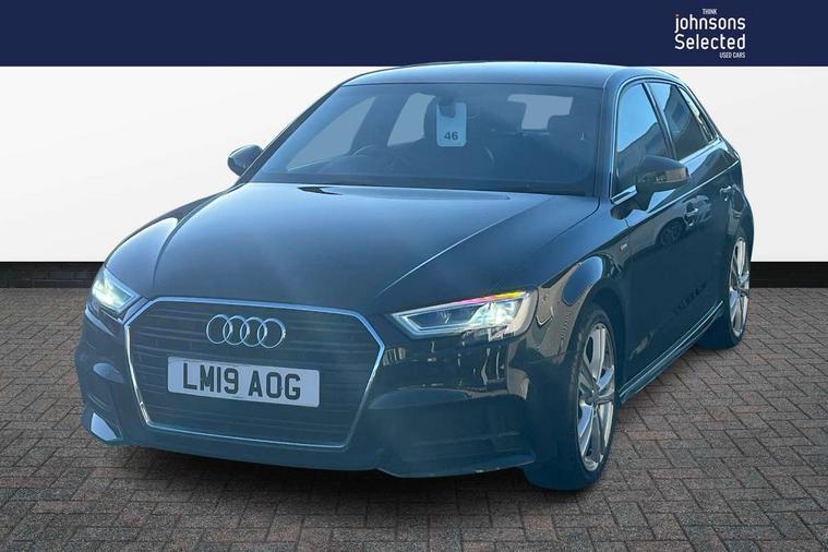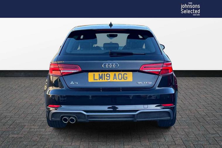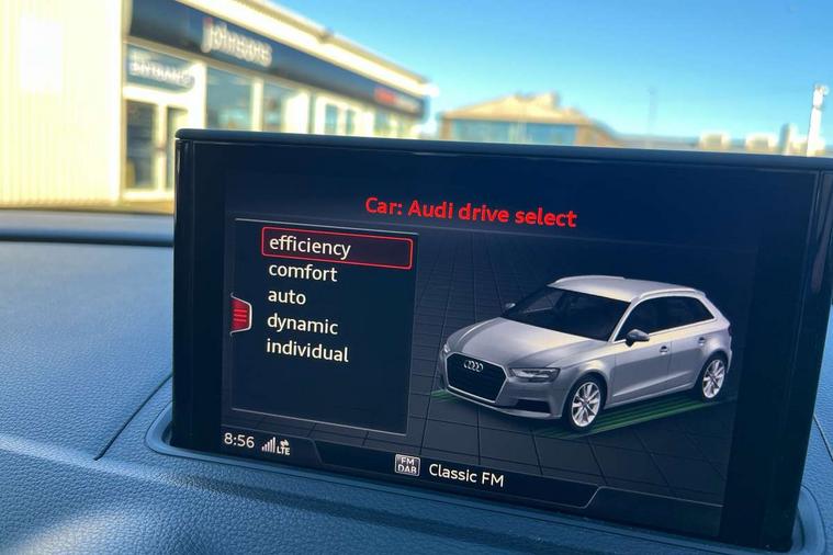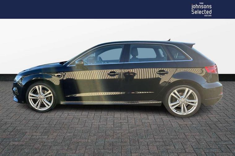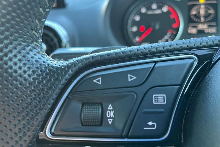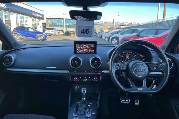 Audi connect, Audi drive select, Audi smartphone interface, Automatic start/stop system, Colour driver's information system display, Electro - mechanical power assisted steering, Mobile telephone preparation - bluetooth interface, SD card based satellite navigation system, Service interval indicator, Speed limit display, Voice control system, Voice recognition for navigation system, 2 USB interfaces and Aux-In jack, Audi music interface, CD player, DAB Digital radio, MMI radio plus with 7" colour MMI screen and MMI controller, Aluminium window trim, Auto dimming rear view mirror with light and rain sensors, Body colour door mirrors, Chrome exhaust tailpipes, Electric front windows, Electric rear windows, Electrically adjustable and heated door mirrors with integrated LED side indicators, Heated windscreen washer jets, LED daytime running lights, Matt black radiator grille, Rear wiper, S line badges on front wings, S Line body styling with front & rear bumpers and side skirts, radiator grille and rear diffuser insert, roof spoiler, Sport specific side air inlet grille and diffuser insert, 3 adjustable rear headrests, 4 lashing points to secure luggage, Adjustable front centre armrest, Black cloth headlining, Dual zone electronic climate control, Front and rear interior lights with delay, Front/rear floor mats, Glovebox light, Height and reach adjustable steering wheel, Illuminated door sill trims with S logo, Isofix child seat preparation for front passenger/outer rear seats inc passenger airbag deactivation, Stainless steel pedals, Storage compartments in doors side trims, centre console and under front drivers seat, Tool kit, LED interior light pack - A3/RS3, Non smoking pack - A3, Storage and luggage pack - A3/RS3, 3 point seatbelts on all seats, ABS/EBD, Active bonnet, Active front headrests, Airbags - front driver/passenger, front & rear side, curtain, drivers knee, ASR, EDL, Electromechanical parking brake, ESC - Electronic Stability Control + traction control, Front passenger airbag deactivation, Hill hold assist, Manual rear child locks, Multi-Collision braking, Seatbelt warning, Tyre pressure warning, Warning triangle and first aid kit, Anti theft alarm, Anti-theft wheel bolts, Remote control central locking, Thatcham category 1 alarm + immobiliser, Aluminium air vent surrounds, Aluminium trim elements, Matt brushed aluminium inlays, Tyre repair kit,