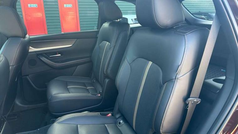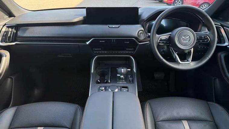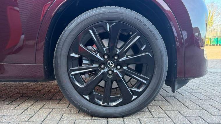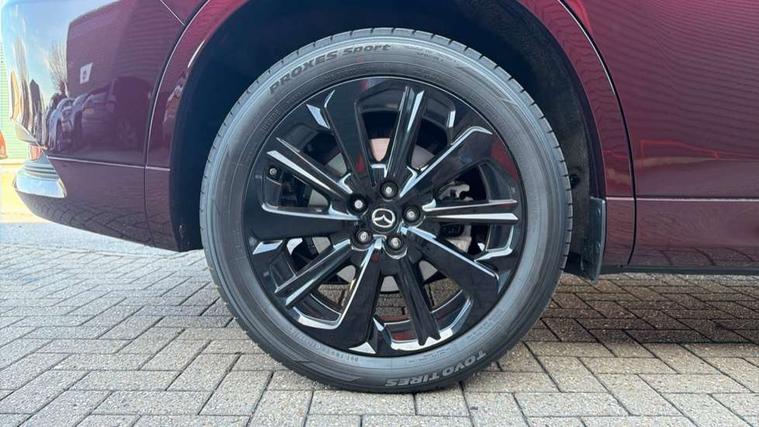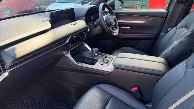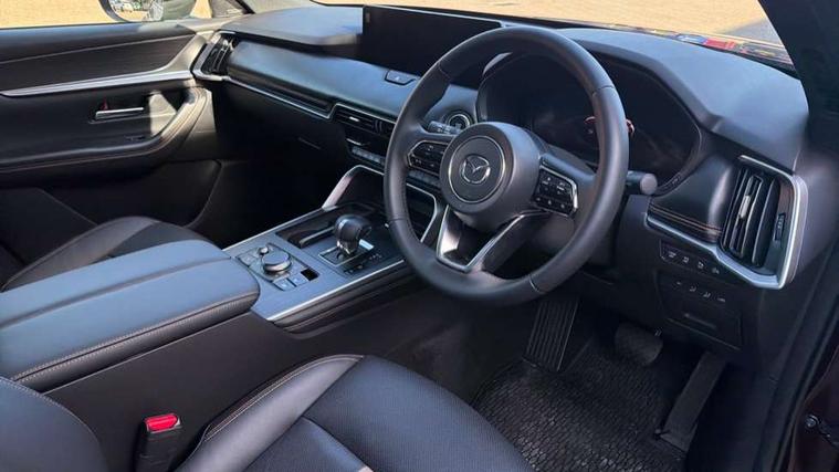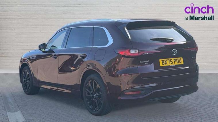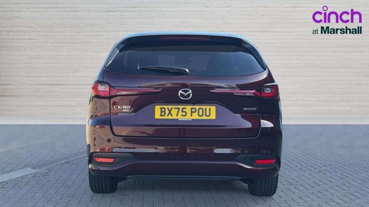 Low washer fluid warning light, 12.3" Colour entertainment centre display with mazda connect infotainment, 12.3" TFT Colour display, Adjustable speed limiter, Blind spot assist, Blind spot monitoring with rear cross traffic alert, Distance alert system, Driver attention alert system, Driver Monitoring with personal identification, E-call with GPS, Emergency lane keeping with blind spot assist, Emergency stop signalling system, Exit warning function, Front and rear parking sensors, Ingress / Egress support and automatic driver position guide, Integrated bluetooth, Intelligent speed assist, Kinematic posture control, Lane keep assist system (LAS) with Lane departure warning system (LDWS), Mazda Driver Personalisation System, Mazda Navigation System with european mapping, Multimedia Commander, PAS, Power lift gate with handsfree function, Power start/stop button, Speed alert, Traffic sign recognition enhanced with mandated excessive speed warning, Trip computer, Windscreen projected colour active driving display, Wireless apple car play/android Auto, Paddle shift, AM/FM and DAB radio, Bose surround sound system with 12 Speaker, Bose center point, Bass match and audio pilot technology, Steering wheel mounted audio/bluetooth controls, USB-C inputs (x2 front and x2 rear), Auto dimming driver's door mirror, Automatic headlight levelling, B-pillar and C-pillar garnishes in piano black finish, Body colour roof spoiler, Body coloured bumpers, Body coloured wheel arch and side mouldings, Coming/leaving home lighting function, Dark plated headlight lense, Dark plating finish signature wing in front grille, Dark plating front side garnish, Differentiated front bumper design to accentuate the intake, Dusk sensing headlights, Electric front/rear windows with one touch auto up/down, Electric panoramic sunroof, Electrically adjustable, heated auto power folding door mirrors with memory, Frameless auto dimming interior rear view mirror, Front kodo turn signal, Front wiper de-icer, Gloss black door mirrors, Headlight washers, High beam control, LED 3rd brake light, LED rear signature combination lamps, Piano black honeycomb style front grille, Rain sensing front wipers with adjustable sensitivity and speed, Rear side wing doors, Rear wiper, Signature LED daytime running lights, Silver decoration panel, 12v power outlet - front, 12V socket in boot, 2 Heated captains chairs in 2nd row, 2 seat bench in 3rd row, 3 height adjustable rear headrests, 3 seat bench featuring folding centre armrest equipped with two cup holders 2nd row, 50/50 split folding 3rd row rear seats, 60/40 split folding 2nd row rear seats, Ambient lighting, Black roof lining, Cargo net, Door panel trim - Cordovan-like Vinyl leather with matt black hairline film inlay, Driver and front passenger two rear grab handles with rear coat hooks, Driver and front passenger visors with covered vanity mirror and driver ticket holder, Driver seat electric tilt, slide, recline, height and lumbar adjustment, Driver, front passenger and two rear door pockets, Driver/passenger front seatback pockets, Electric telescopic and tilt adjustment steering wheel, Front centre storage with illumination and two cupholders, Front down lamp with front and rear foot lamps, Front headrests, Front passengers seat electric slide, recline, height and lumbar adjustment, Front seat ventilation with 3-stage setting, Glovebox illumination, Heated front seats with 3 stage setting, Heated leather wrapped steering wheel, Heated outer rear seats with 3-stage setting, ISOFIX child seat anchorage points attached on outer rear seats, Leather wrapped gear shift knob, LED illumination luggage compartment, Nappa leather upholstery, Practical and spacious front centre armrest storage, Rear seat recline function for rear passenger comfort, Remote fold down rear seats, Roof mounted sunglasses holder, Single front passenger seat, Three zone climate control air conditioning with rear air vents for 2nd and 3rd row, Convenience and Driver Assistance Pack - CX-80, 3 point ELR front seat belts x2 with pretensioners, 3 point ELR rear seat belts, Active bonnet, Anti-lock braking system (ABS), Drivers knee airbag, DSC - Dynamic Stability Control, Electronic parking brake with auto disengage function and auto hold function, Front and rear curtain airbags, Front dual stage driver and single stage front passenger airbags, Front passenger airbag cut-off switch, Front side airbags, Front smart city brake support, Hill decent control, Hill launch assist, Manual rear child locks, Seatbelt reminder for driver/front passenger and rear seats, Traction control, Tyre pressure monitoring system (TPMS), Remote central locking with deadlocking and automatic door lock when driving, Smart keyless entry, Thatcham accredited alarm and immobiliser, Dashboard panel - Cordovan-like vinyl leather, Mesh metal film centre console panel, 20" Black metallic alloy wheels, Emergency tyre repair kit,