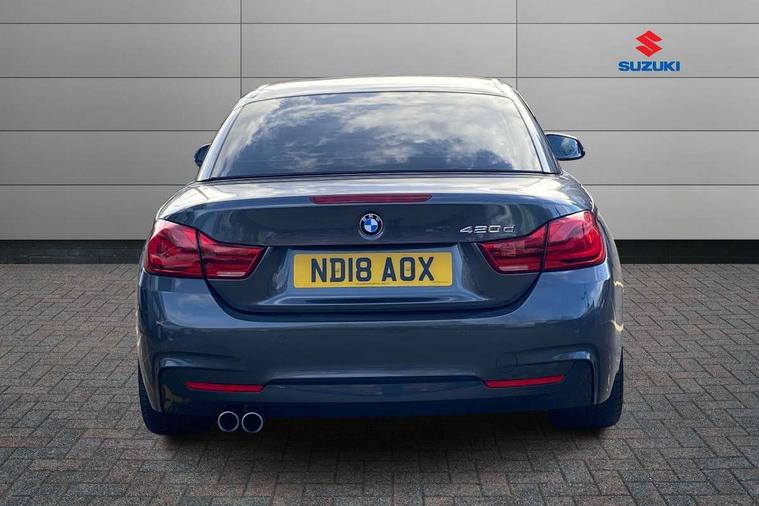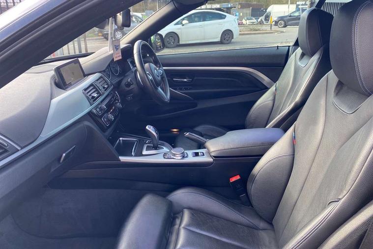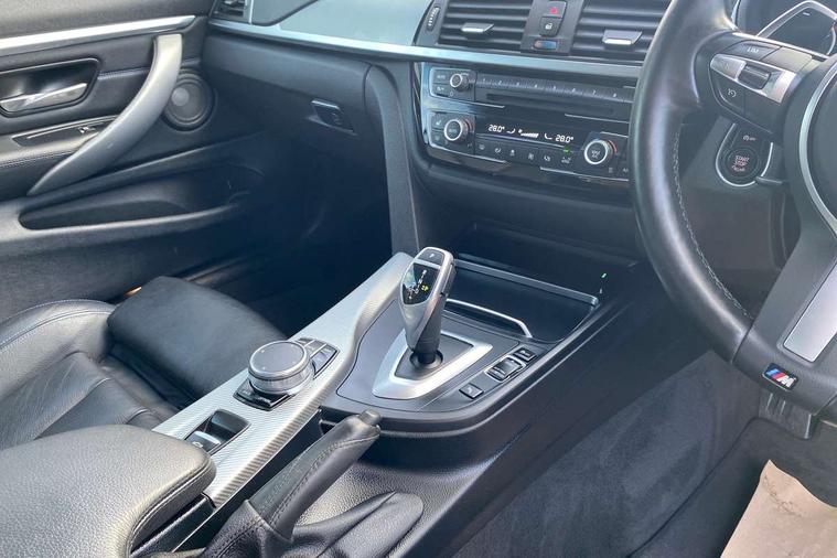 BMW Online services, BMW remote services, BMW Teleservices, Brake pad wear indicator warning light, Check control system, Door/boot open warning, Front/rear Parking distance control, iDrive controller and display with 6.5" monitor, Lights on warning, Oil temperature gauge, On board computer, Outside temperature display, Real time traffic information, Run flat indicator, Service interval indicator, Stop/start button, Diesel particulate filter, Drive Performance Control, Electronic differential lock, Sports function on gearbox with steering wheel mounted gearshift paddles, Bluetooth audio streaming, BMW professional radio/CD/MP3, DAB Digital radio, 2 speed adjustable intermittent wipers with wash/wipe function, Auto dimming rear view mirror, Body colour bumpers, Body colour door handles, Body colour door mirrors, Body colour roof mouldings, Chrome kidney grille with black vertical slats, Door sill finishers, Dual chrome exhaust, Electric adjustable heated door mirrors, Electric front windows/one touch facility, Follow me home headlights, Heat insulating tinted glass, Heated windscreen washer jets, High gloss shadow line, LED daytime running lights, LED front fog lights, M aerodynamic bodystyling, Rain sensor including auto headlights activation, Welcome lighting, Windscreen with grey shadeband, 12V sockets in front centre console and passenger footwell, 3 spoke leather M sport multifunction sports steering wheel, Anthracite Velour floor mats, Dual zone climate control, Folding front centre armrest with storage compartment, Folding storage compartment with glasses holder + coin tray, Front cupholders x 2, Front door storage with bottle holder, Front head restraints, Front sports seats with electric side bolster adjustment, Front/rear armrests within door panels, Glovebox with lid, Heated front seats, Integrated rear head restraints, ISOFIX child seat preparation+airbag deactivation, Lashing eyelets in boot, Leather handbrake grip, Reach + rake adjustable steering column, Rear centre armrest, Storage compartment behind rear seat, Storage compartment in centre rear seat base, Storage compartment in rear centre console, Toolkit located in luggage compartment, Extended lights package - 4 Series, 3 point seatbelts on all seats, ABS/EBD, Automatic Stability Control (ASC), BMW emergency call, Brake energy regeneration, Cornering brake control (CBC), Crash Sensor - activates hazard/interior lighting + unlocks doors, Driver seatbelt warning indicator, Driver/Front Passenger airbags, DSC+, Dynamic brake control, Dynamic Traction Control - DTC, Front passenger airbag deactivation, Front seatbelt force limiters, Front seatbelt pretensioner, Front side airbags, Hill start assist, Roll over protection, Side impact protection, Tyre pressure monitor, Warning triangle and first aid kit, Central locking including fuel filler and boot, Drive away door locking, Electronic immobiliser, Remote control Thatcham category 1 alarm,